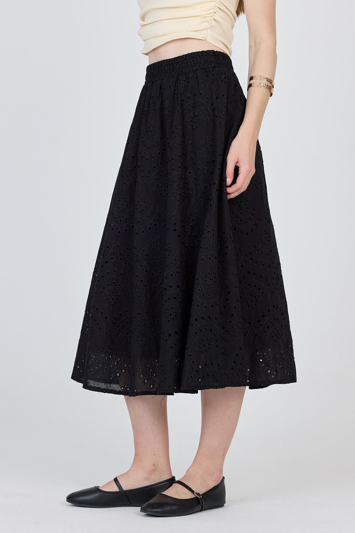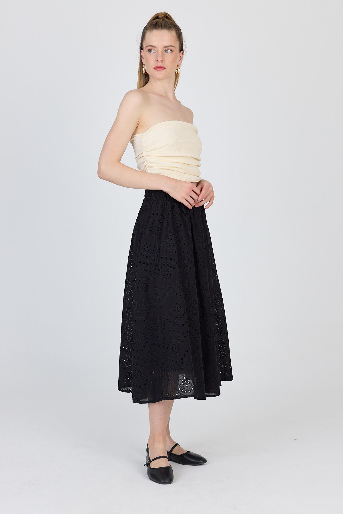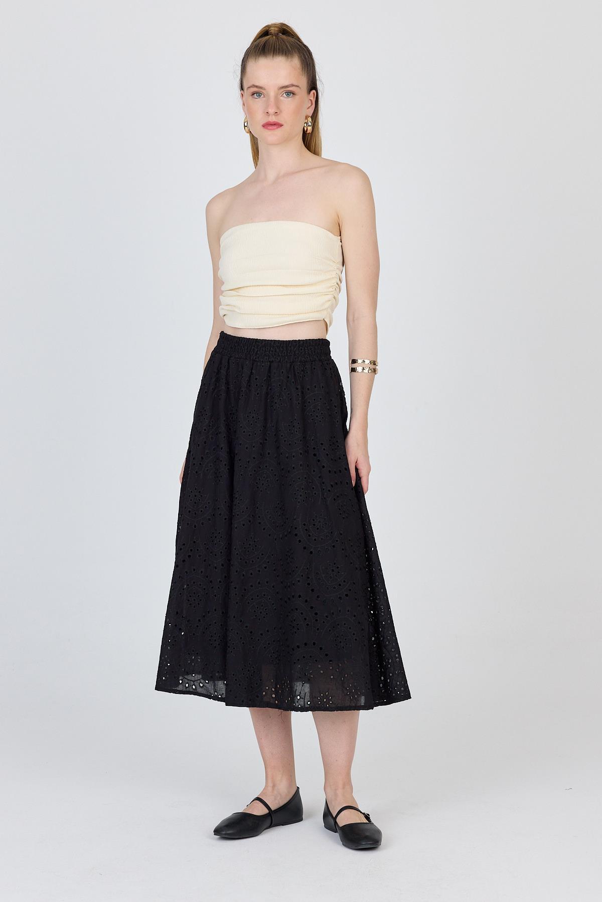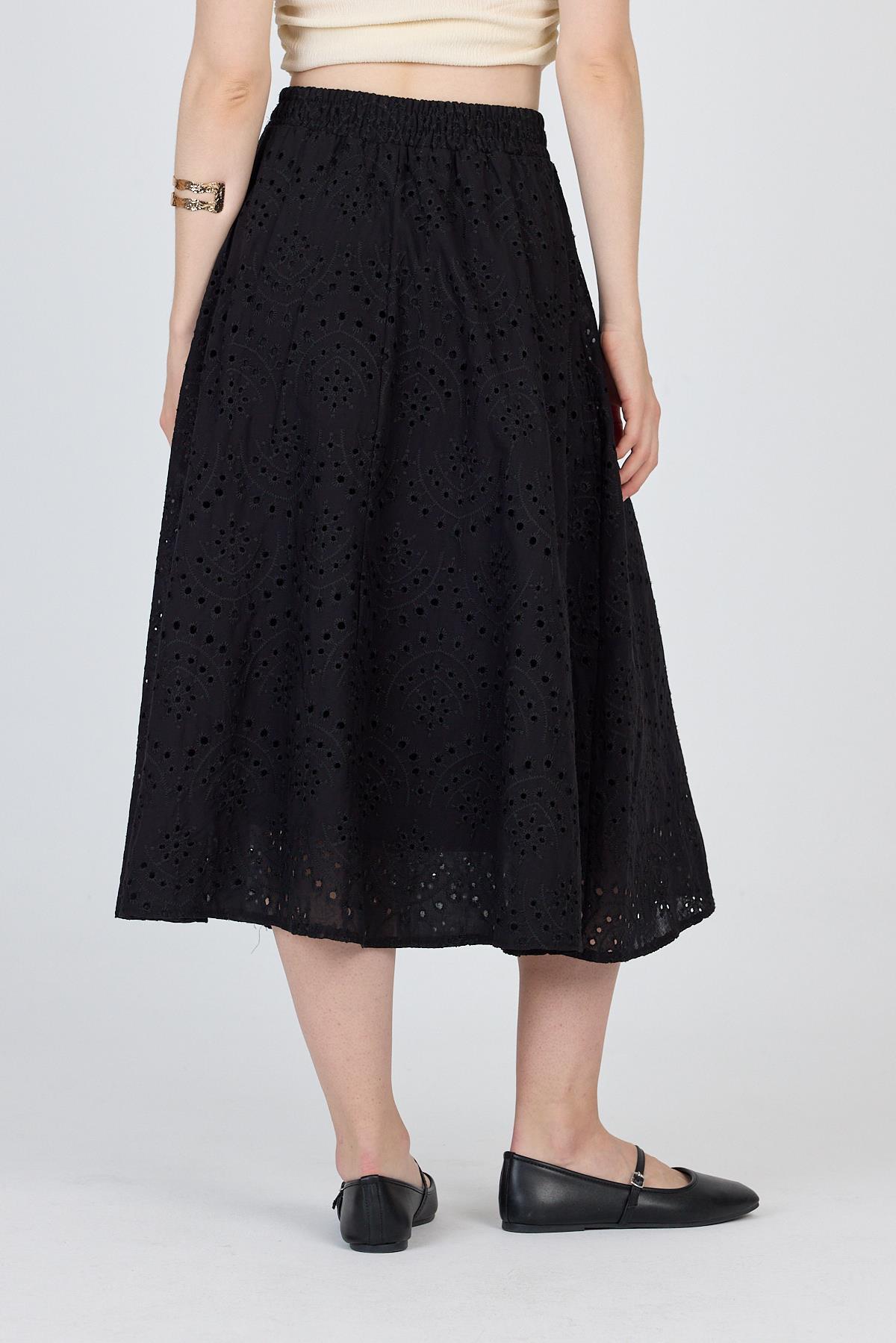 Siyah Fisto Detaylı Midi Etek 4762A