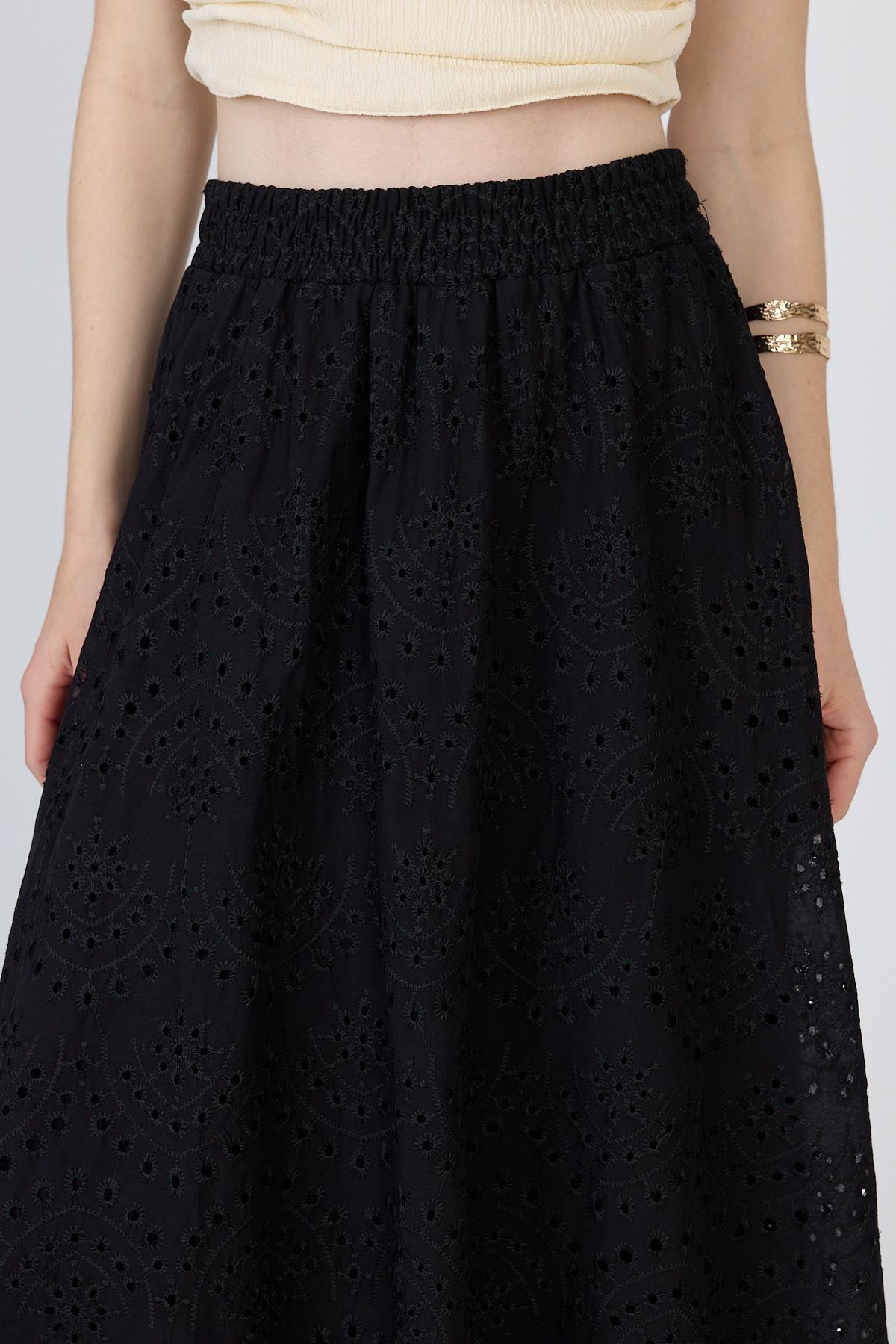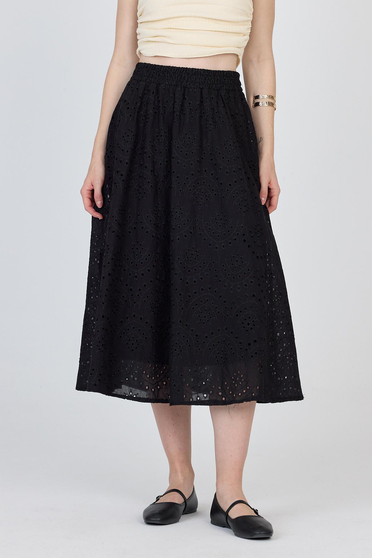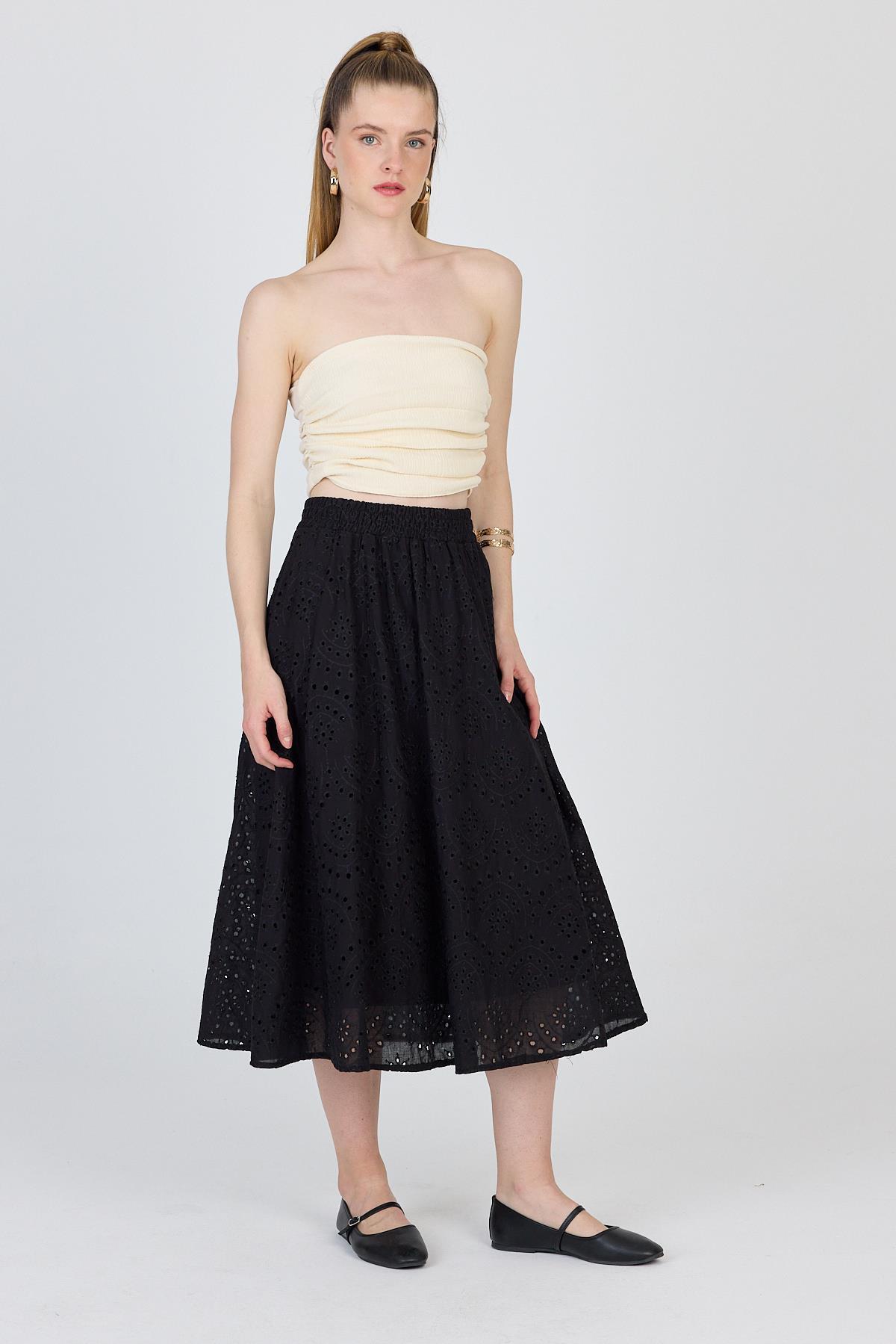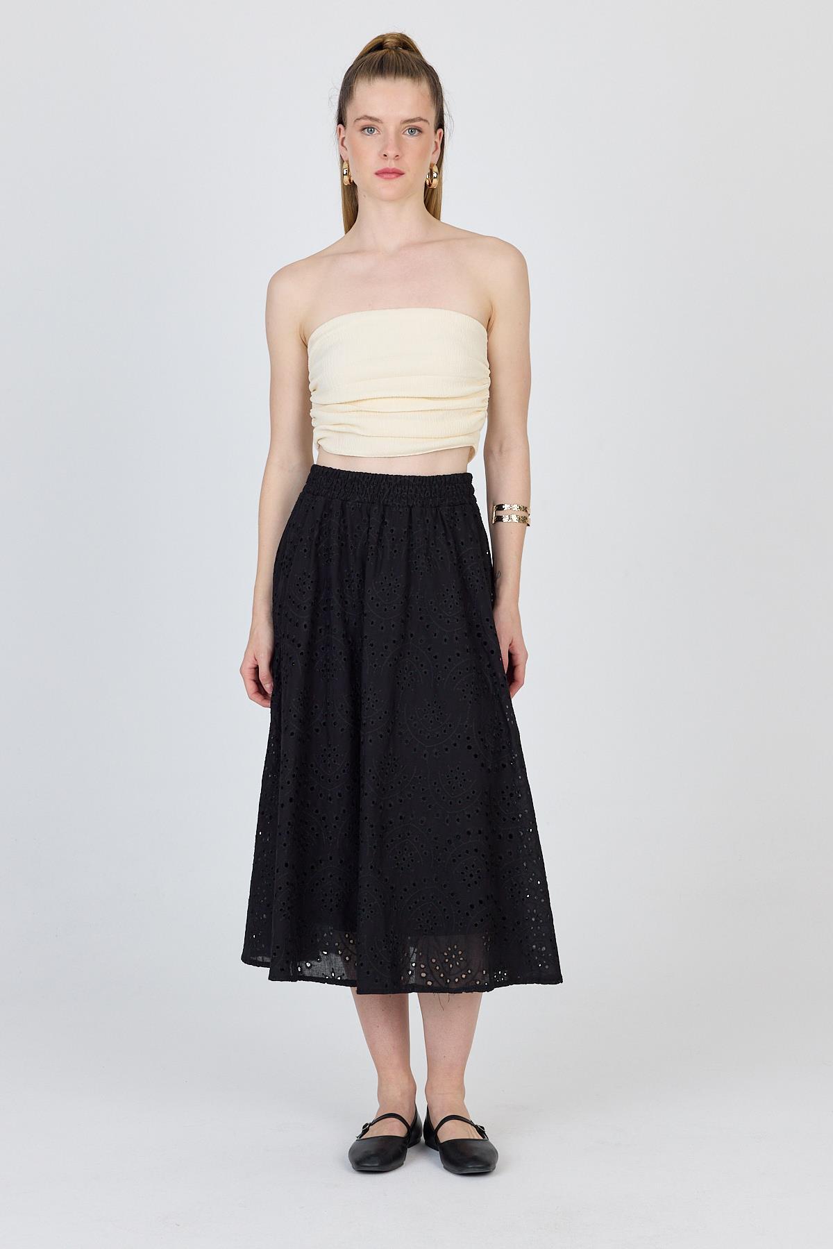 Siyah Fisto Detaylı Midi Etek 4762A