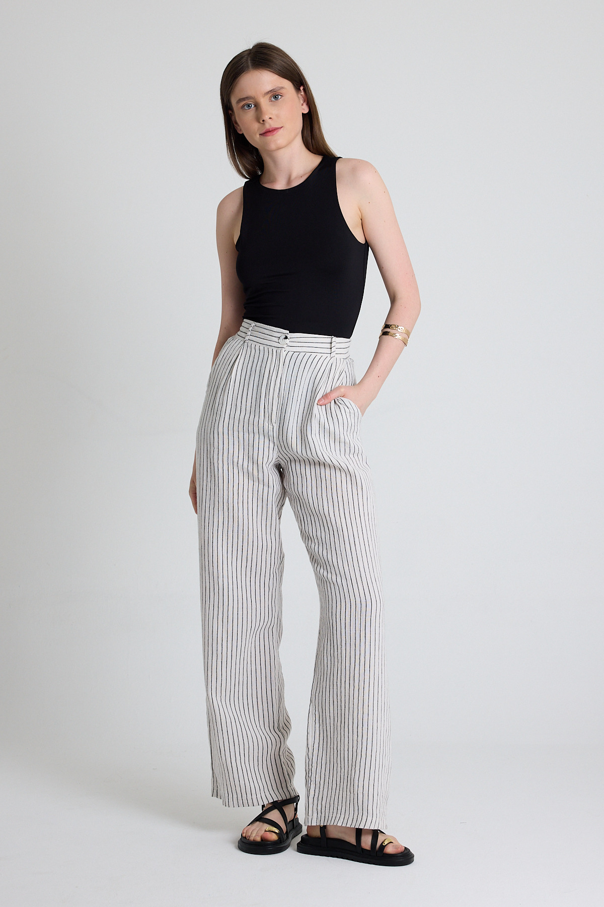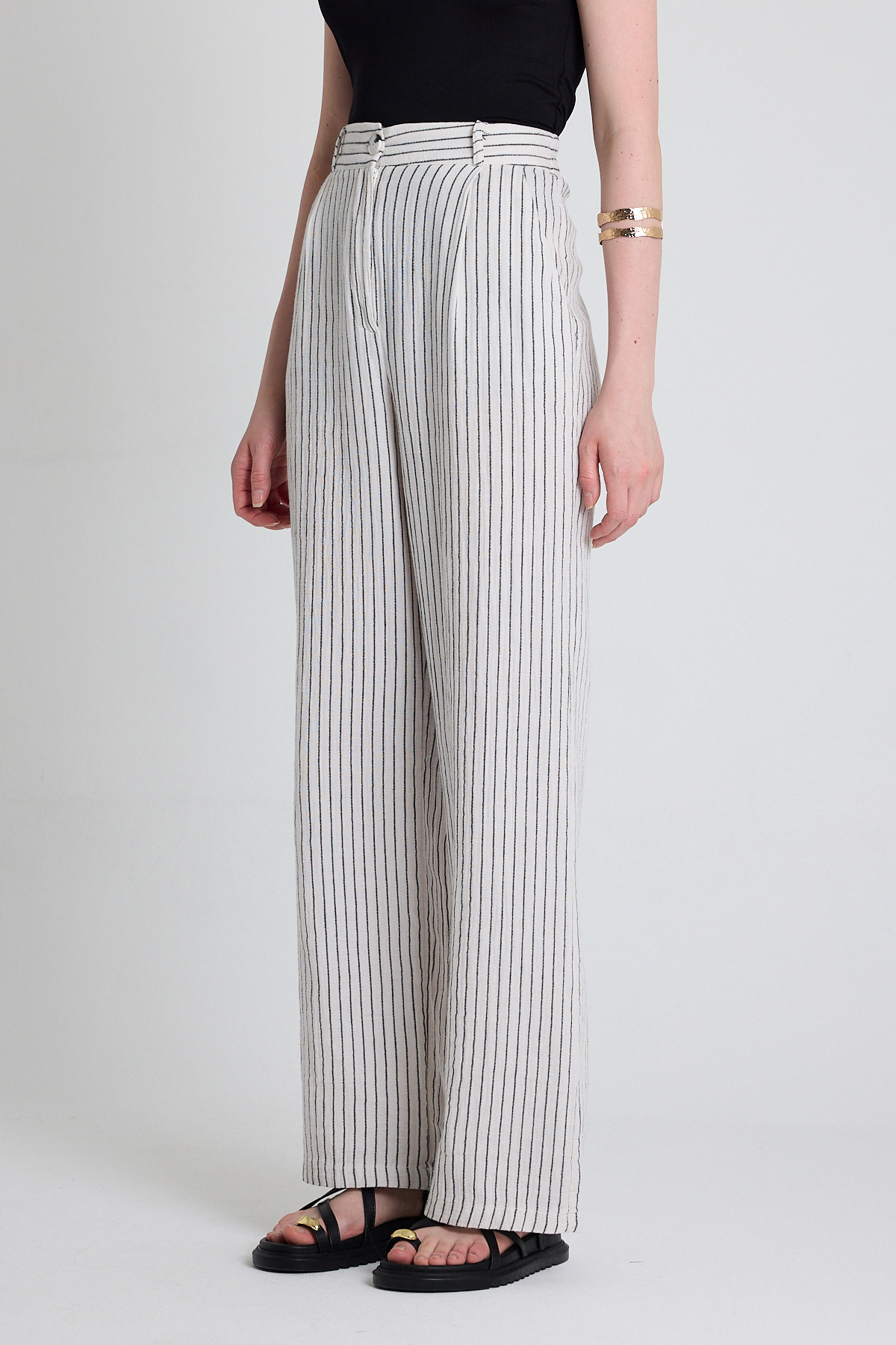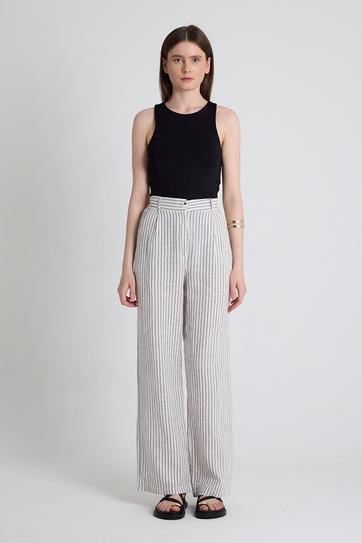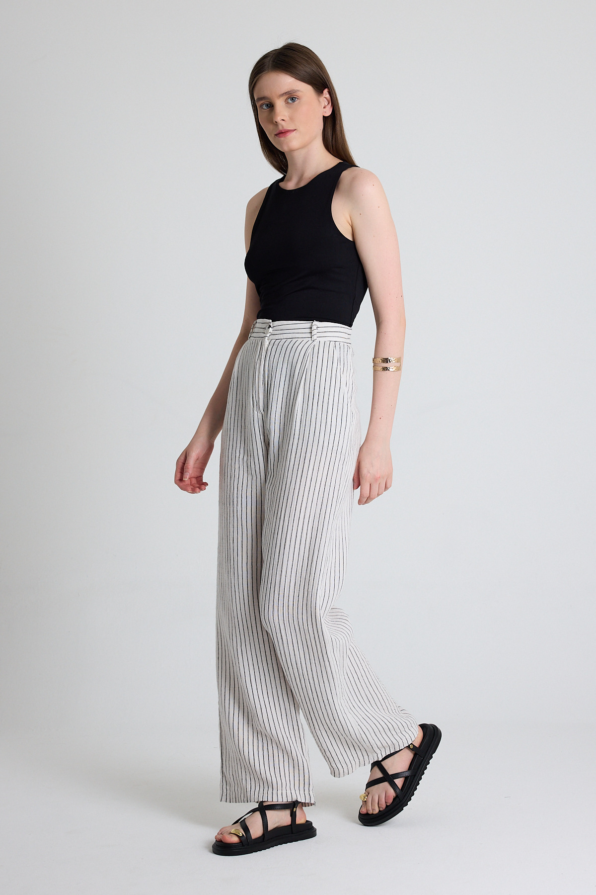 Siyah Geniş Paça Çizgili Pantolon 2334