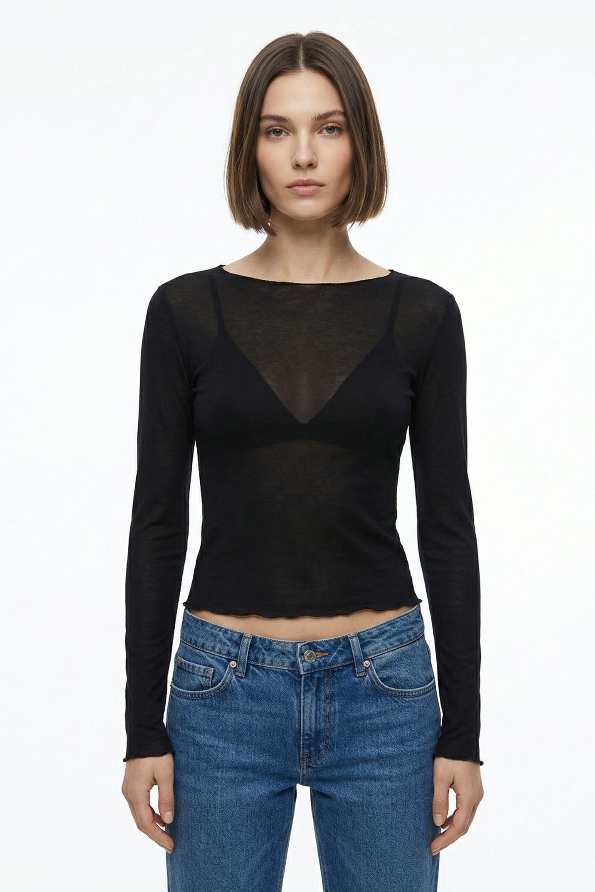 0416 Geniş Yaka Transparan Bluz