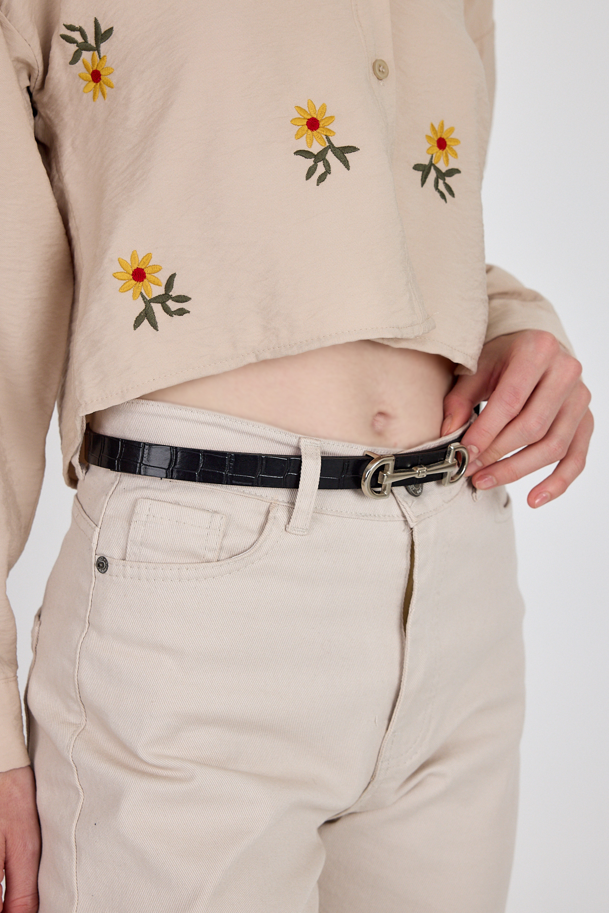 Siyah Gümüş Tokalı İnce Kemer 423