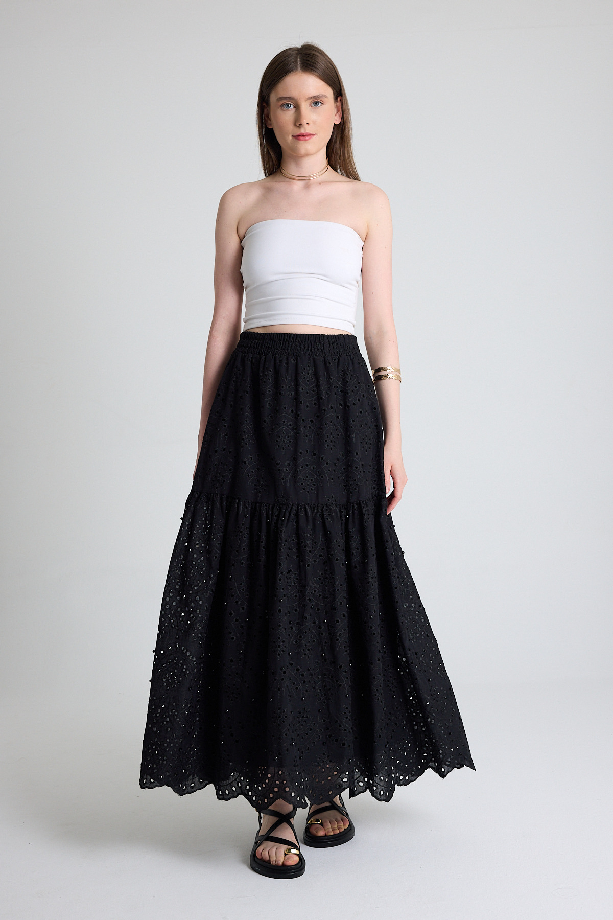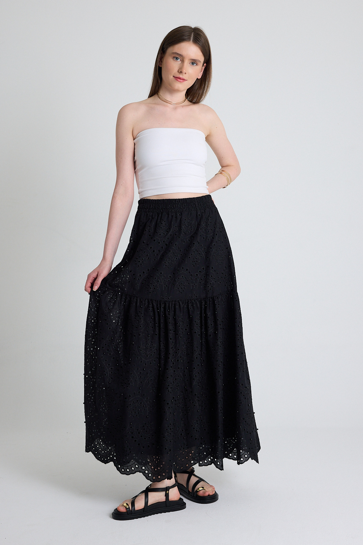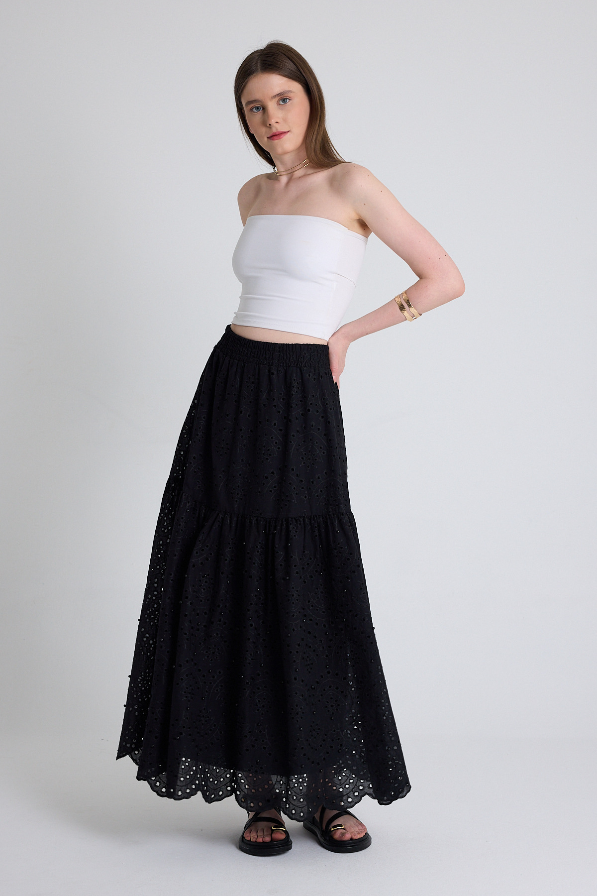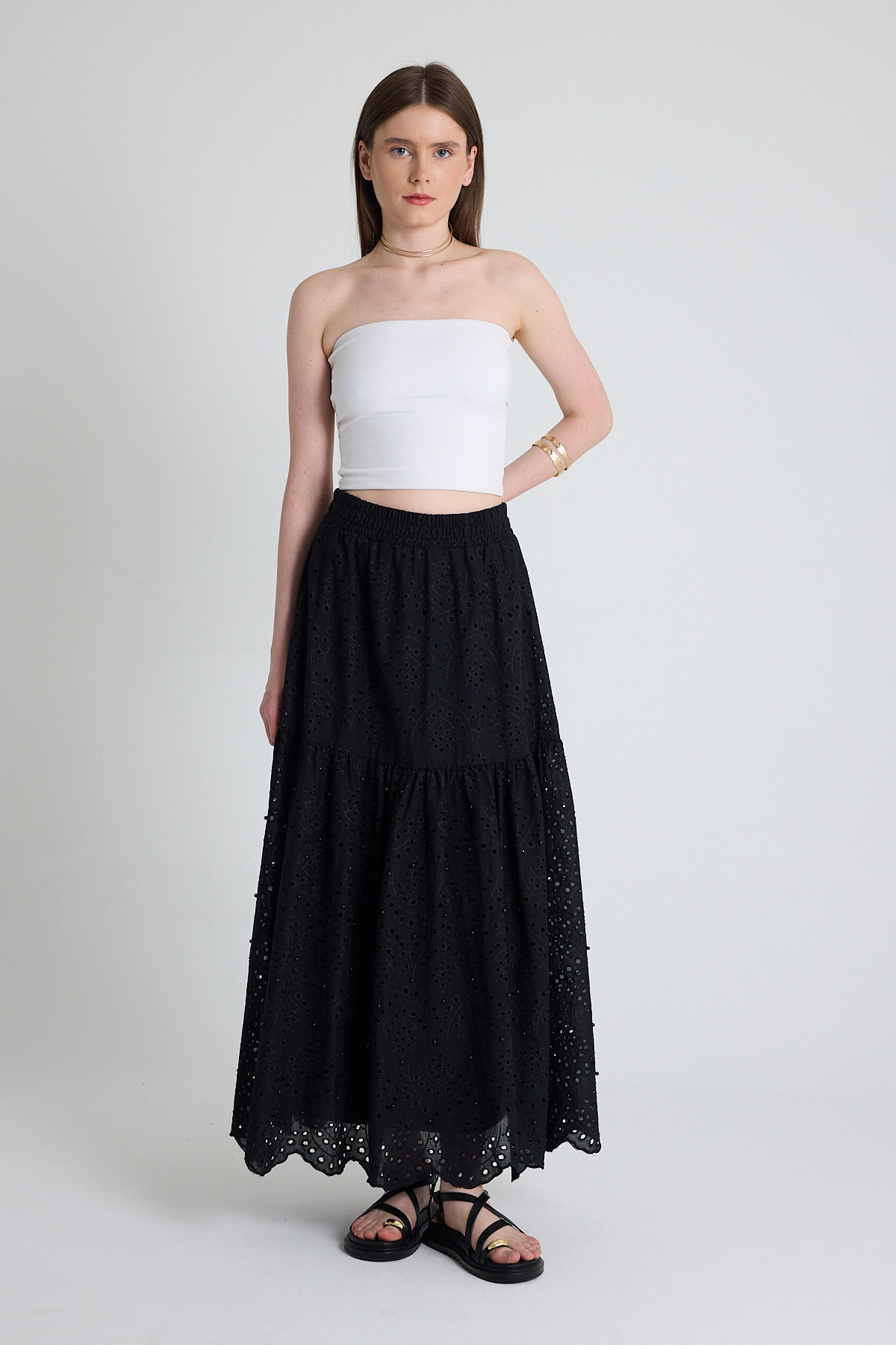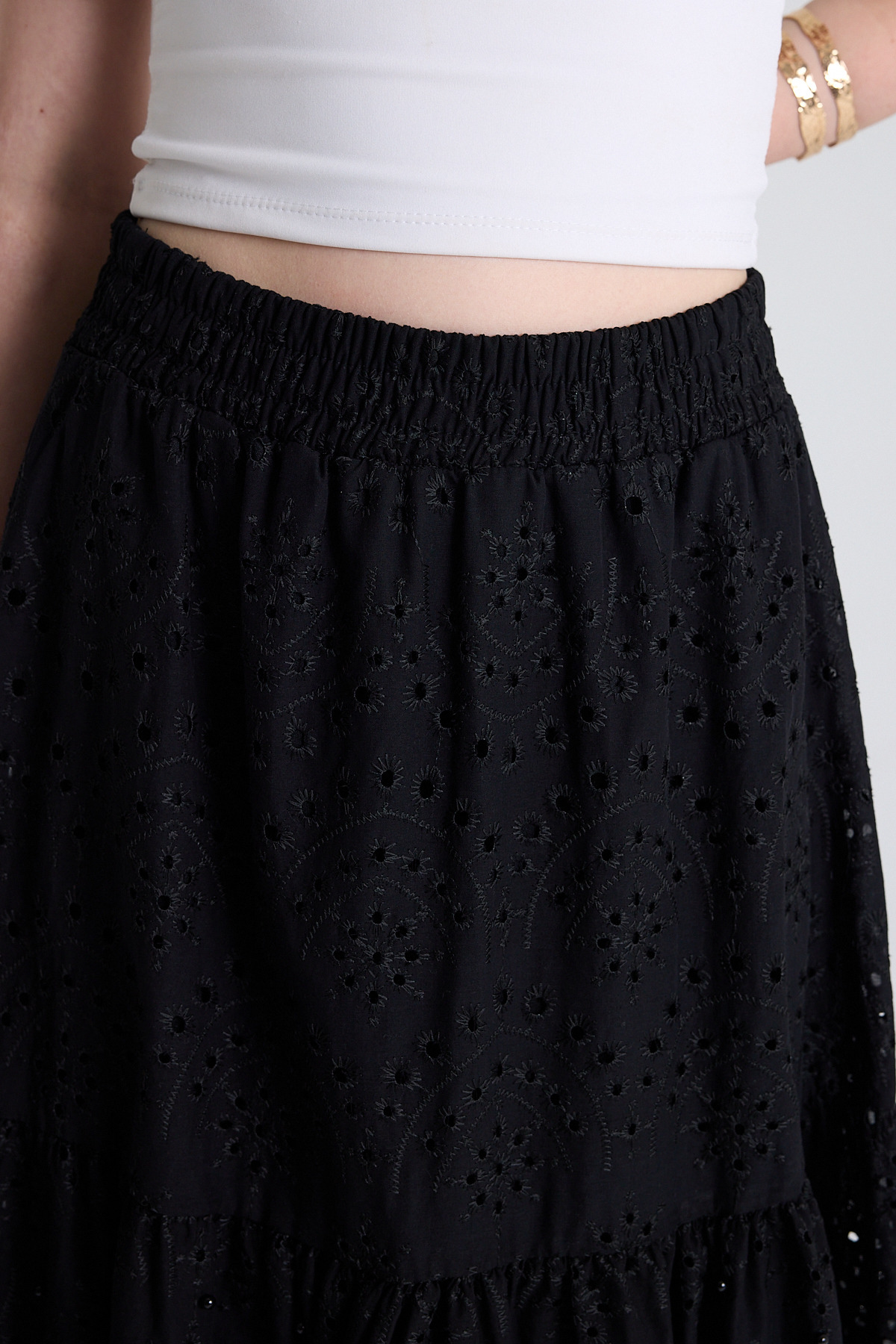 Siyah İnci Detaylı Bel Lastikli Etek 4422A