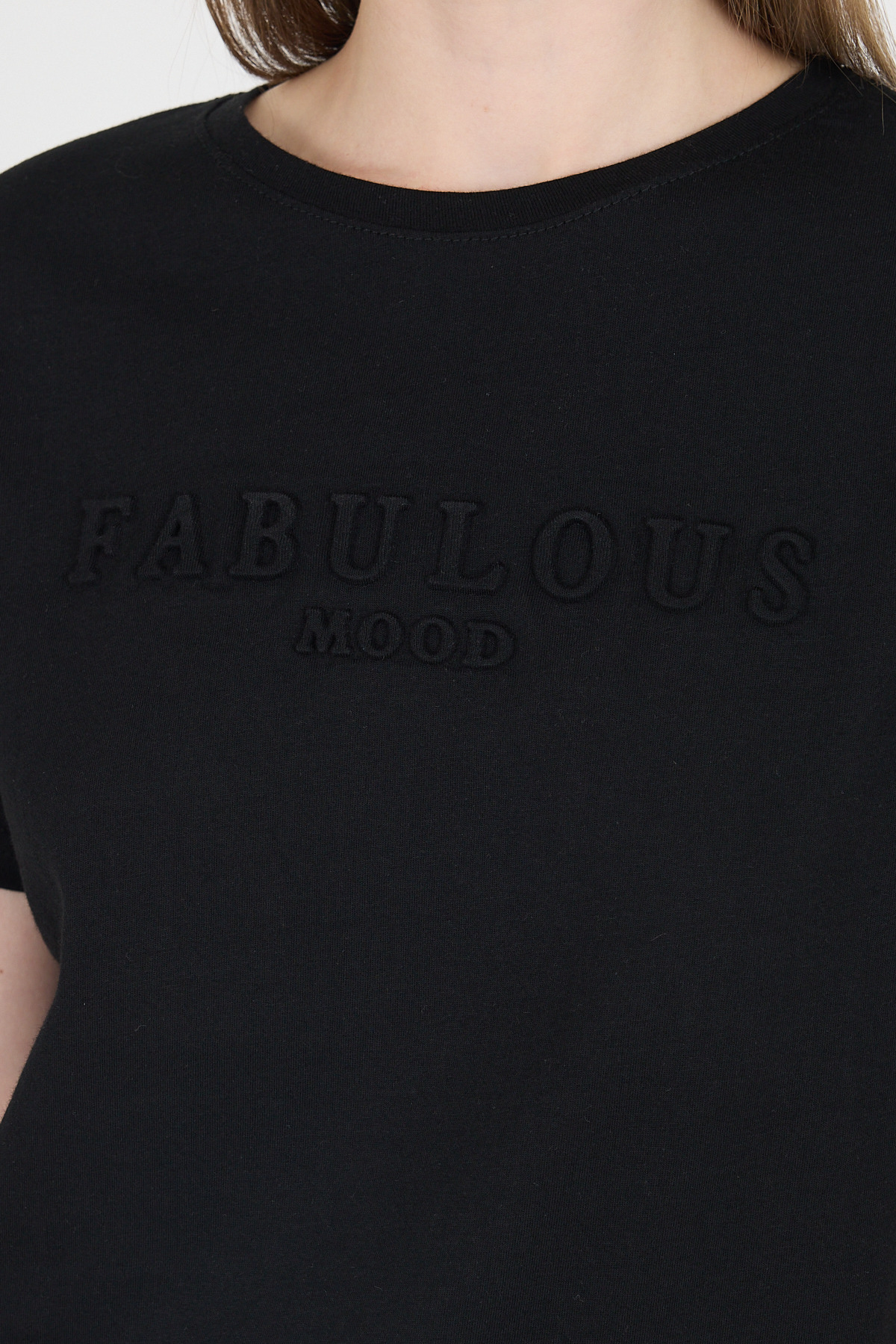 Siyah Kabartma Yazılı Relaxed Fit Tişört 25209