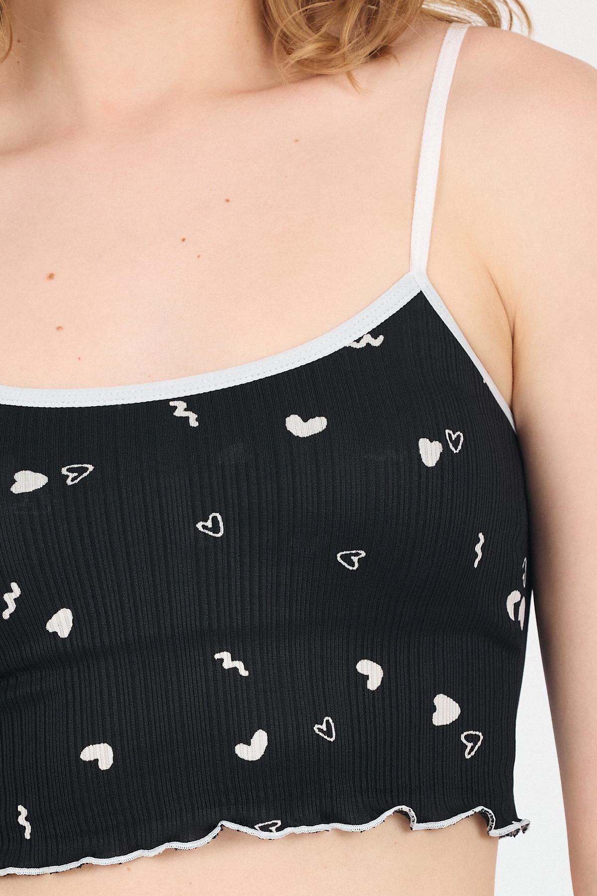 Beyaz Kalp Desenli Atlet Şort Takım 3406