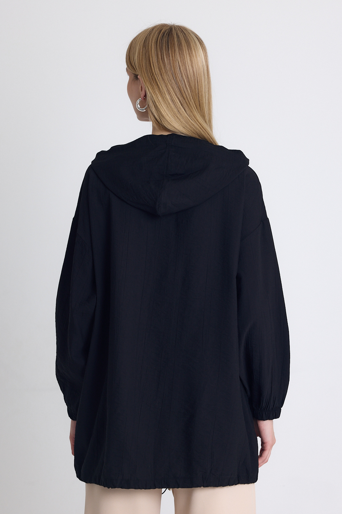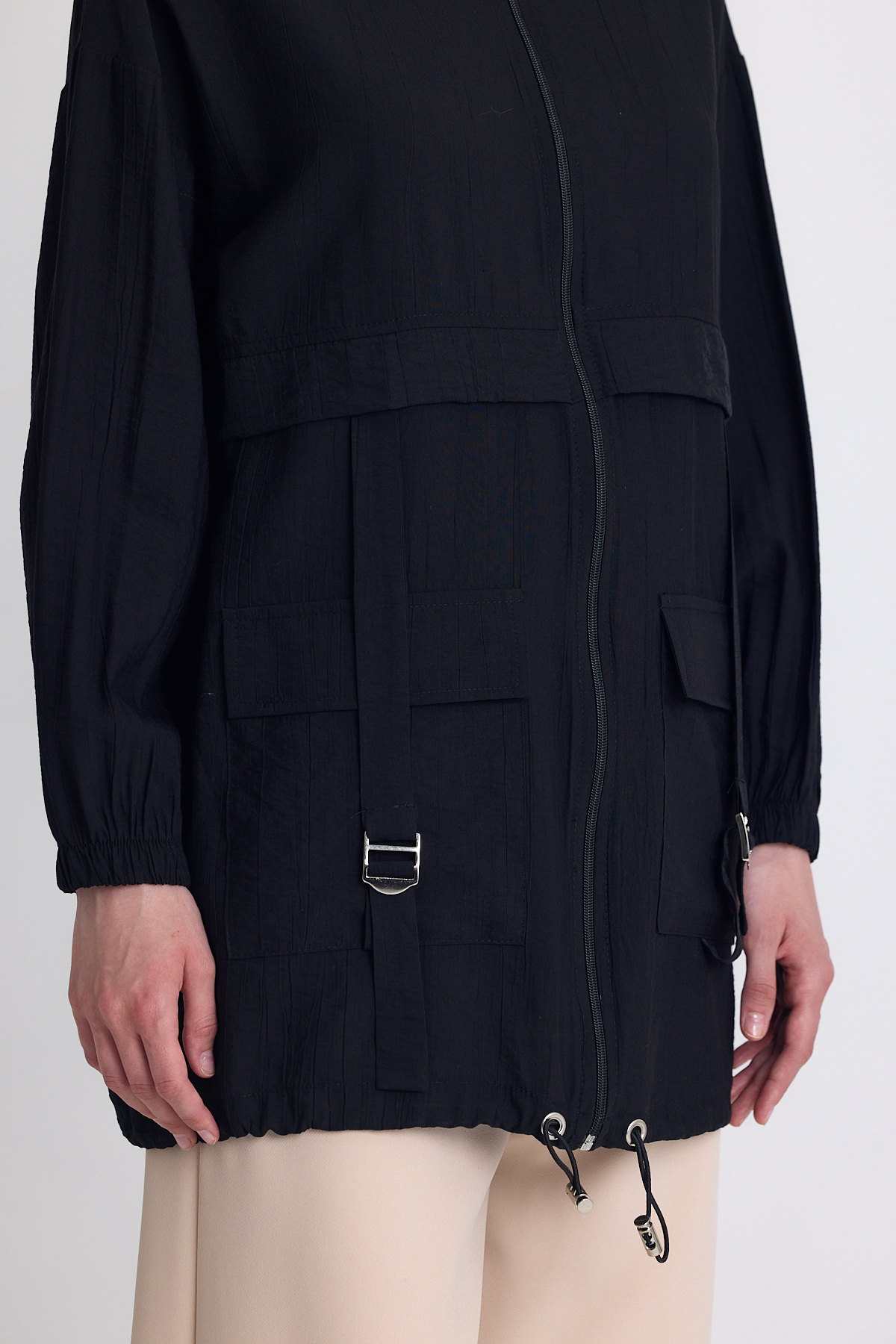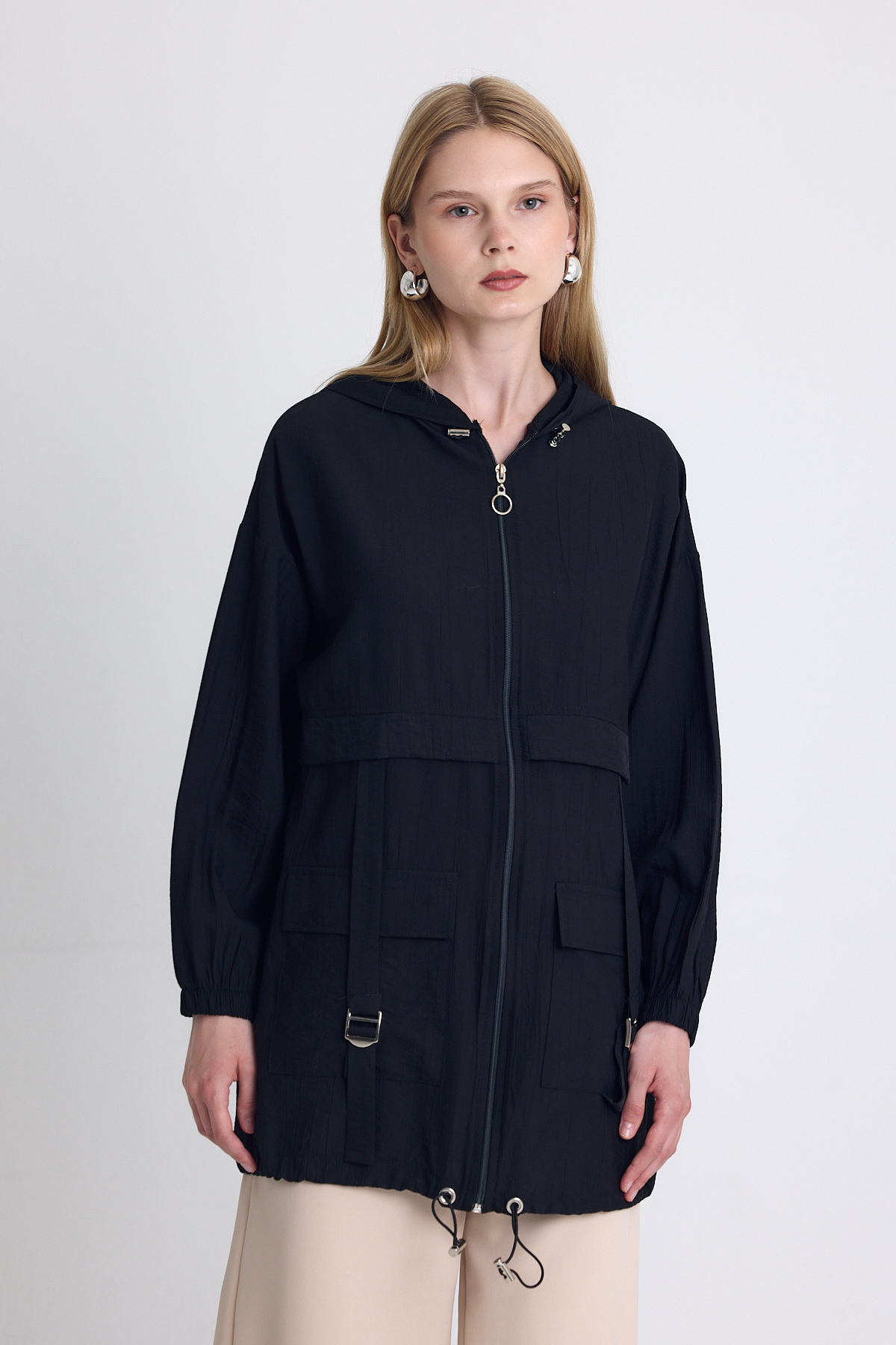Siyah Kapüşonlu Cepli Fermuarlı Kap 4572A