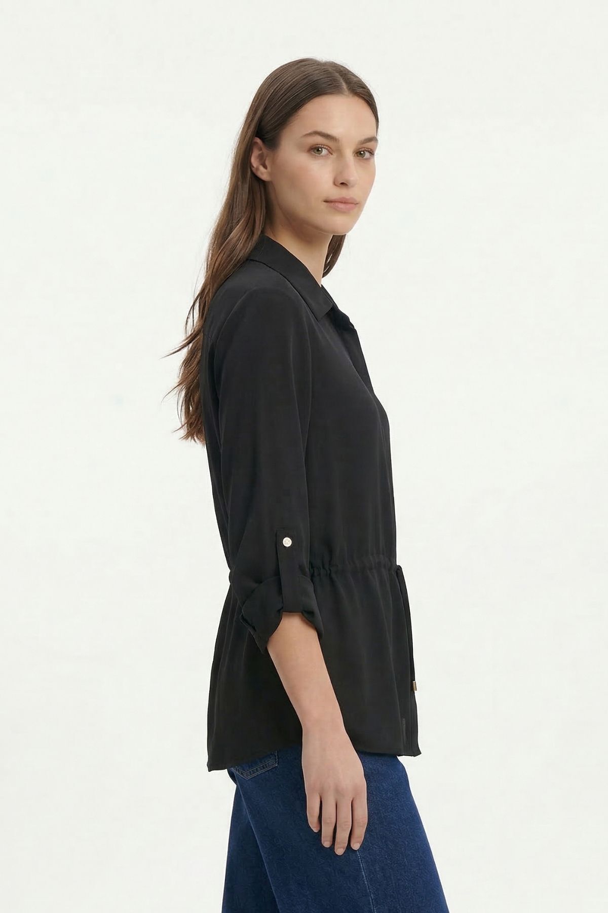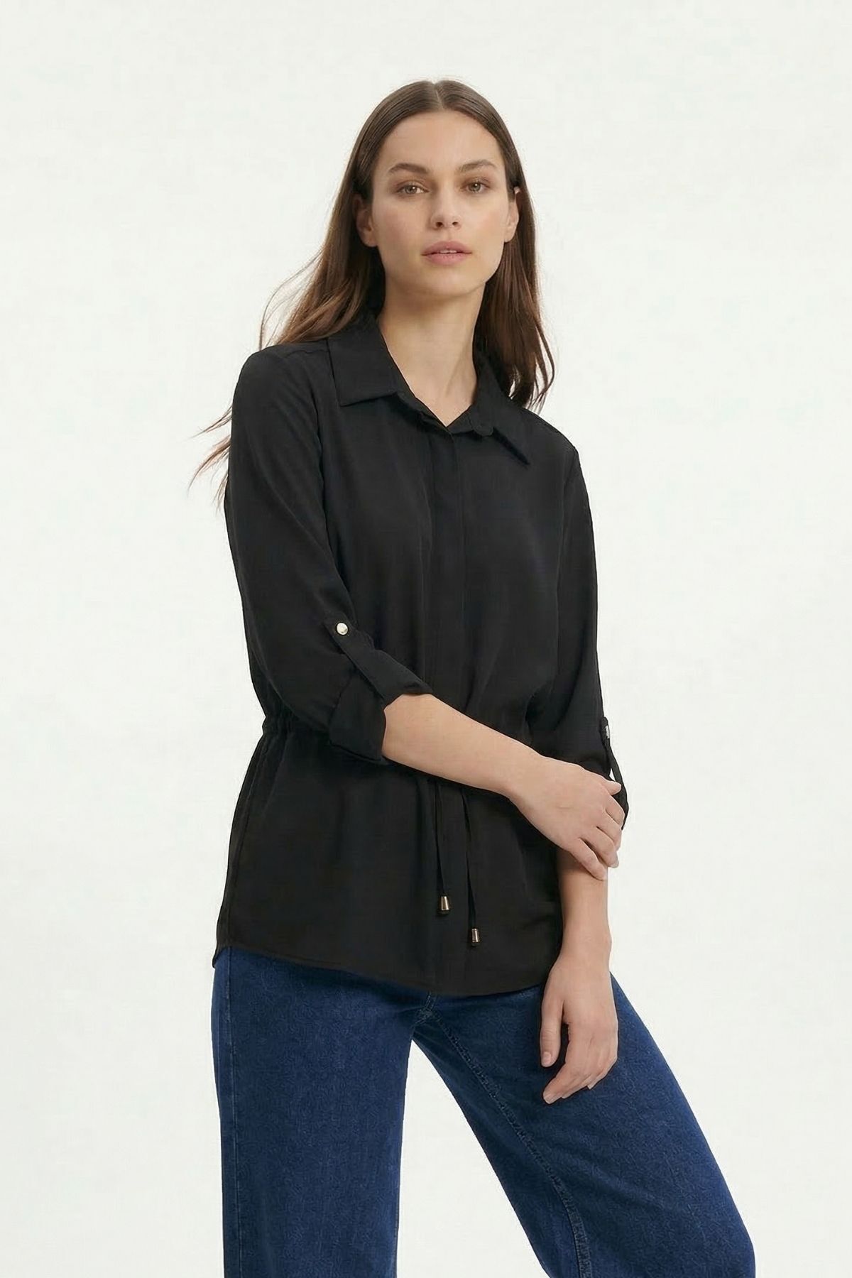 Siyah Katlamalı Kol Bel Büzgülü Ceket 261134