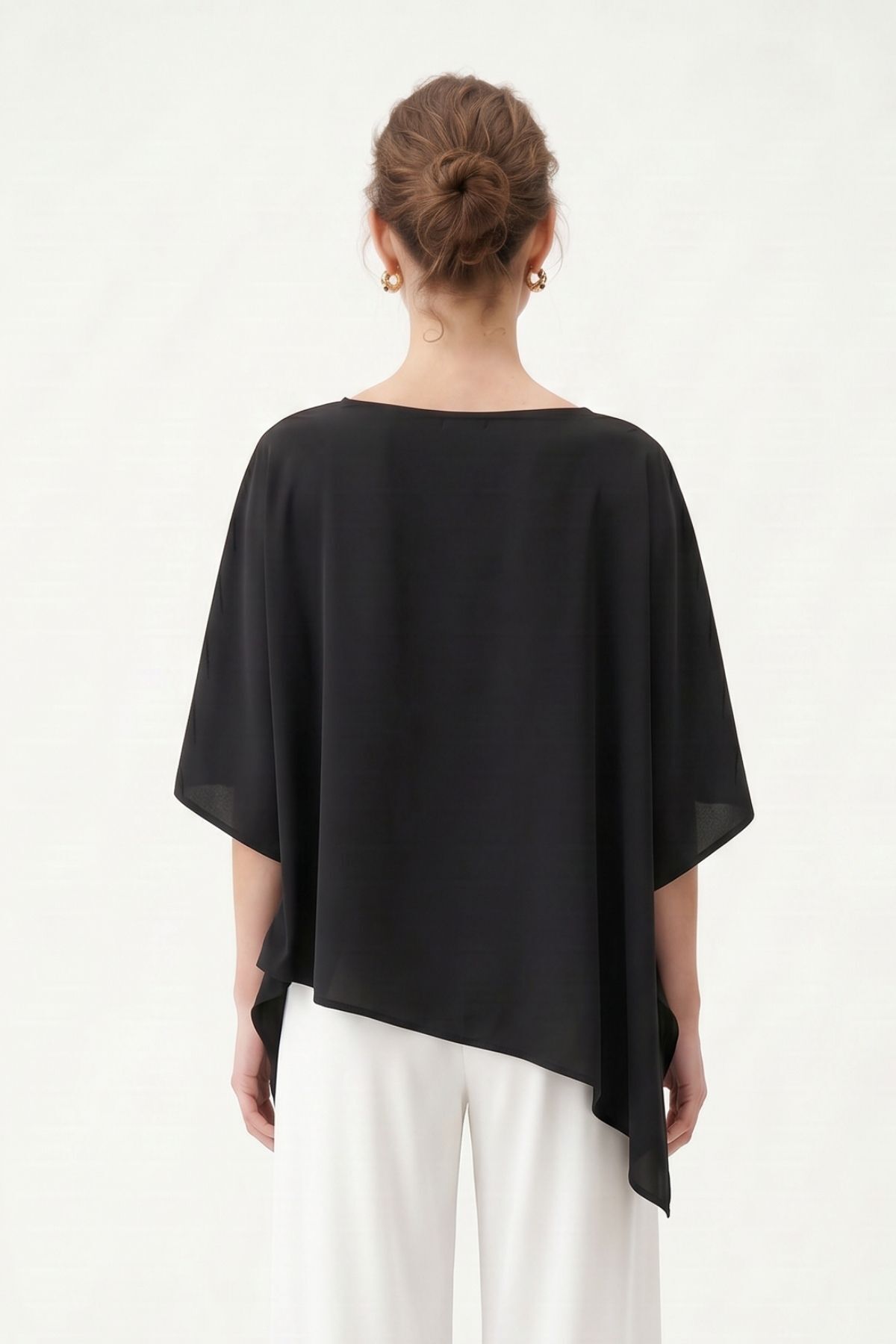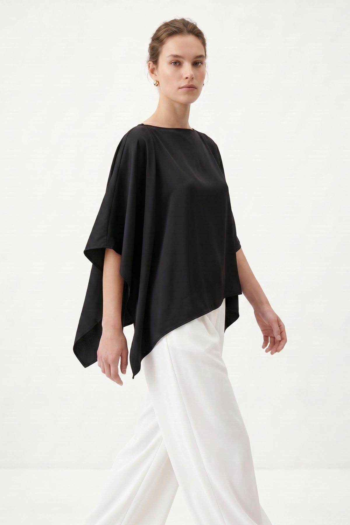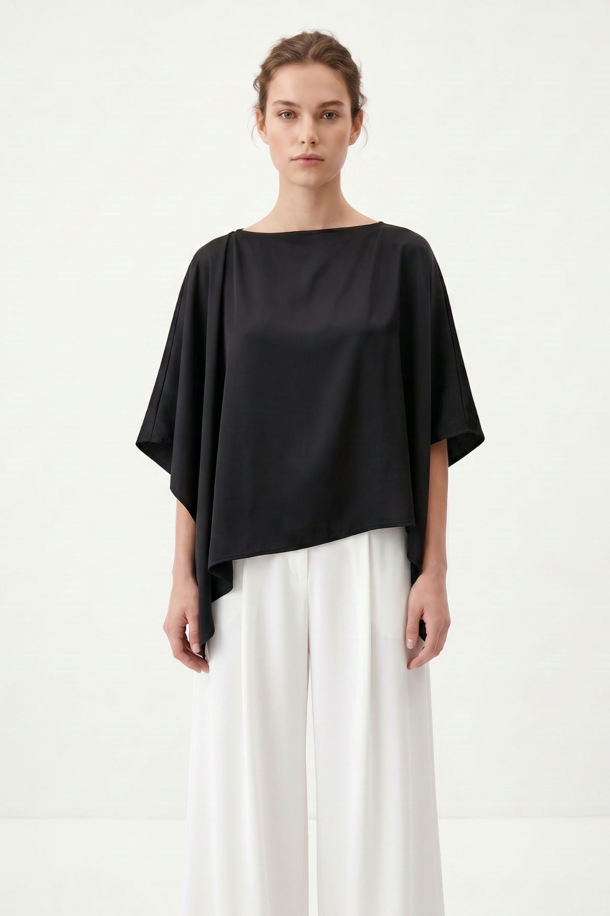 Siyah Kayık Yaka Asimetrik Bluz 261103