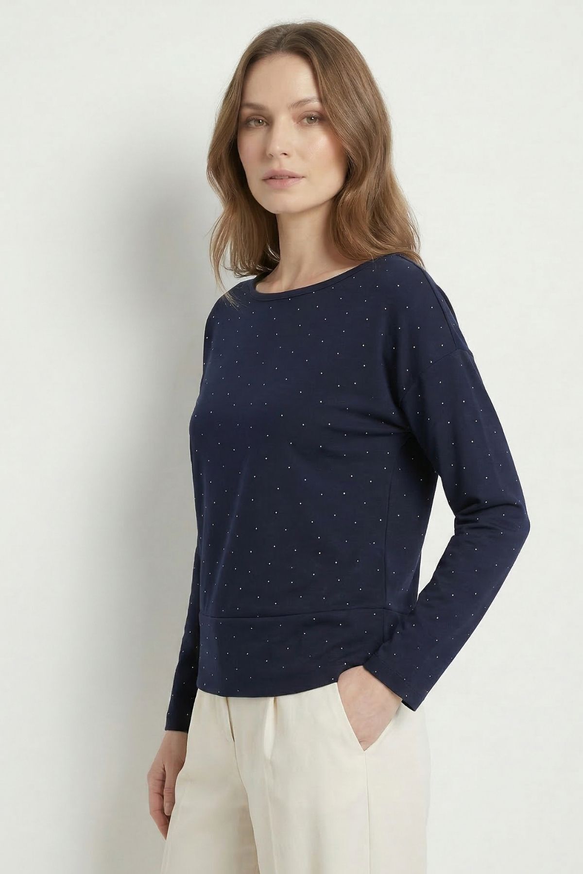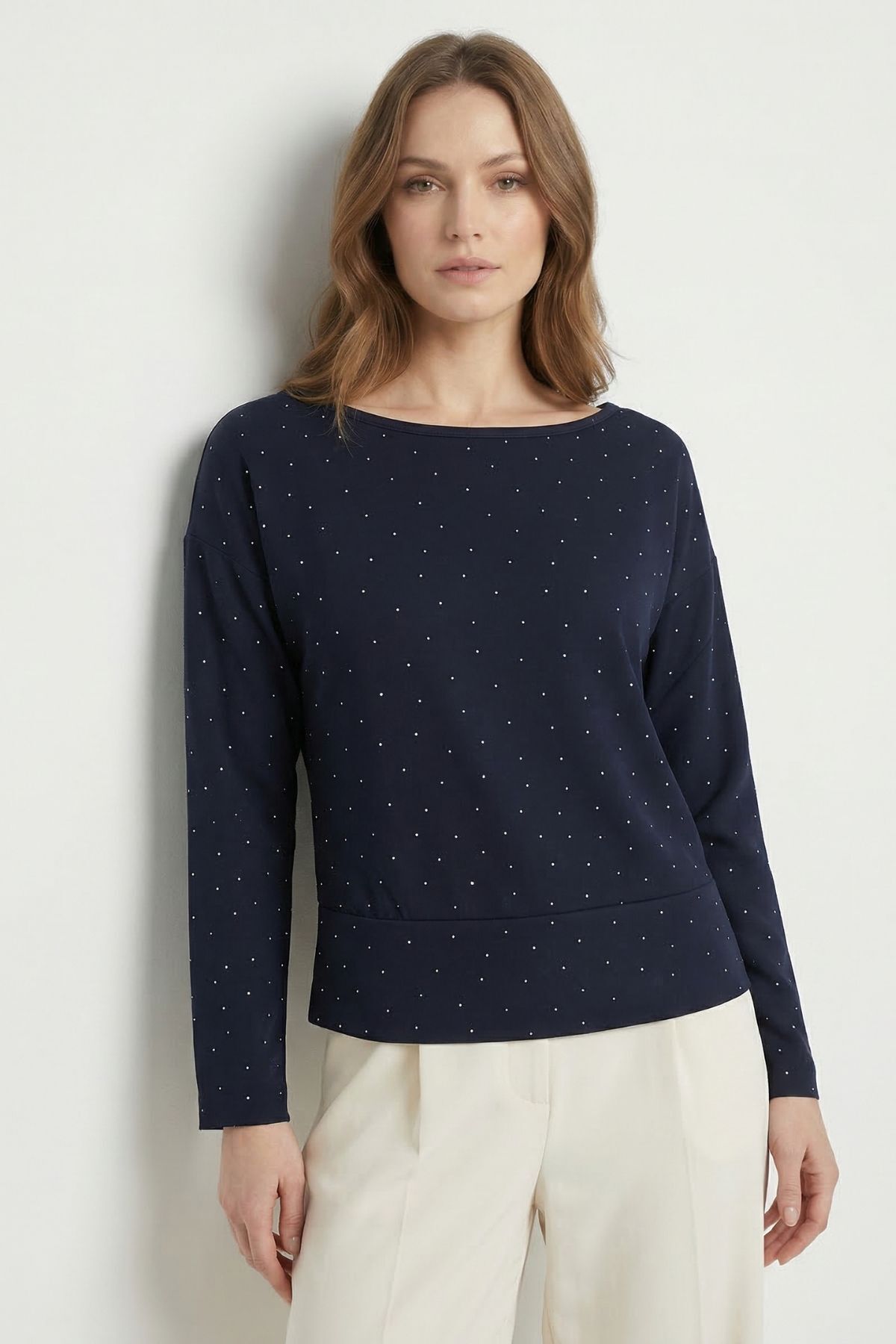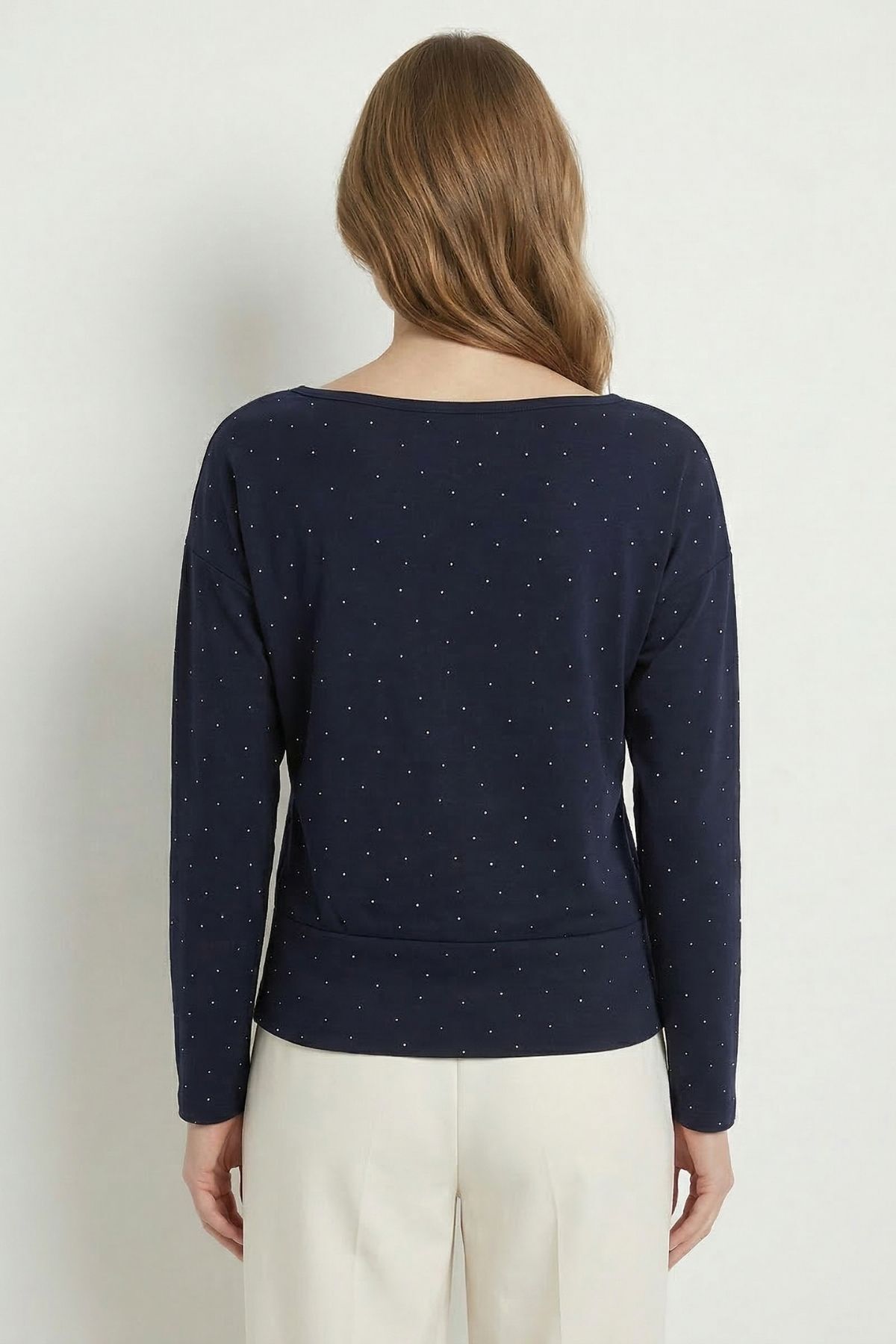 Siyah Kayık Yaka Taş Detaylı Bluz 8364