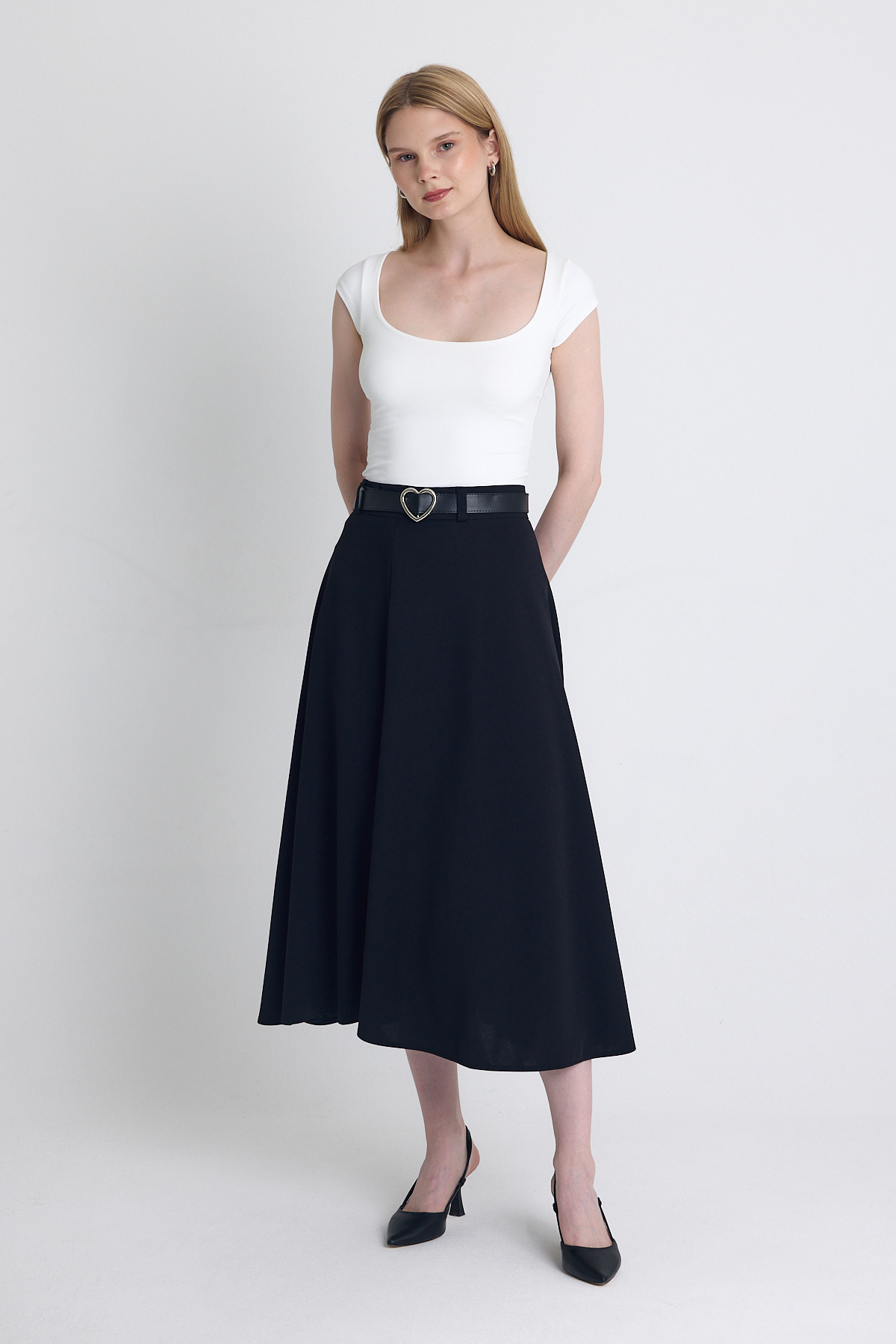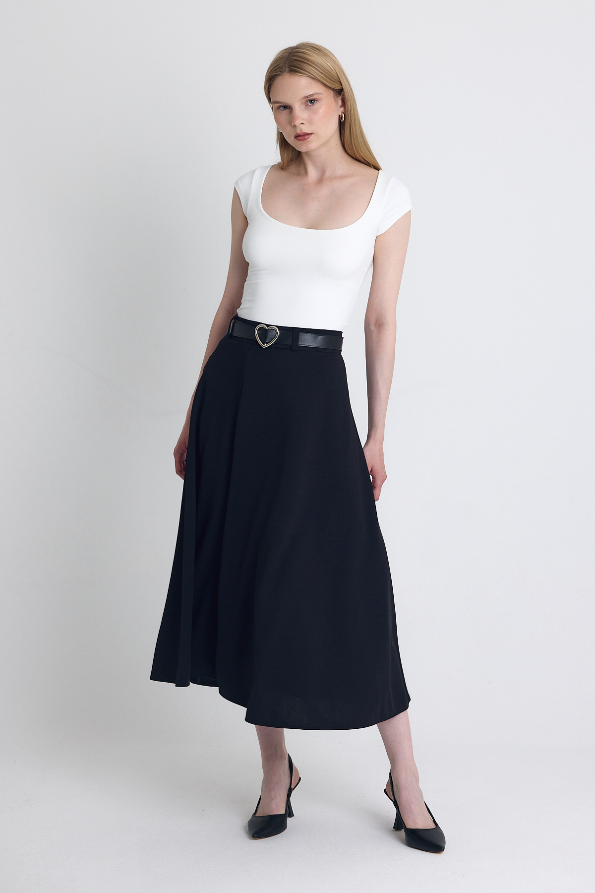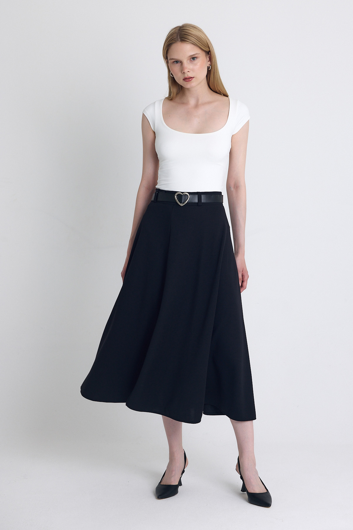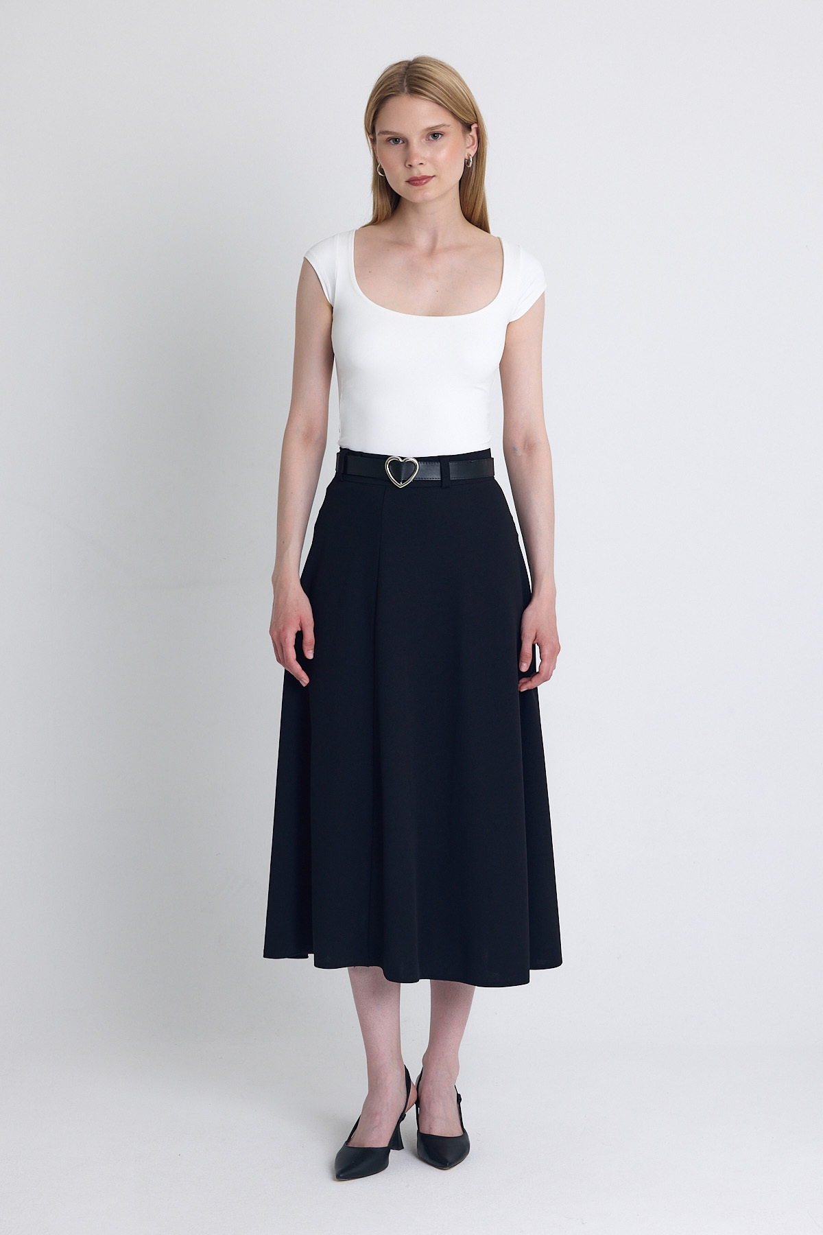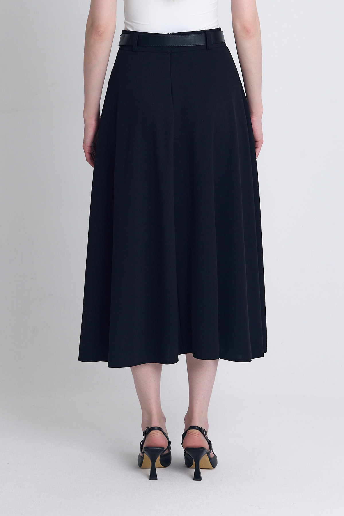 Siyah Kemerli A Kesim Midi Etek 4806A