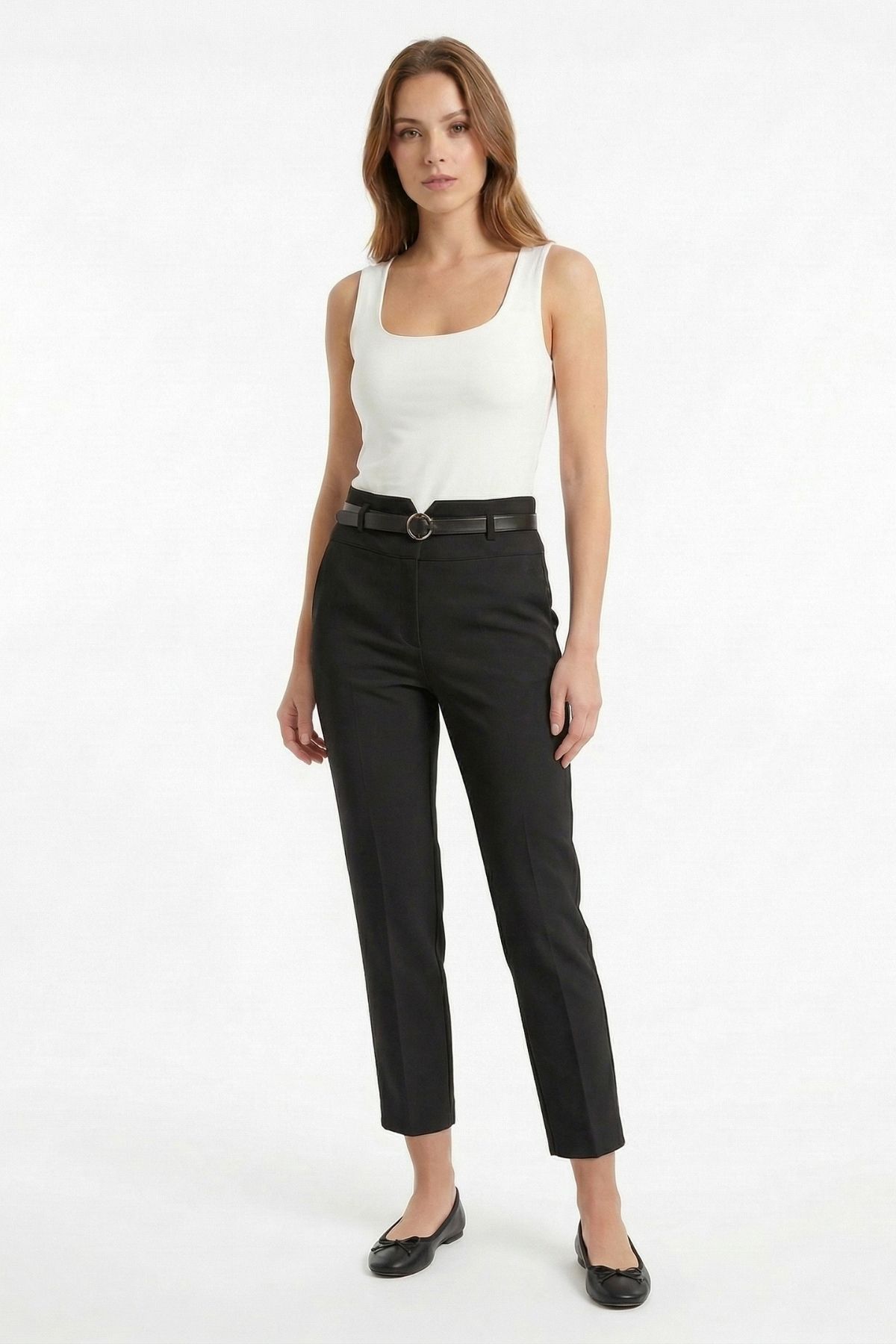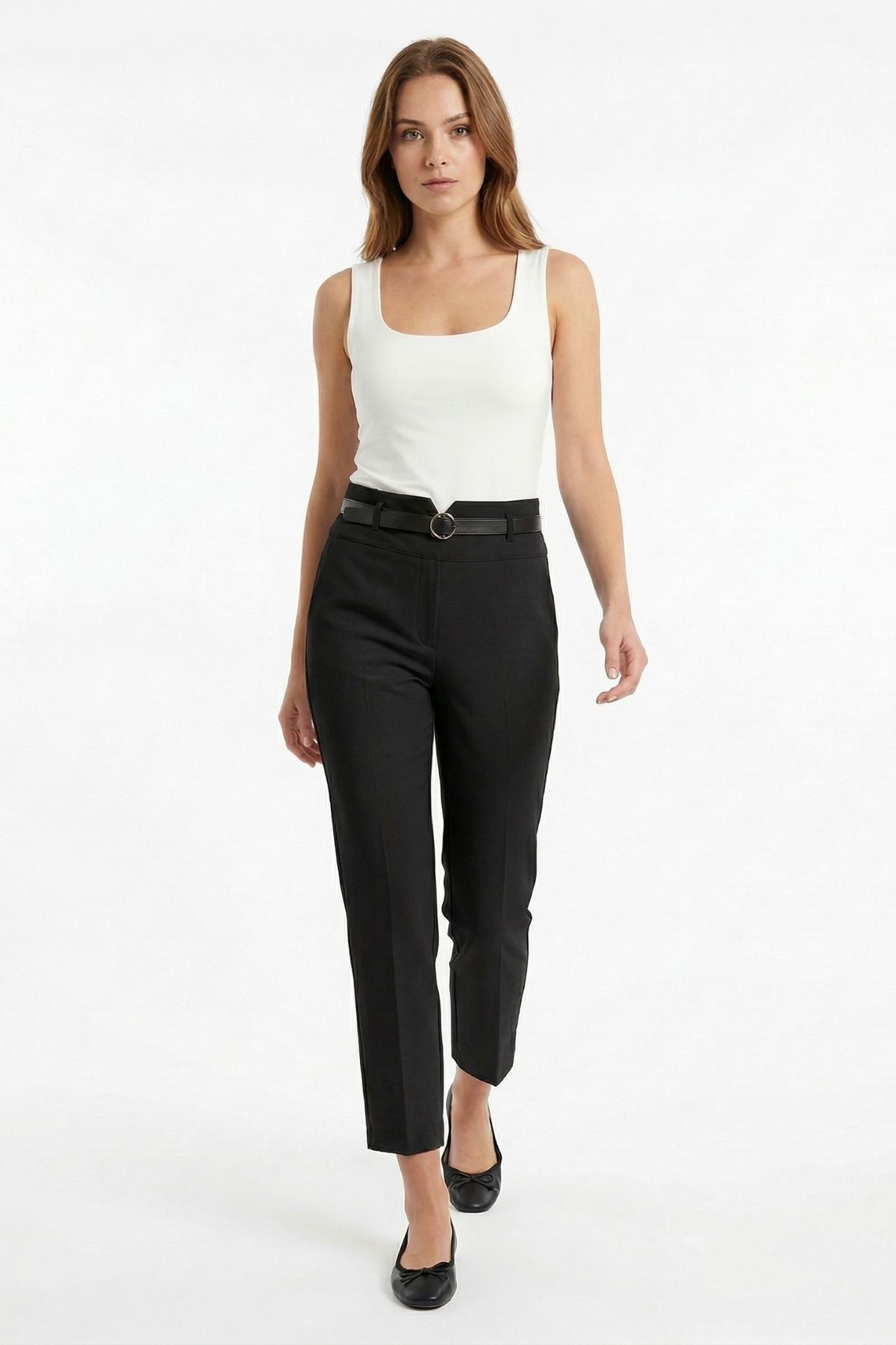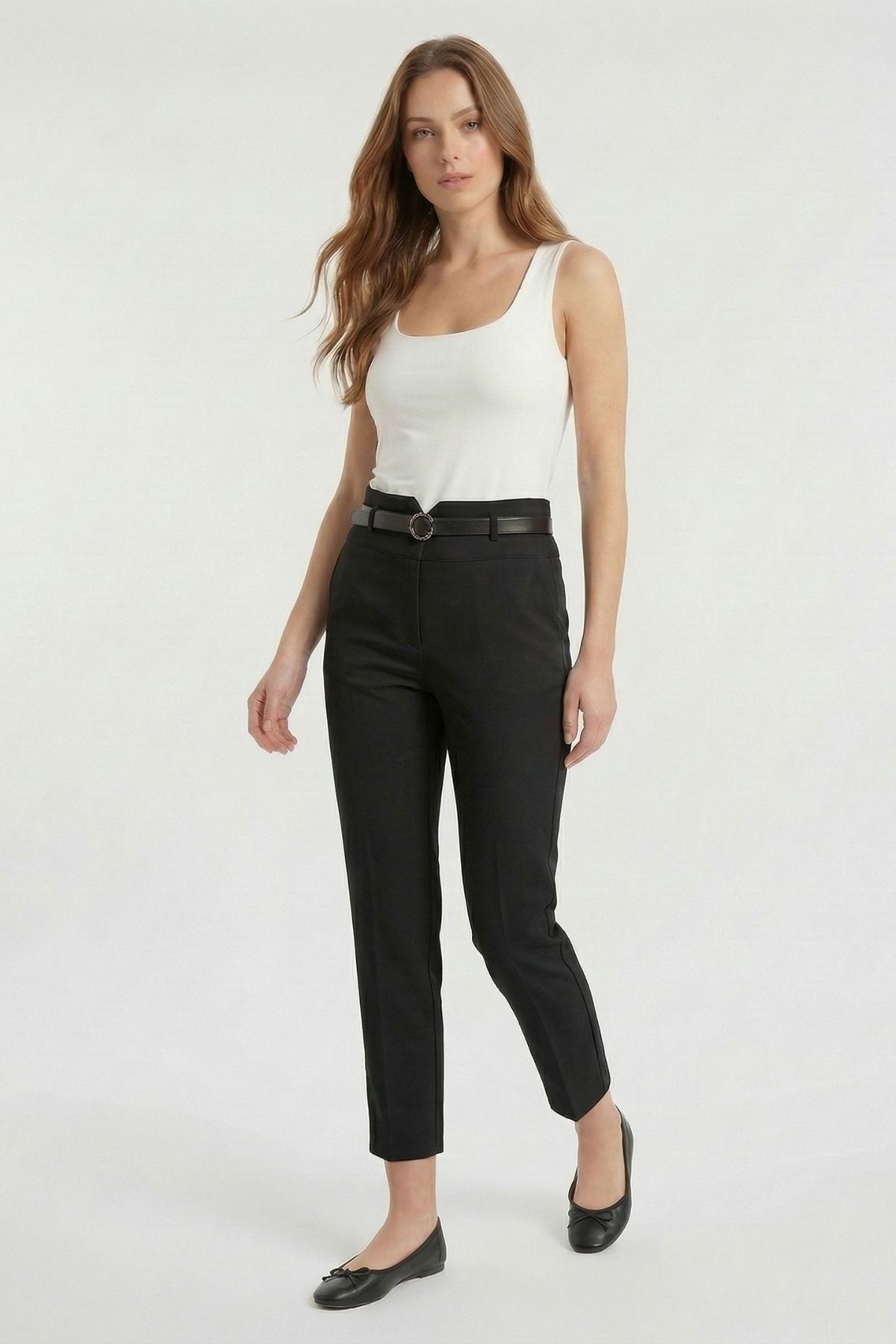 Siyah Kemerli Düz Paça Pantolon 7012A