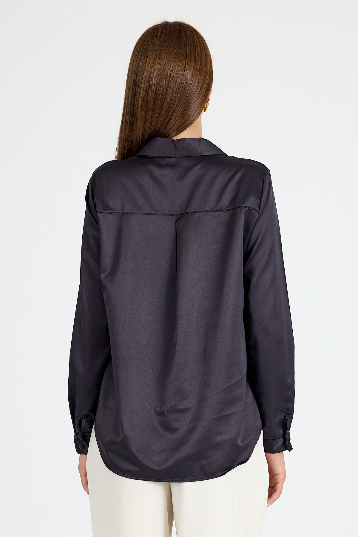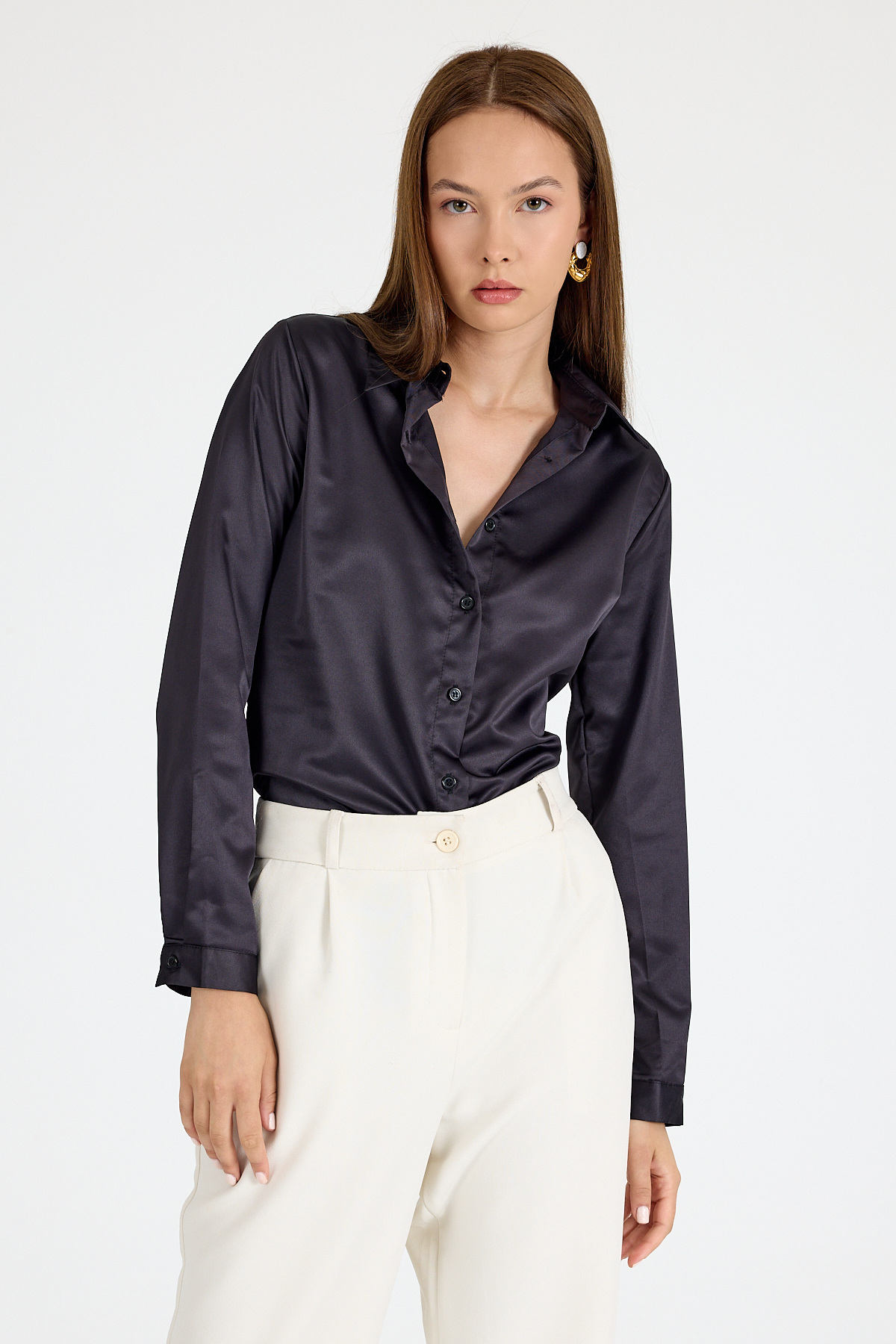 Siyah Klasik Kesim Saten Gömlek 4105A