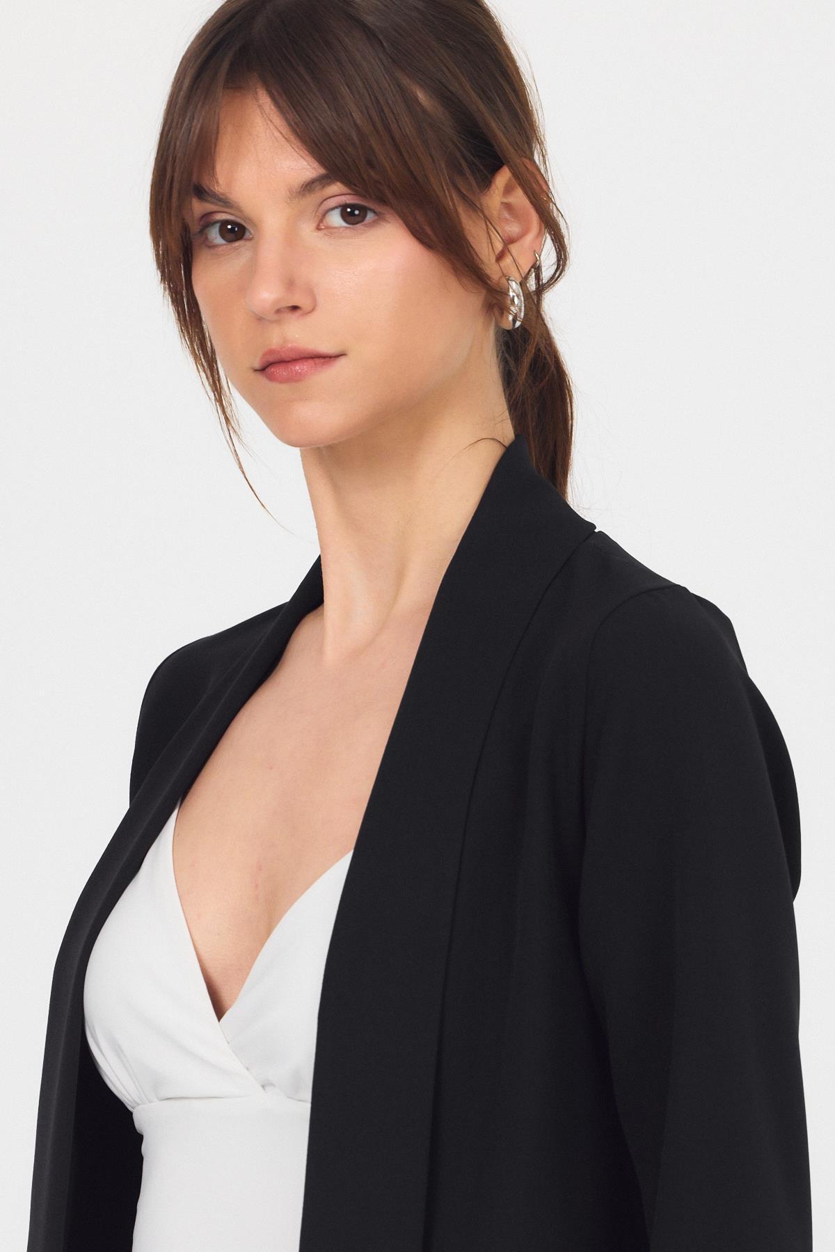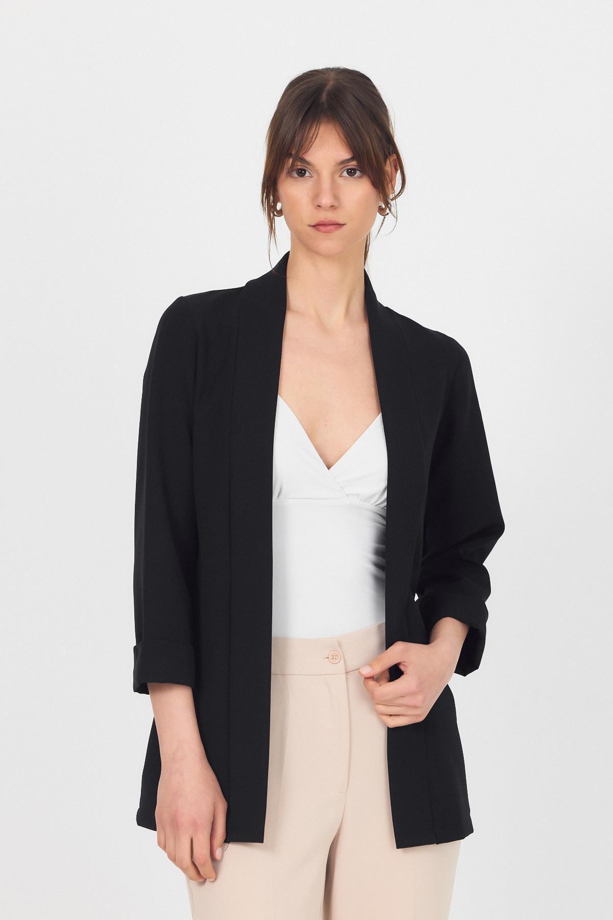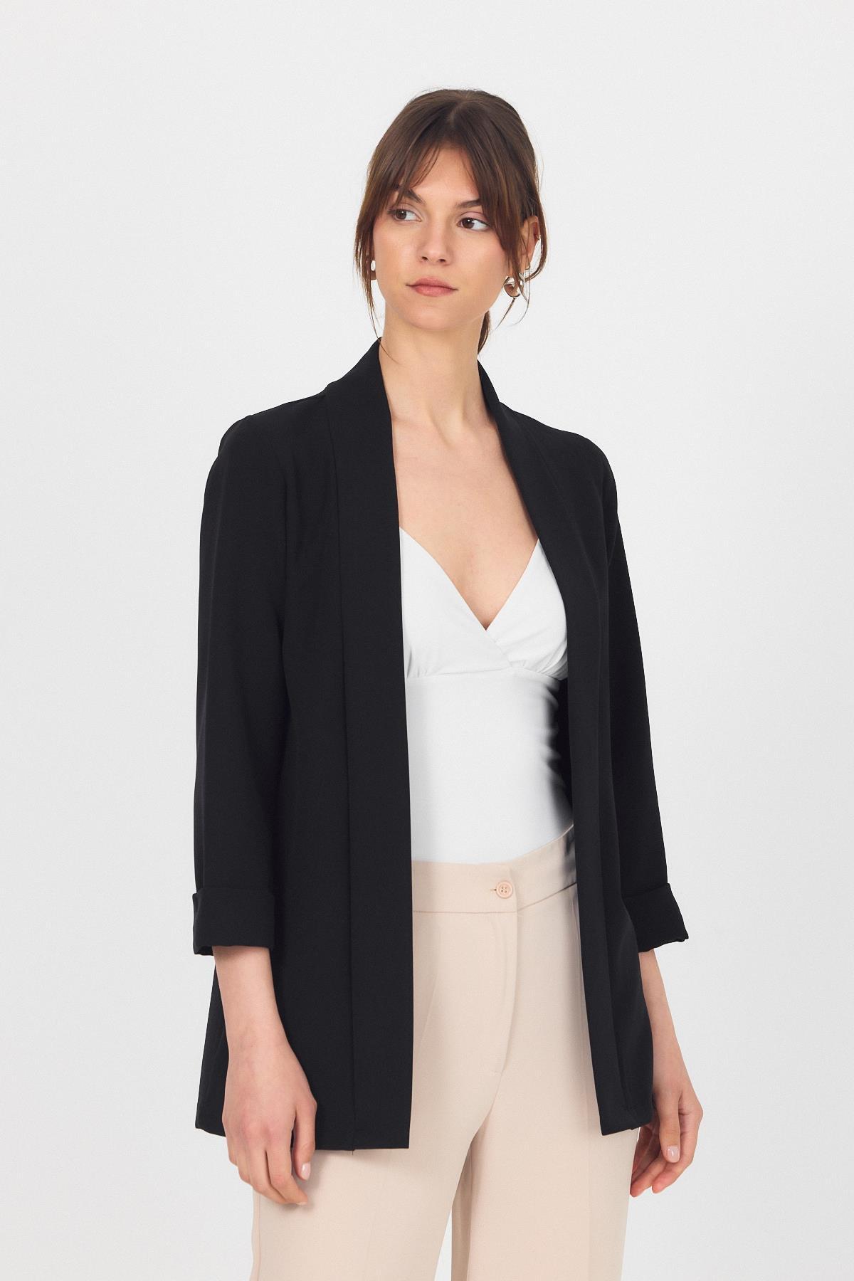 Siyah Kol Katlama Detay Önü Açık Ceket 3456