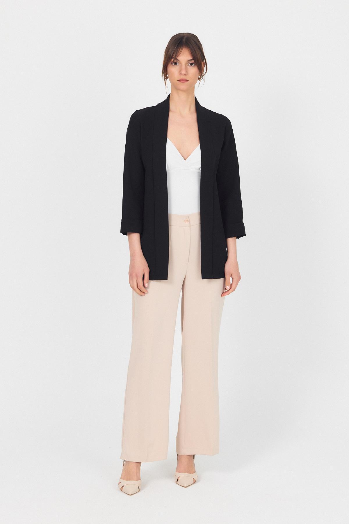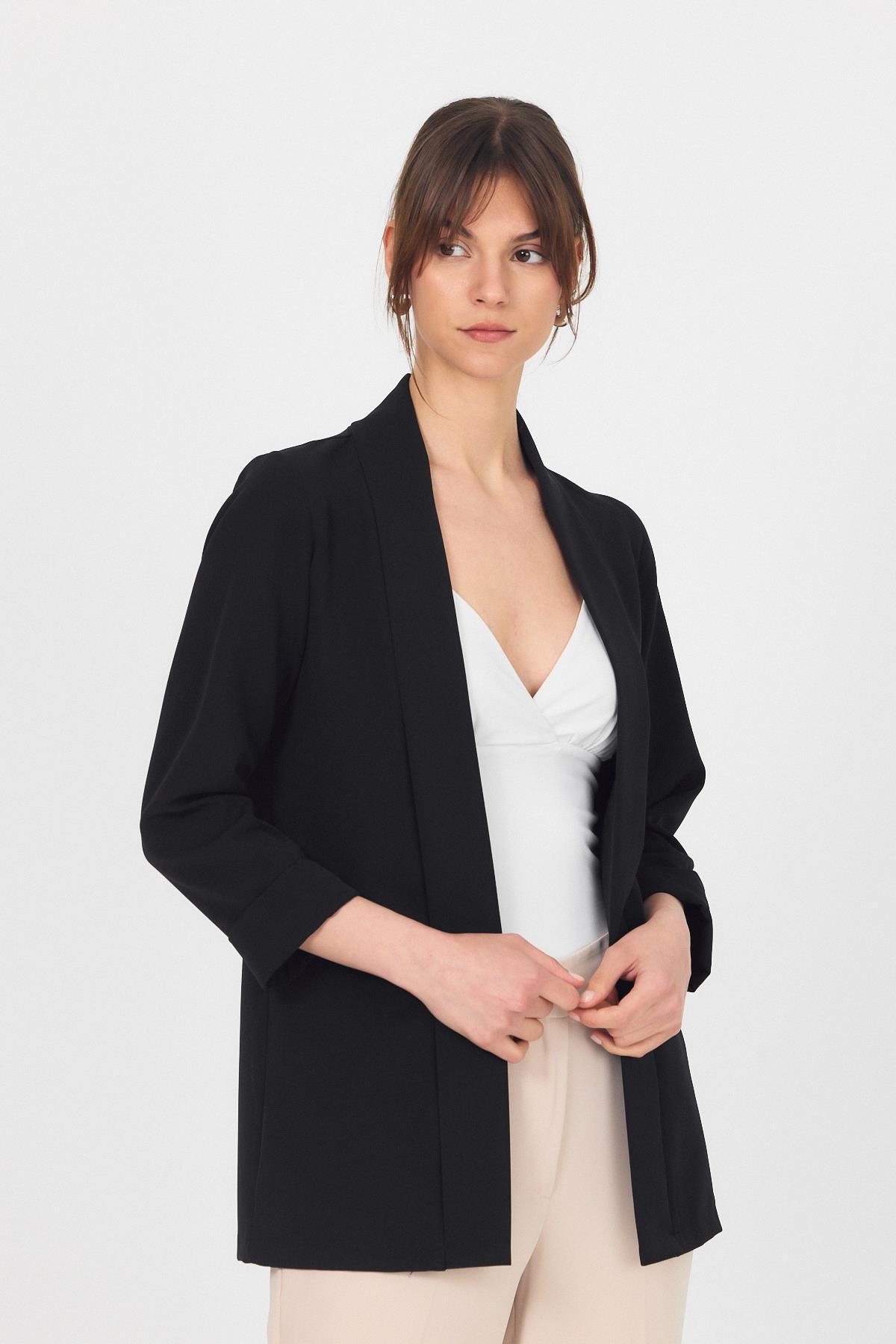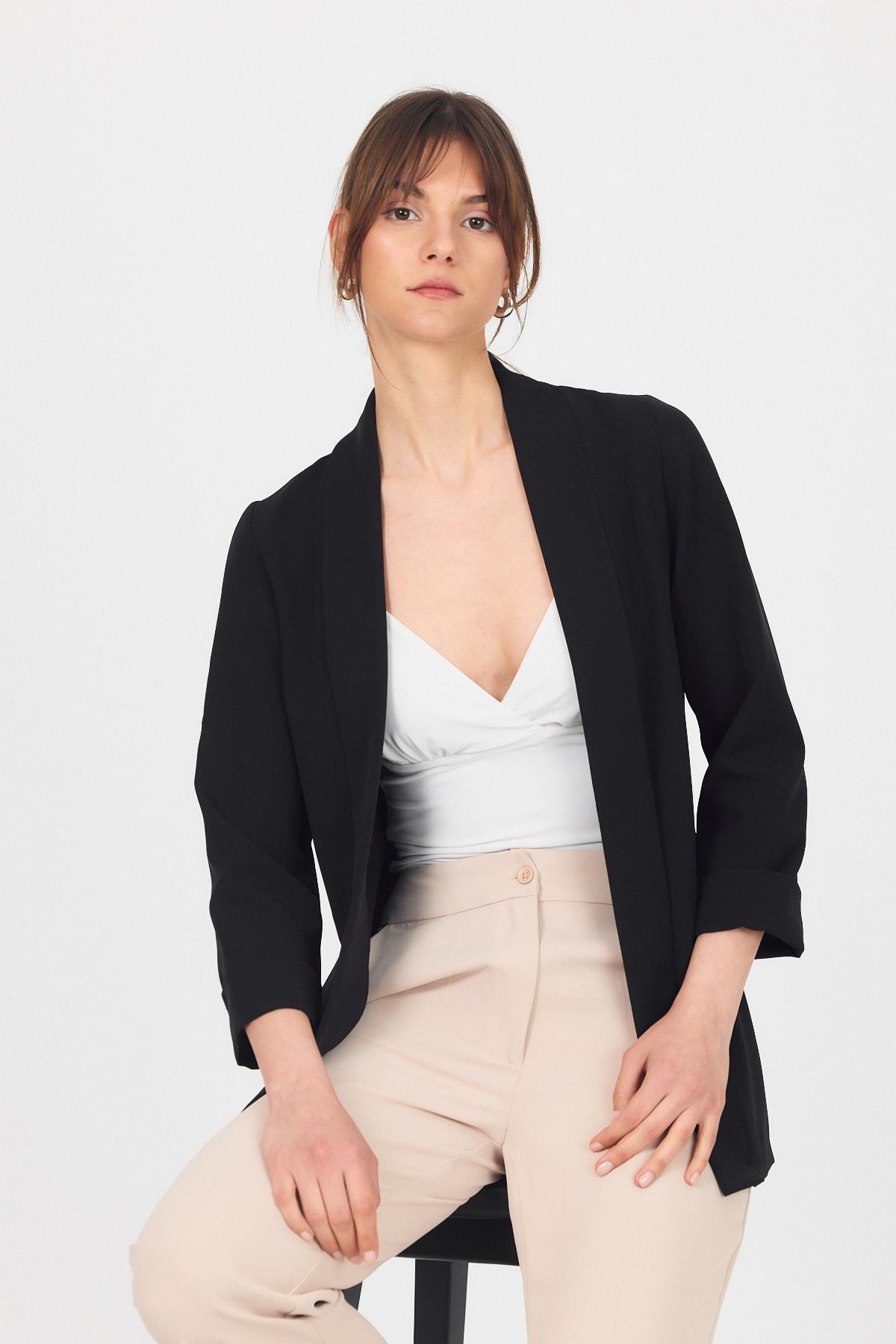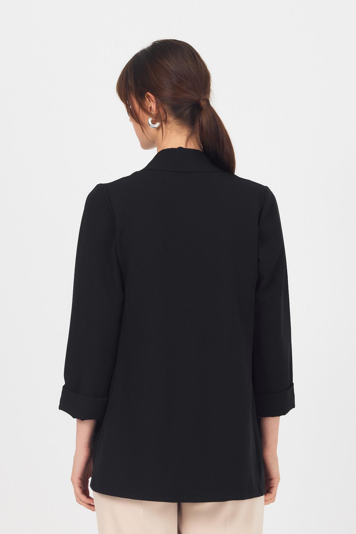 Siyah Kol Katlama Detay Önü Açık Ceket 3456