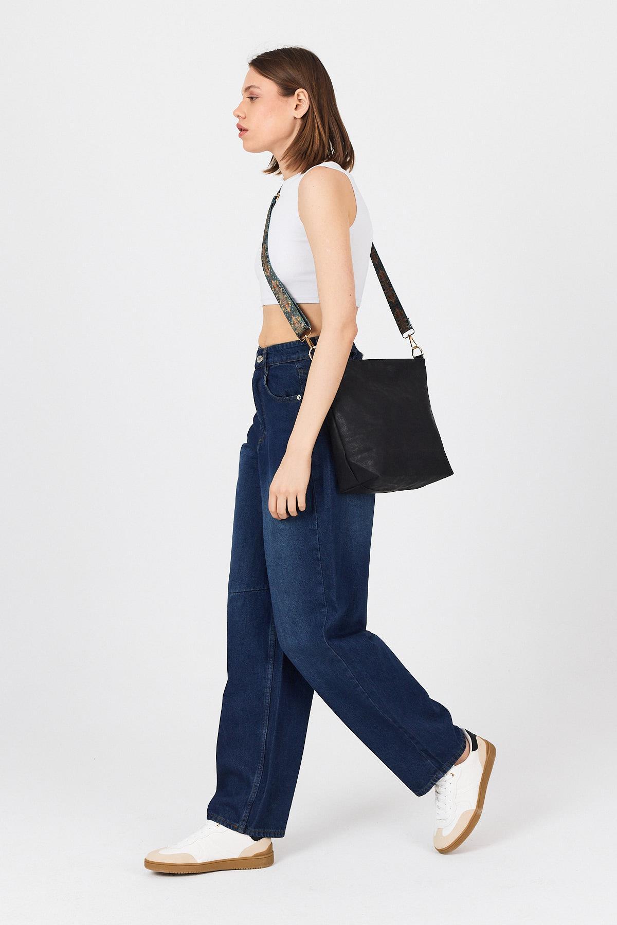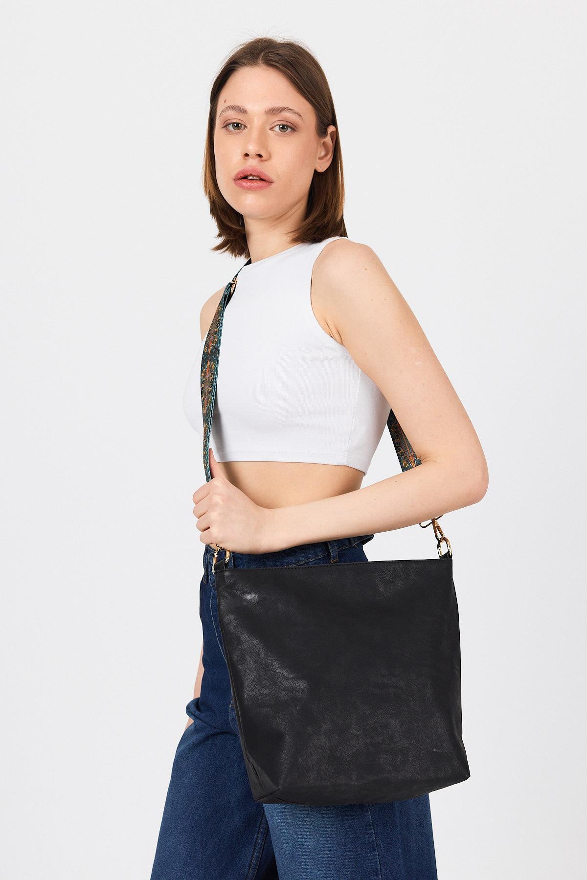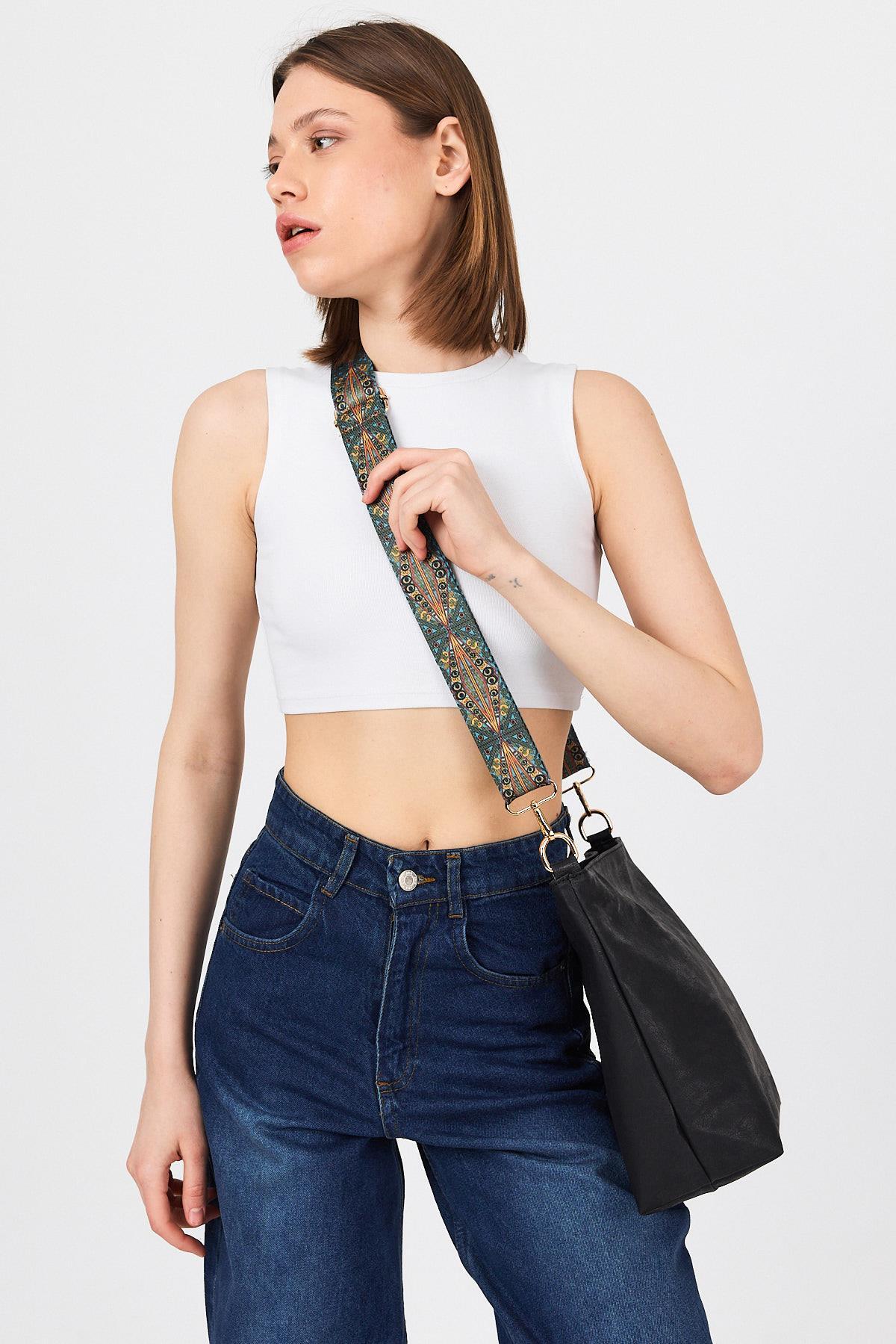 Siyah Kordonu Desenli Omuz Çantası 3002