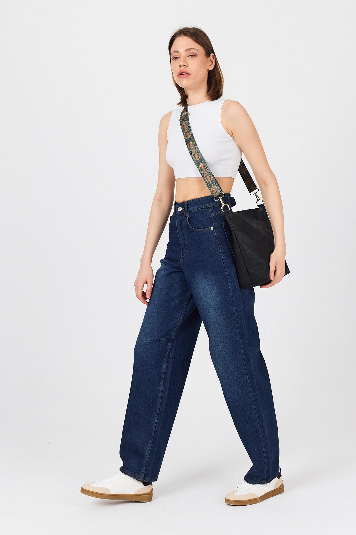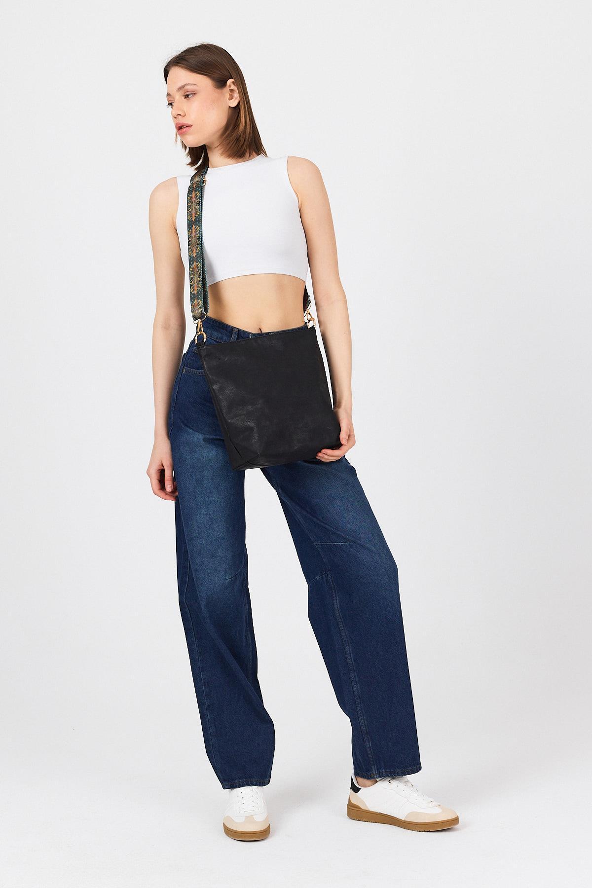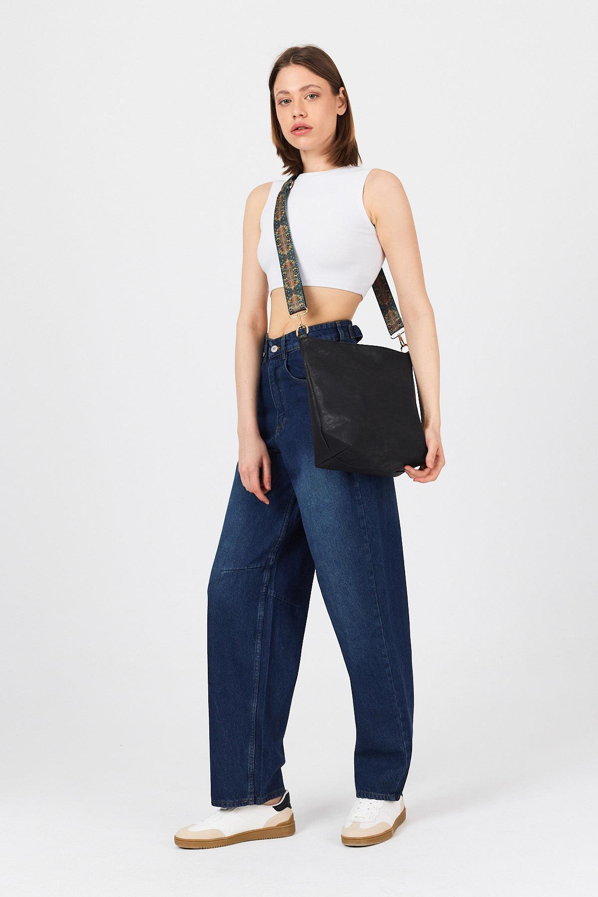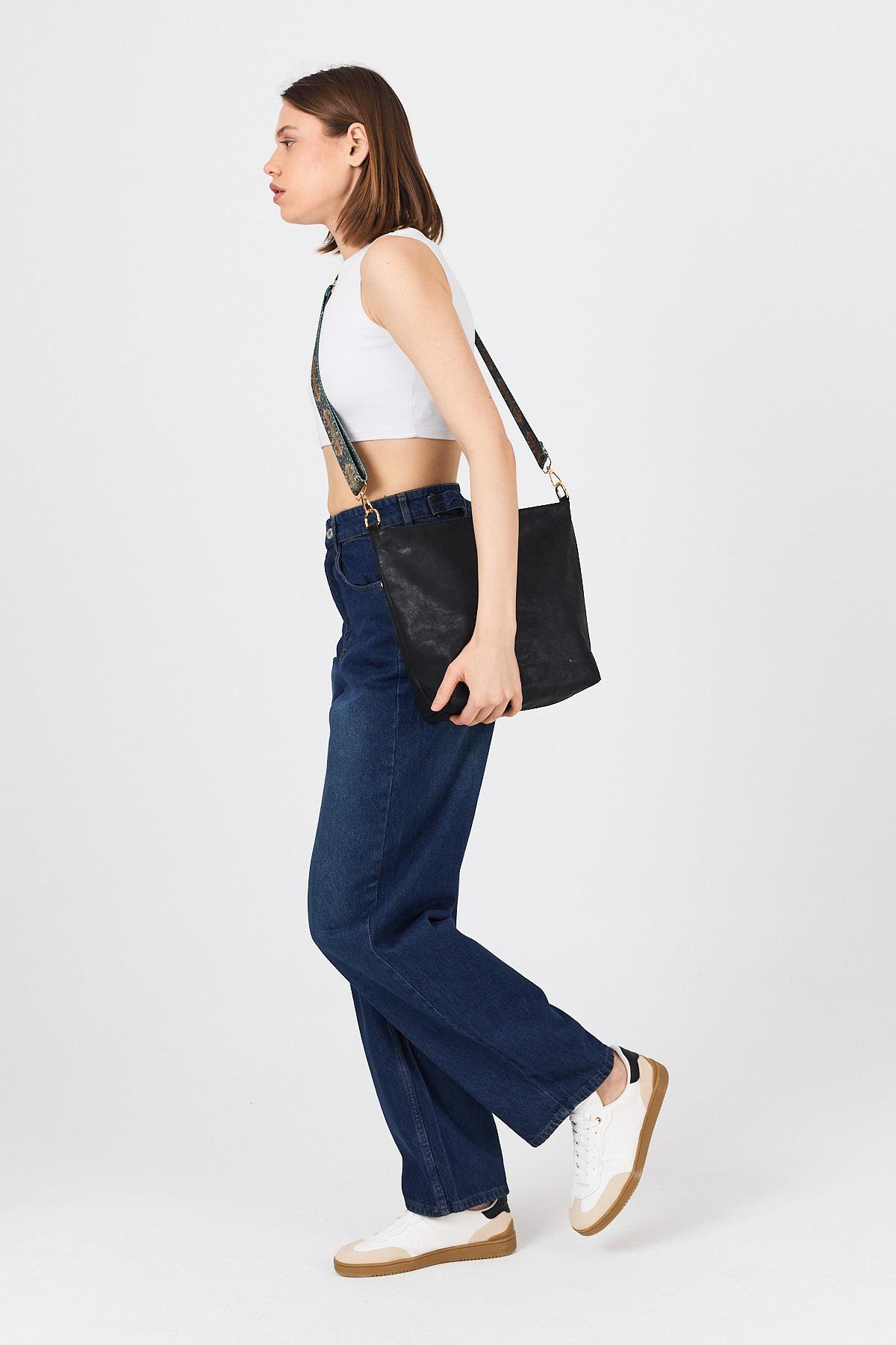 Siyah Kordonu Desenli Omuz Çantası 3002