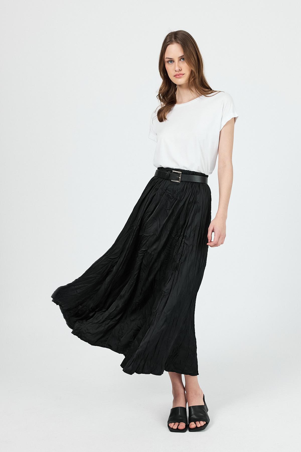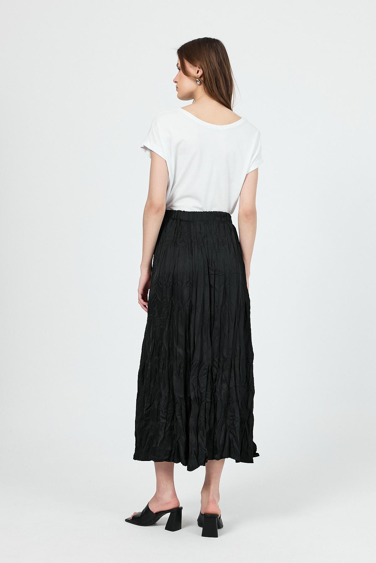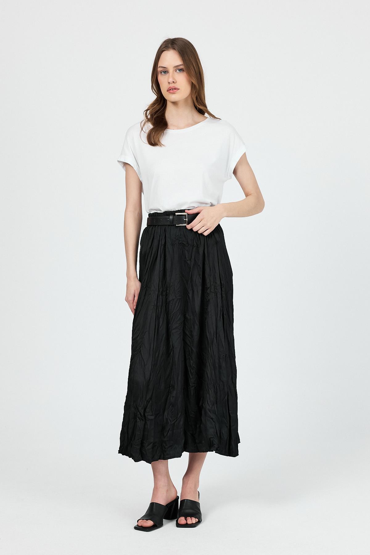 Siyah Kraşlı Kırışık Kumaş Etek 9470