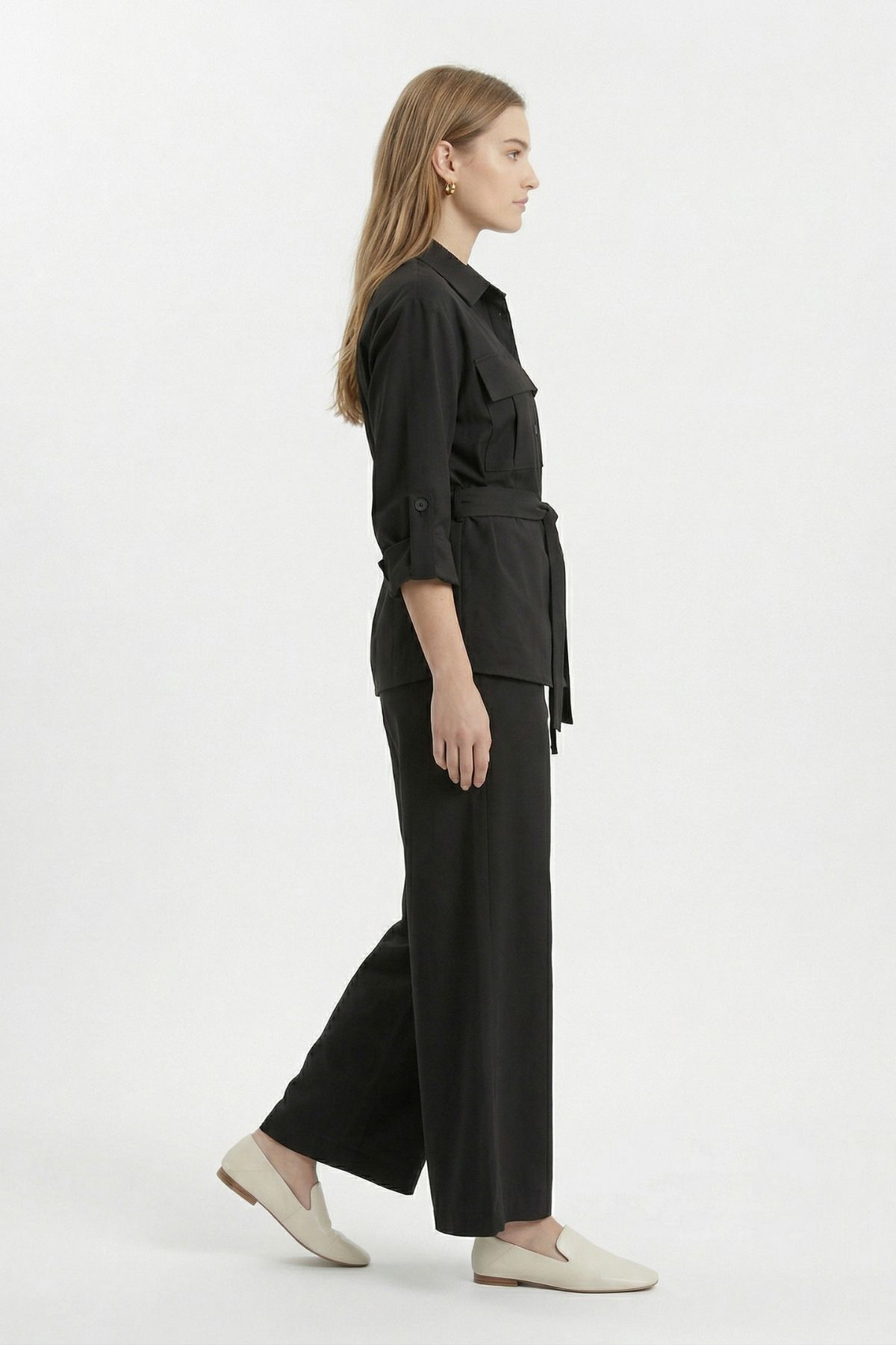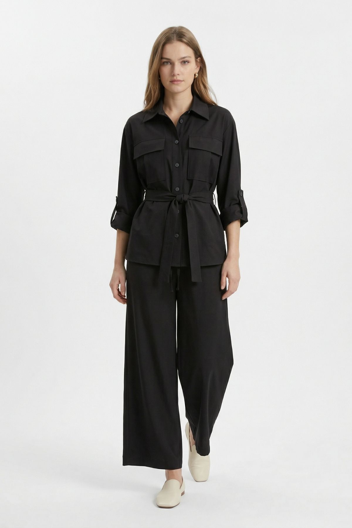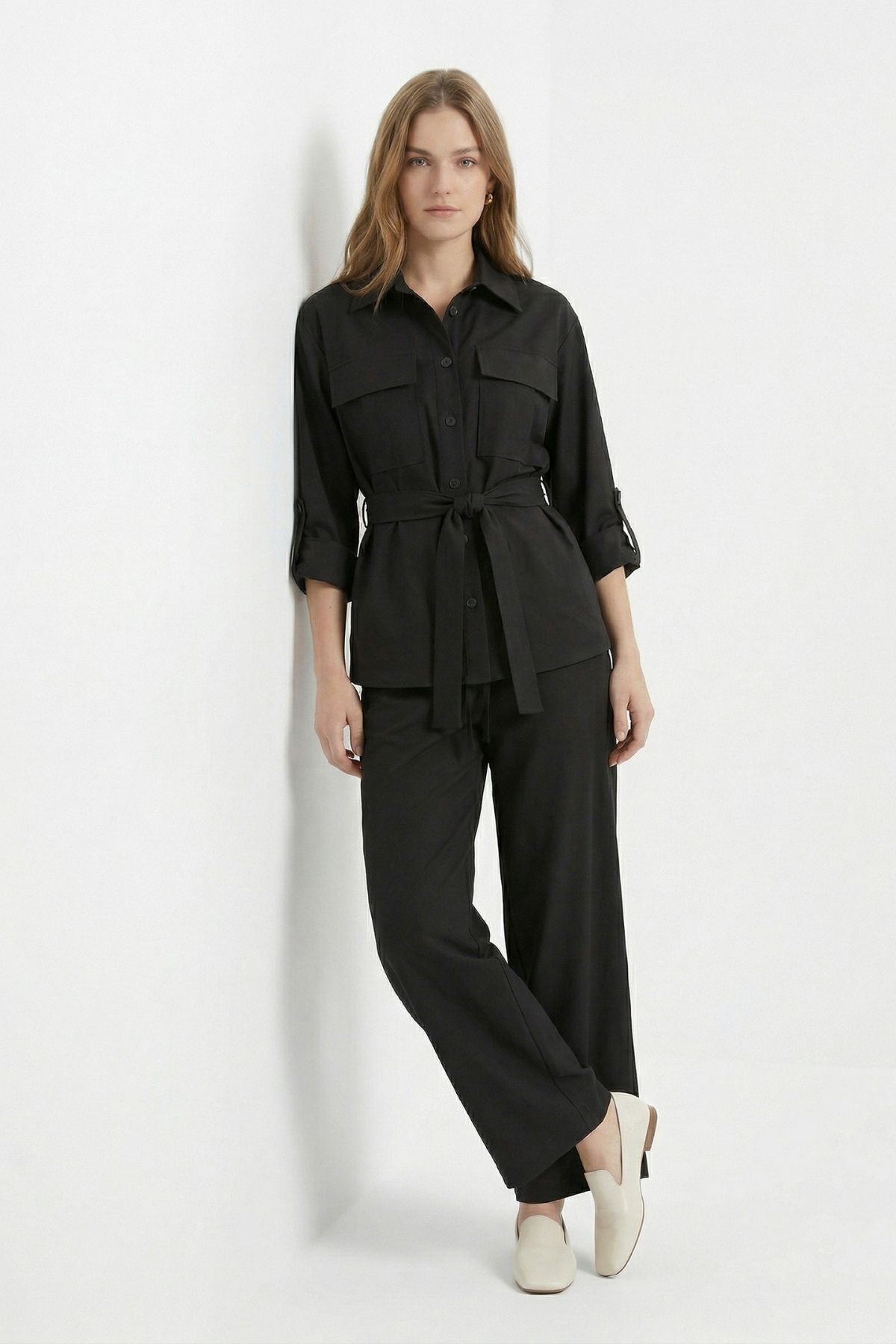 Siyah Kuşaklı Cepli Ceket Pantolon Takım 8874