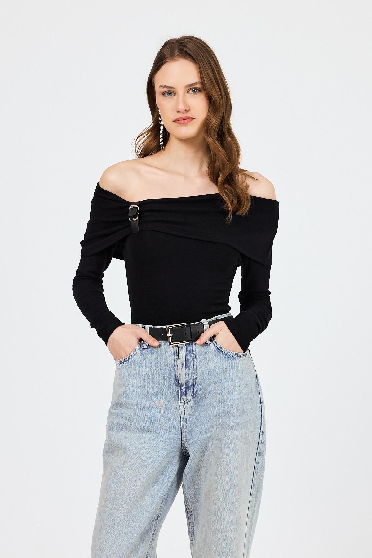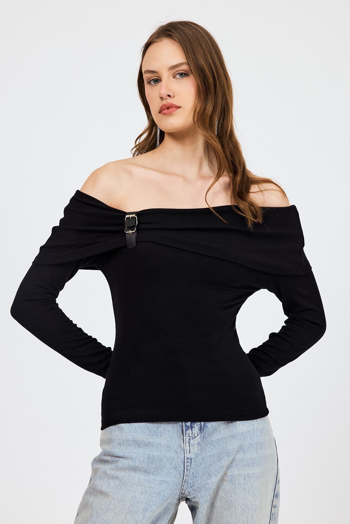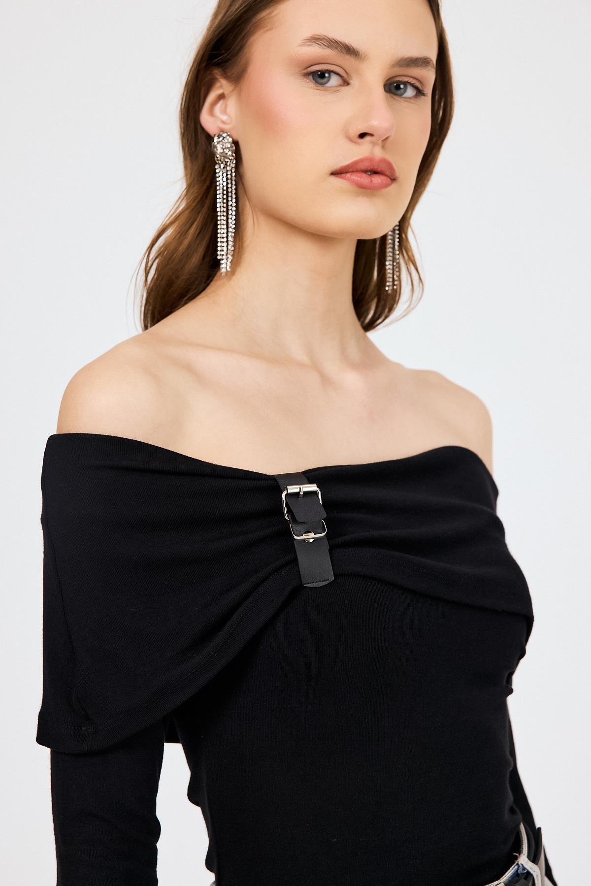 Siyah Madonna Yaka Toka Detaylı Bluz 1465