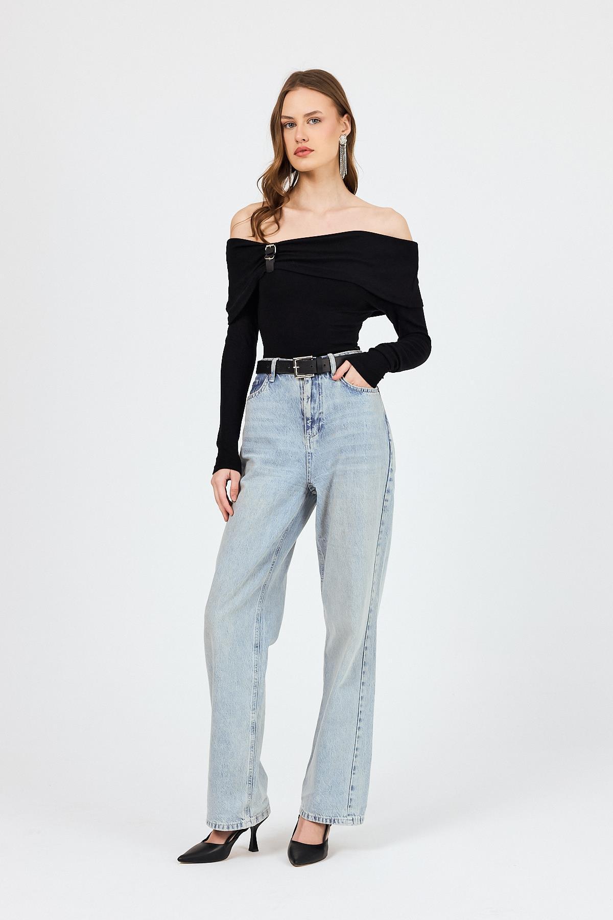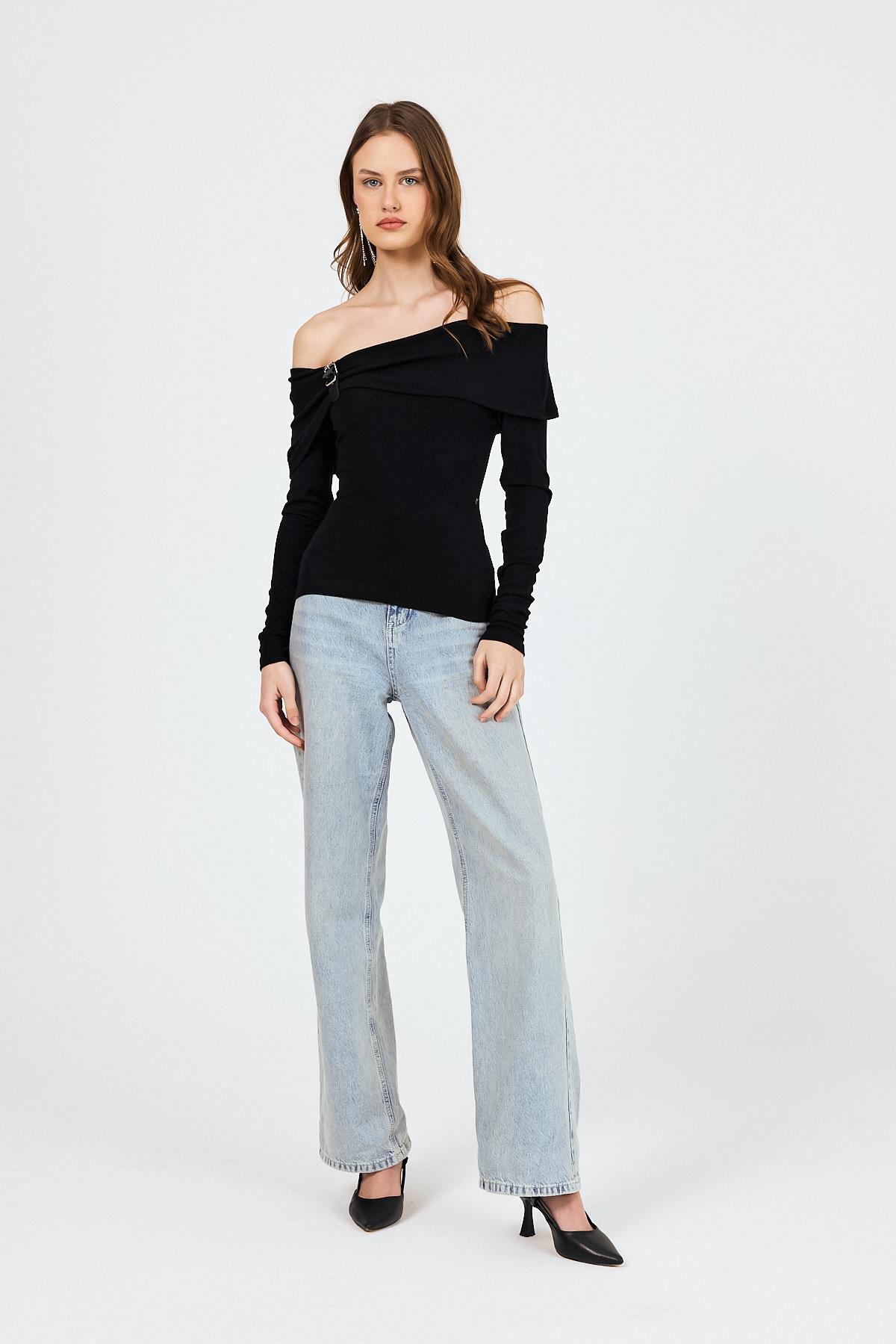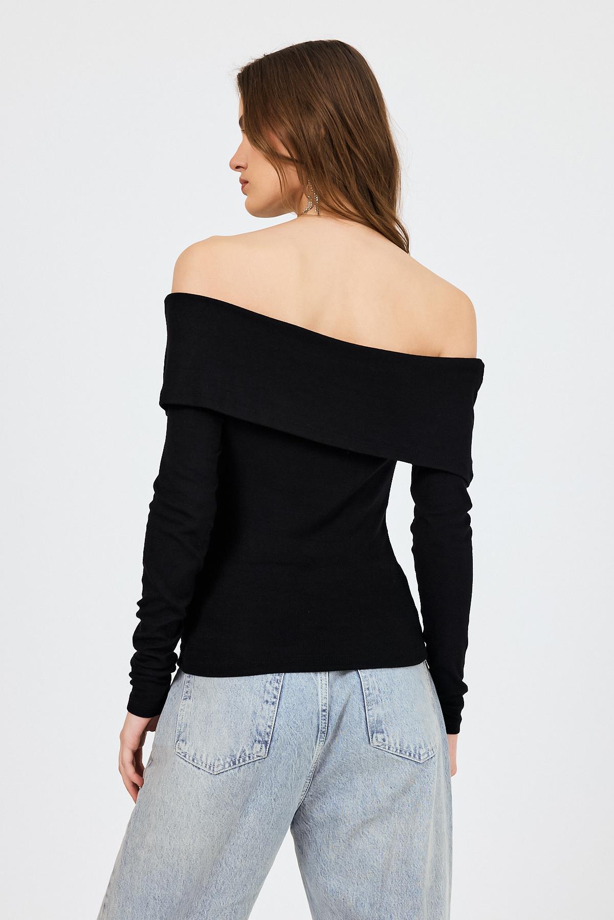Siyah Madonna Yaka Toka Detaylı Bluz 1465