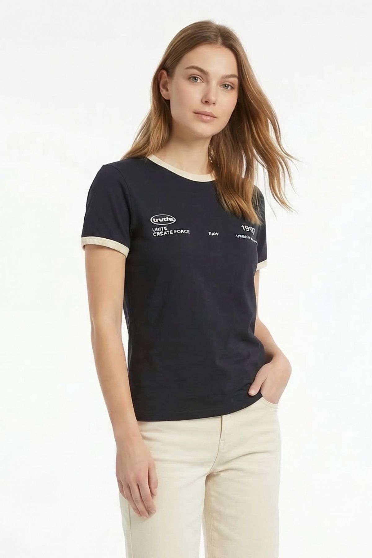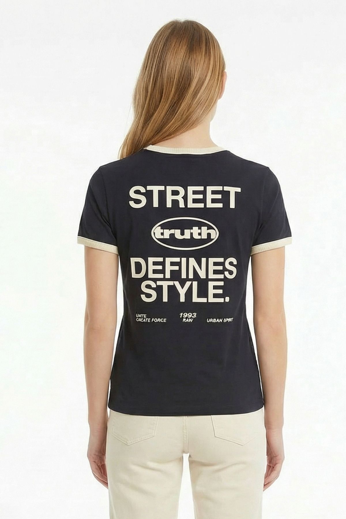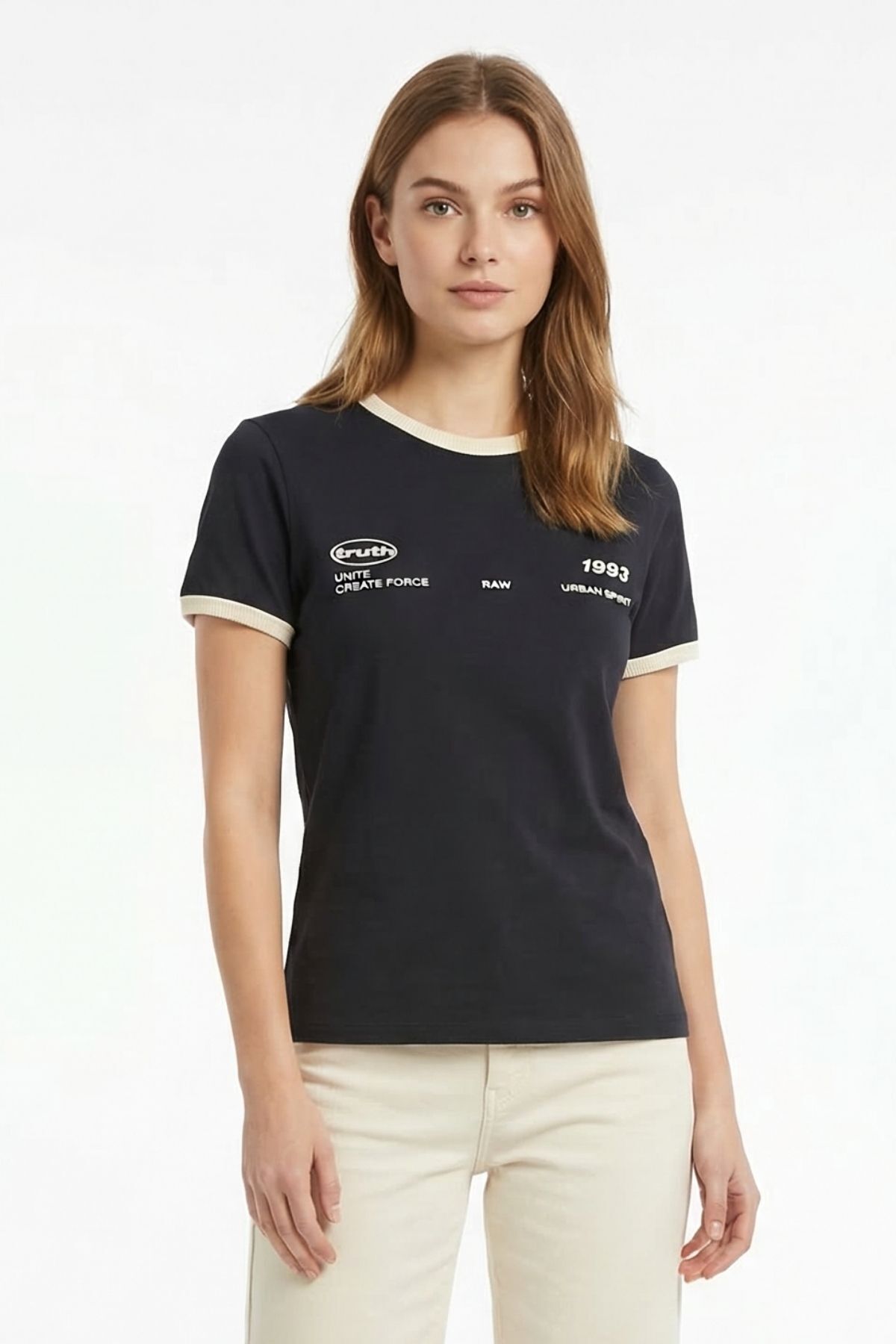 Siyah Ön Arka Yazı Baskılı Tişört 8076
