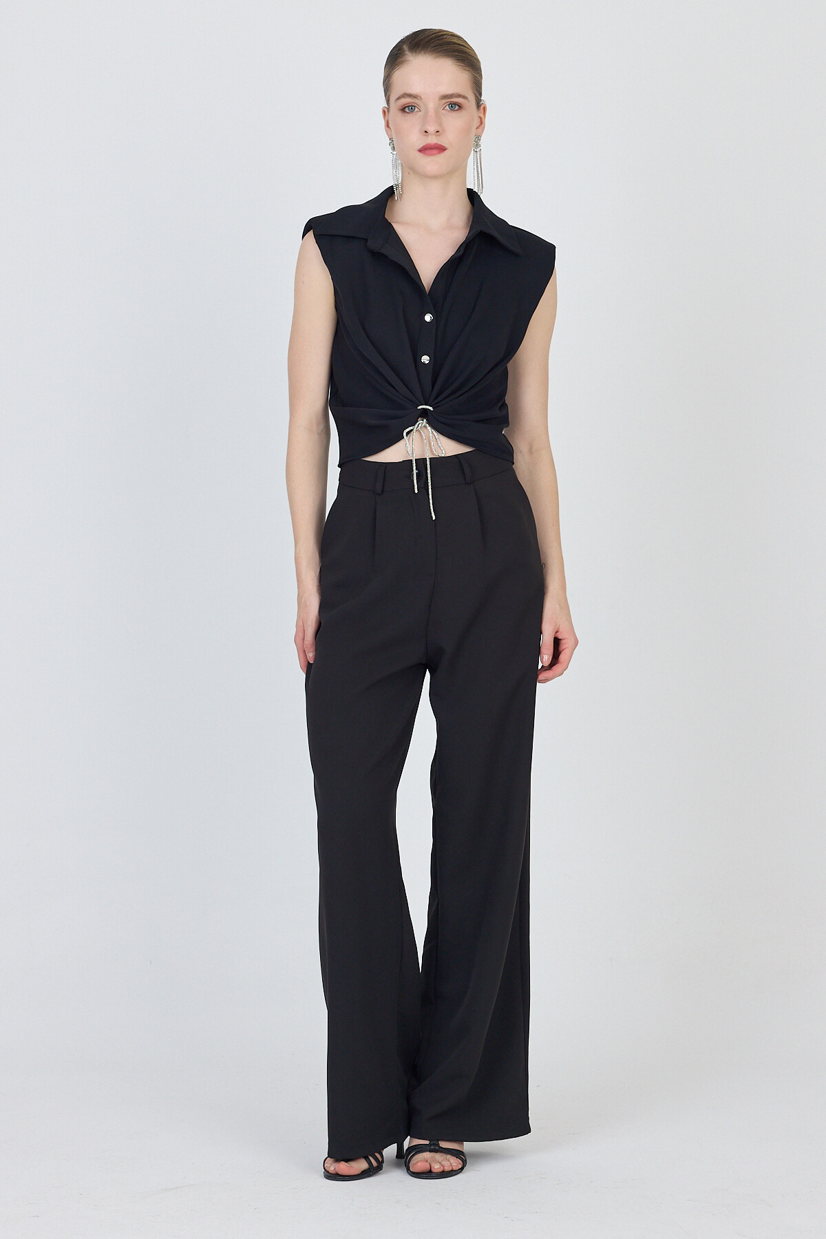 Siyah Ön Bağlama Detaylı Crop Bluz 241188