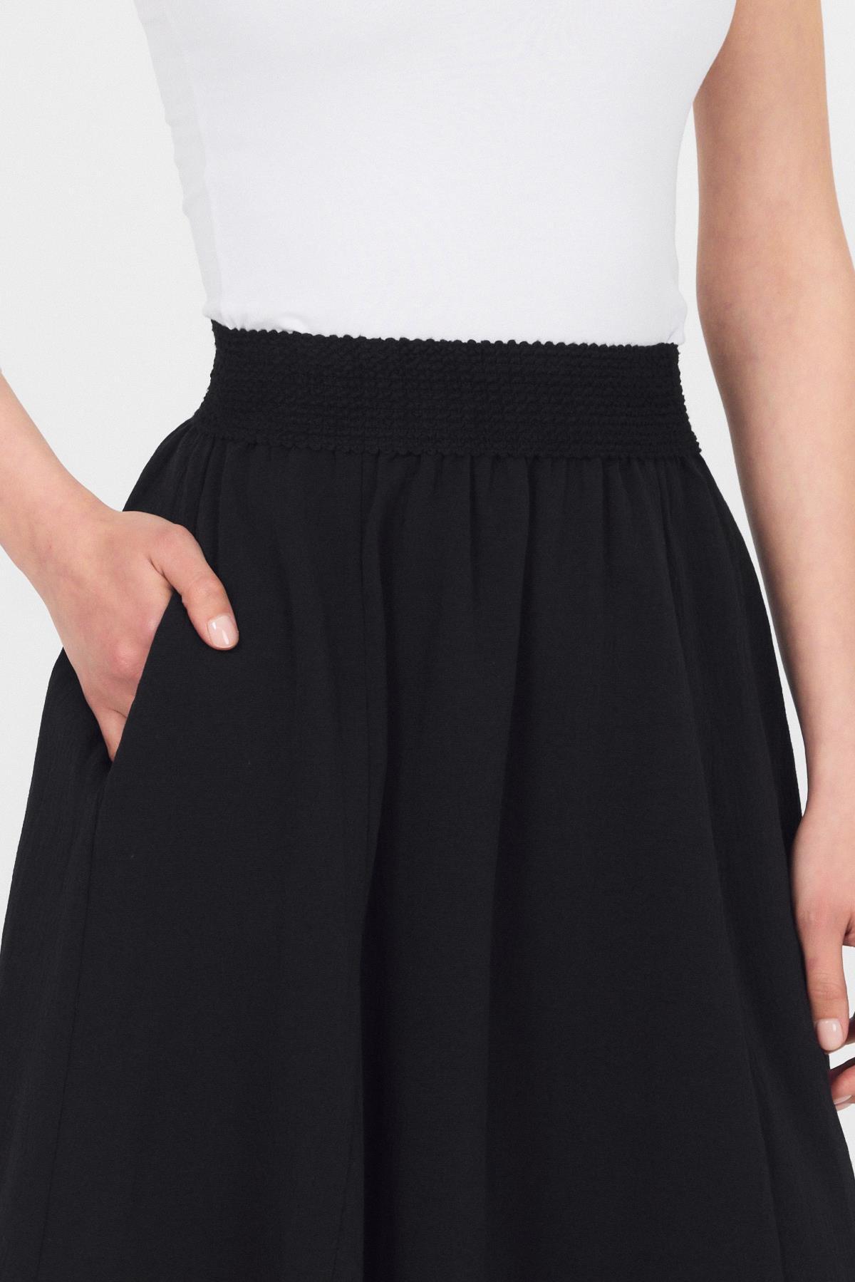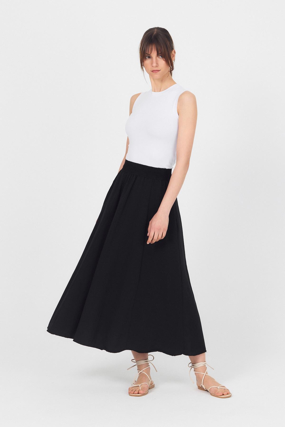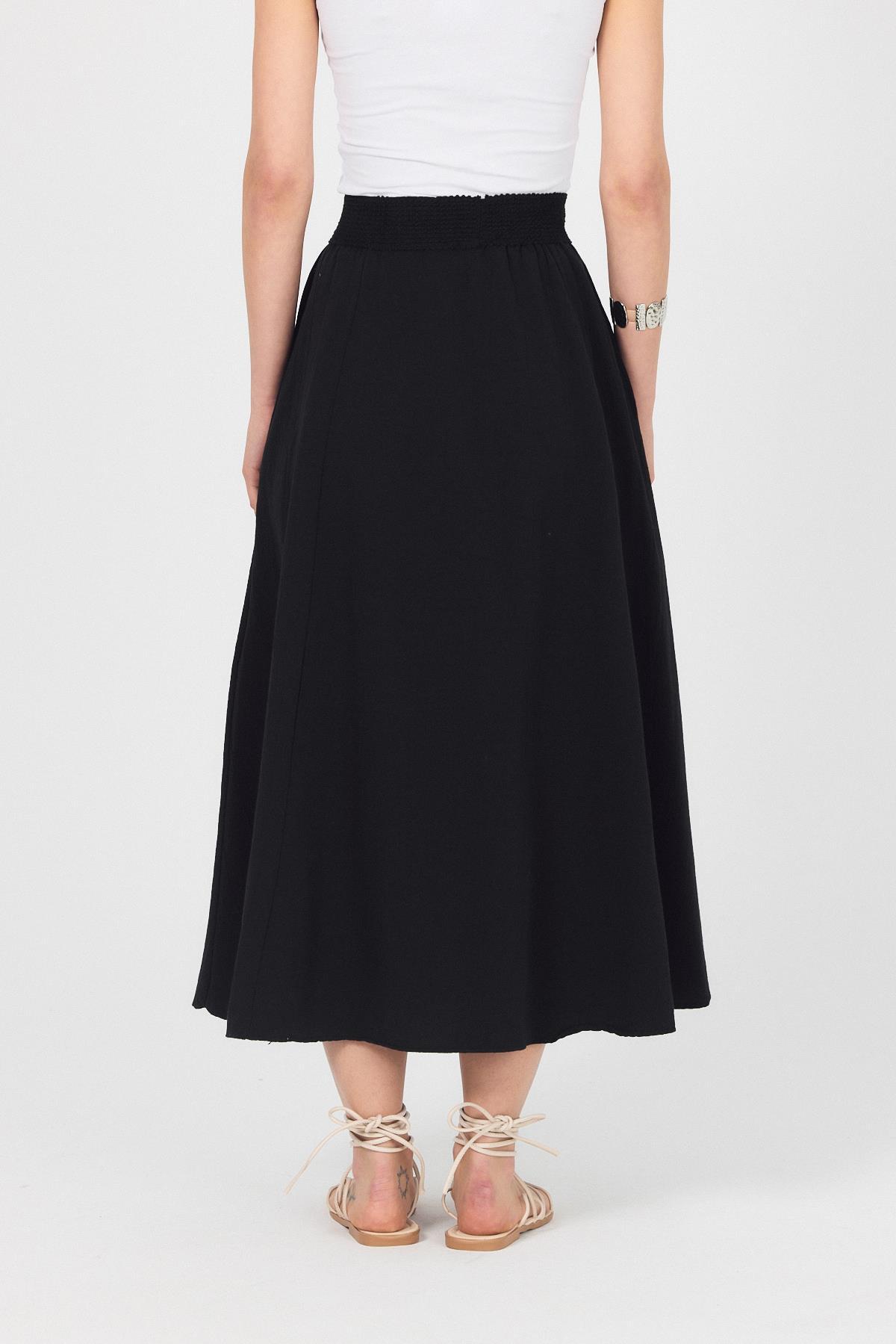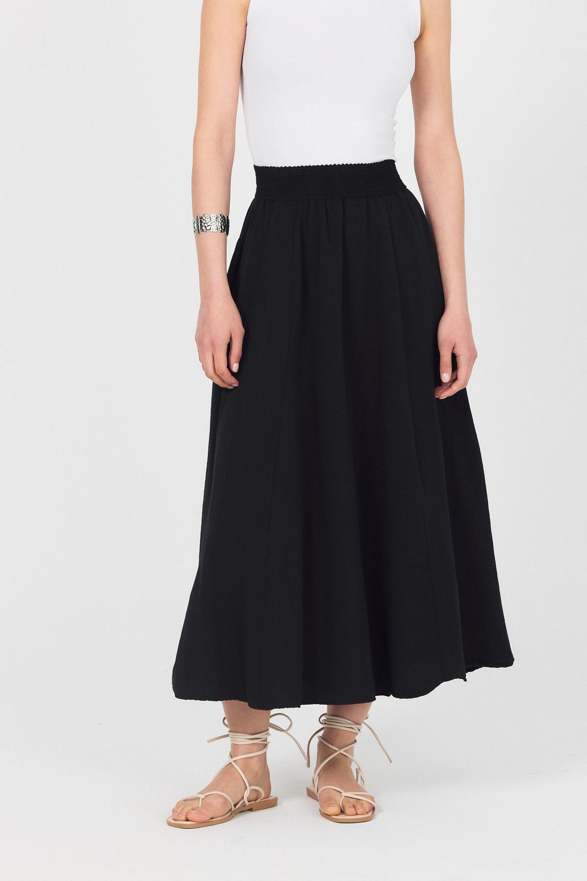 Siyah Örgü Kemer Detay Cepli Midi Etek 3027