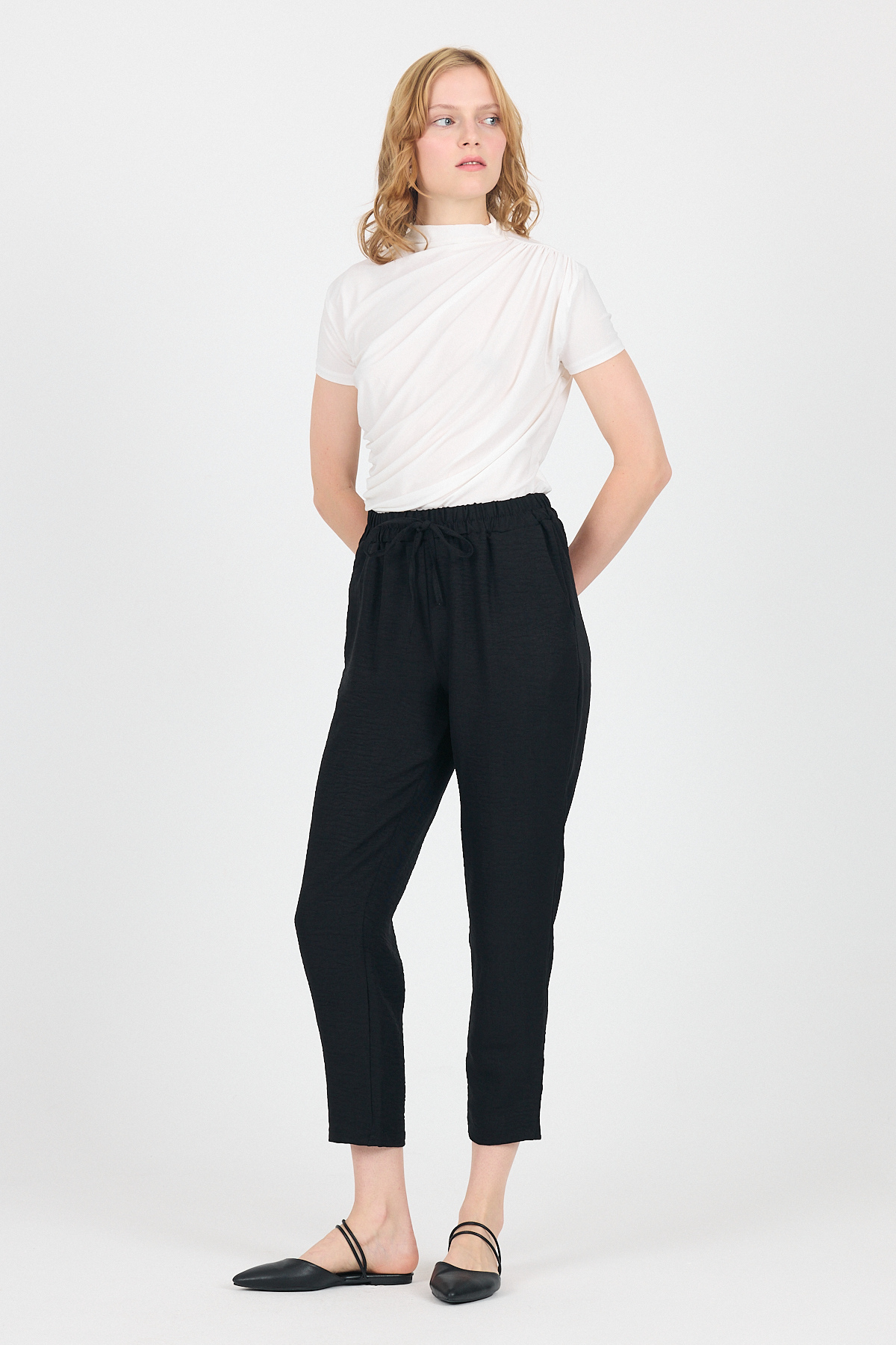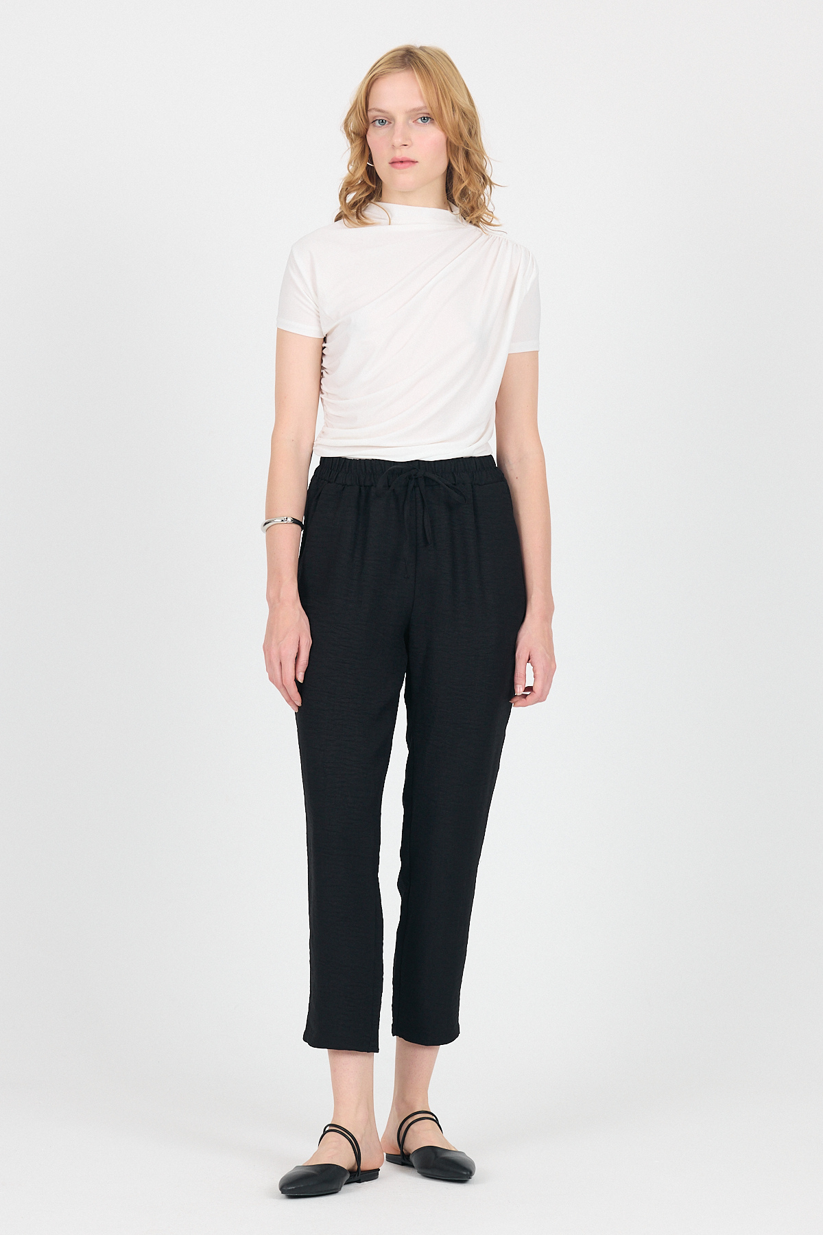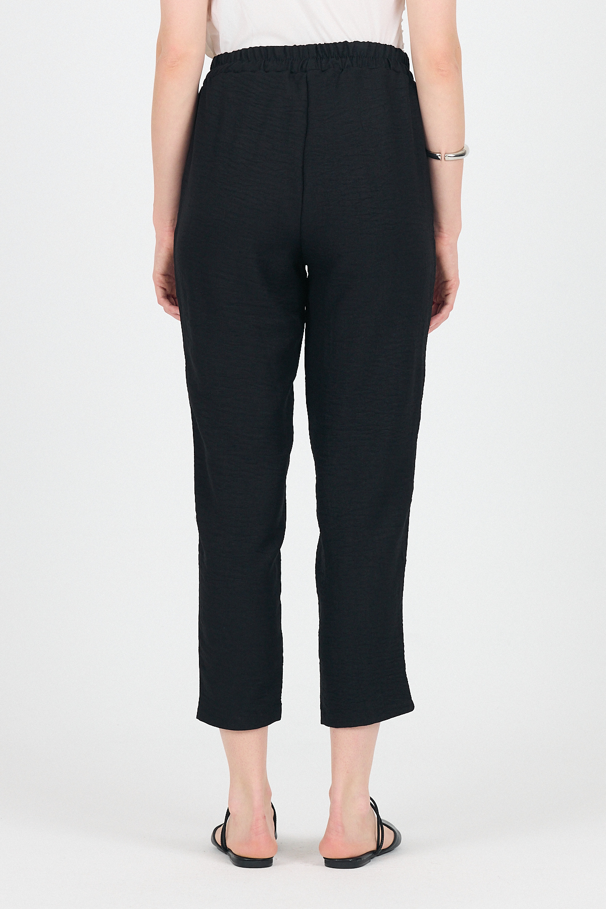 Siyah Pamuklu Bel Lastikli Düz Paça Düz Paça Pantolon 4800