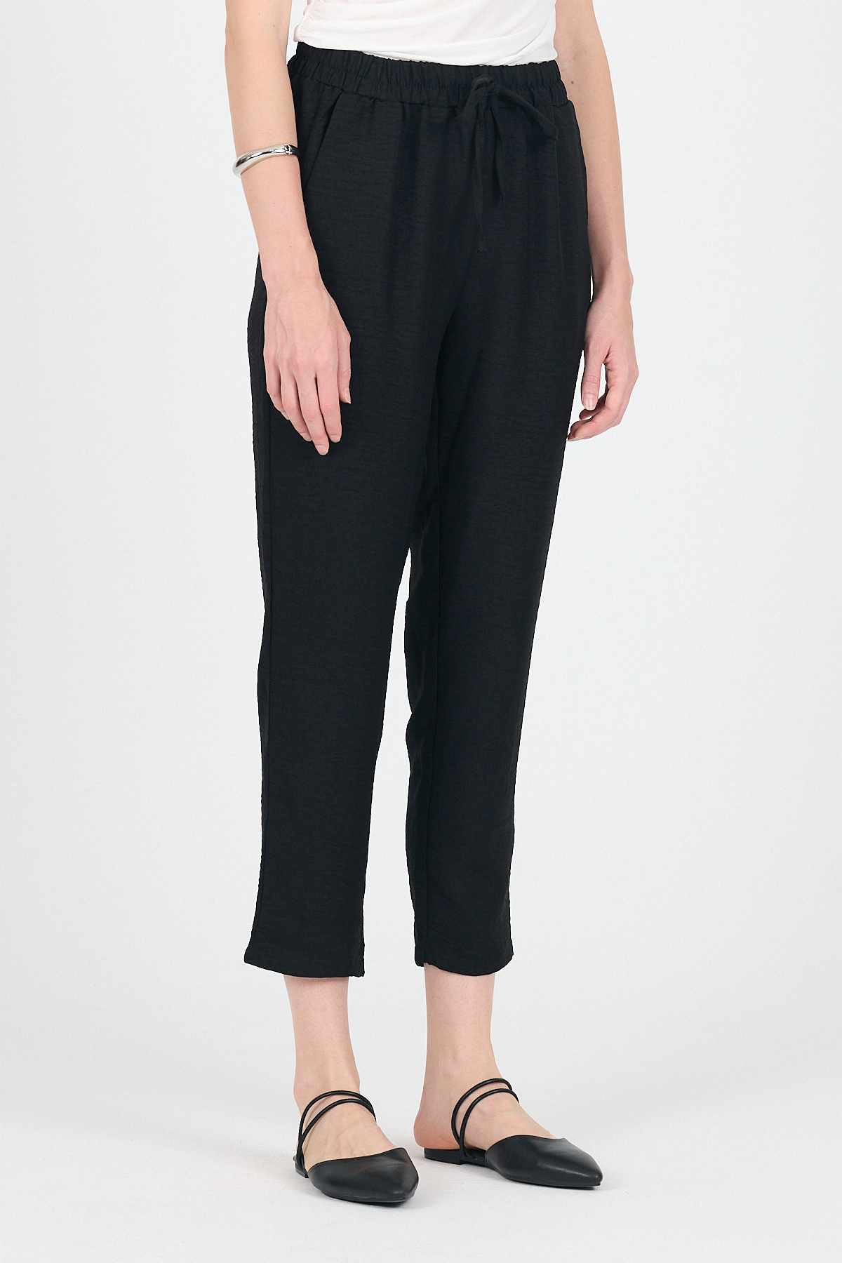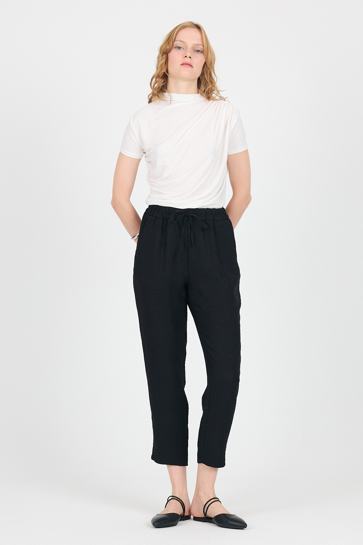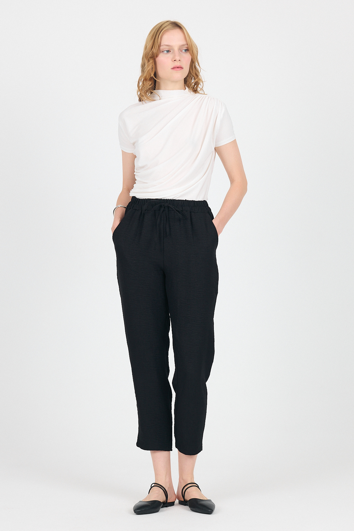 Siyah Pamuklu Bel Lastikli Düz Paça Düz Paça Pantolon 4800