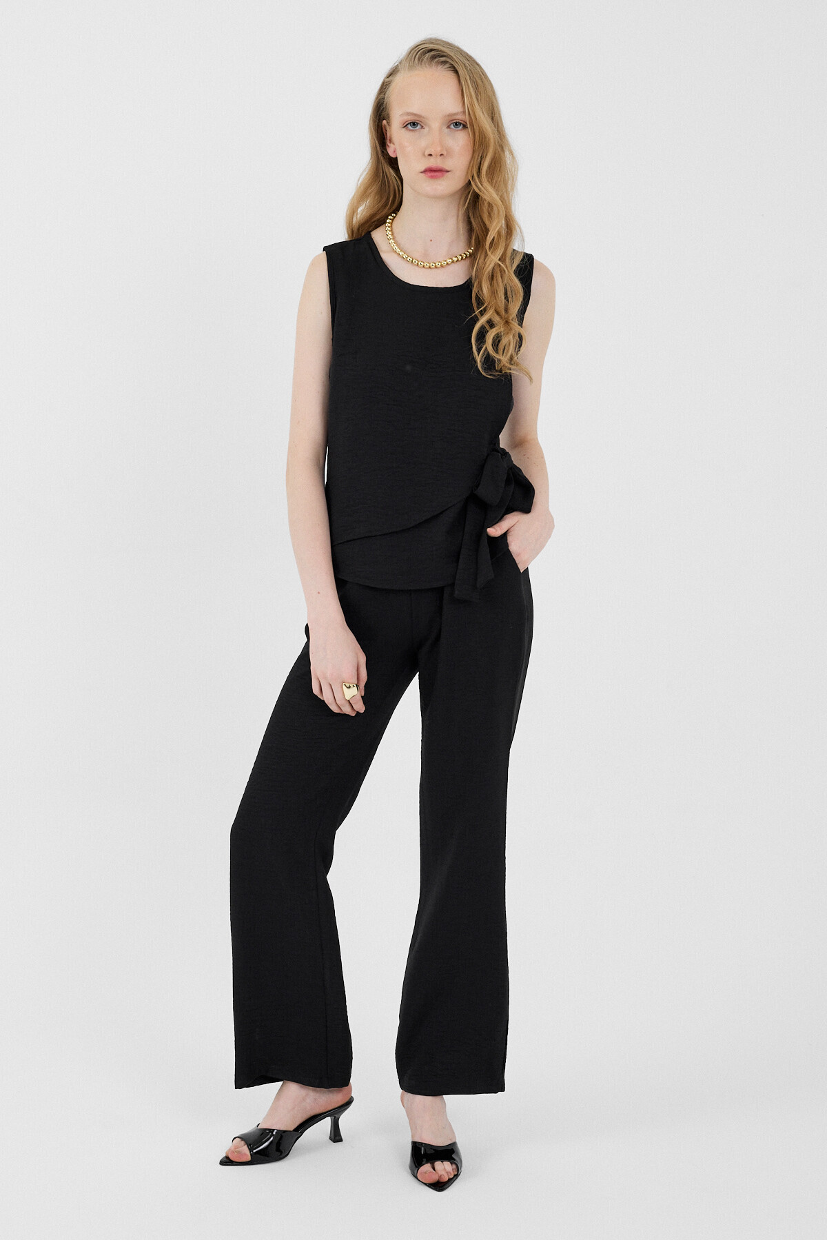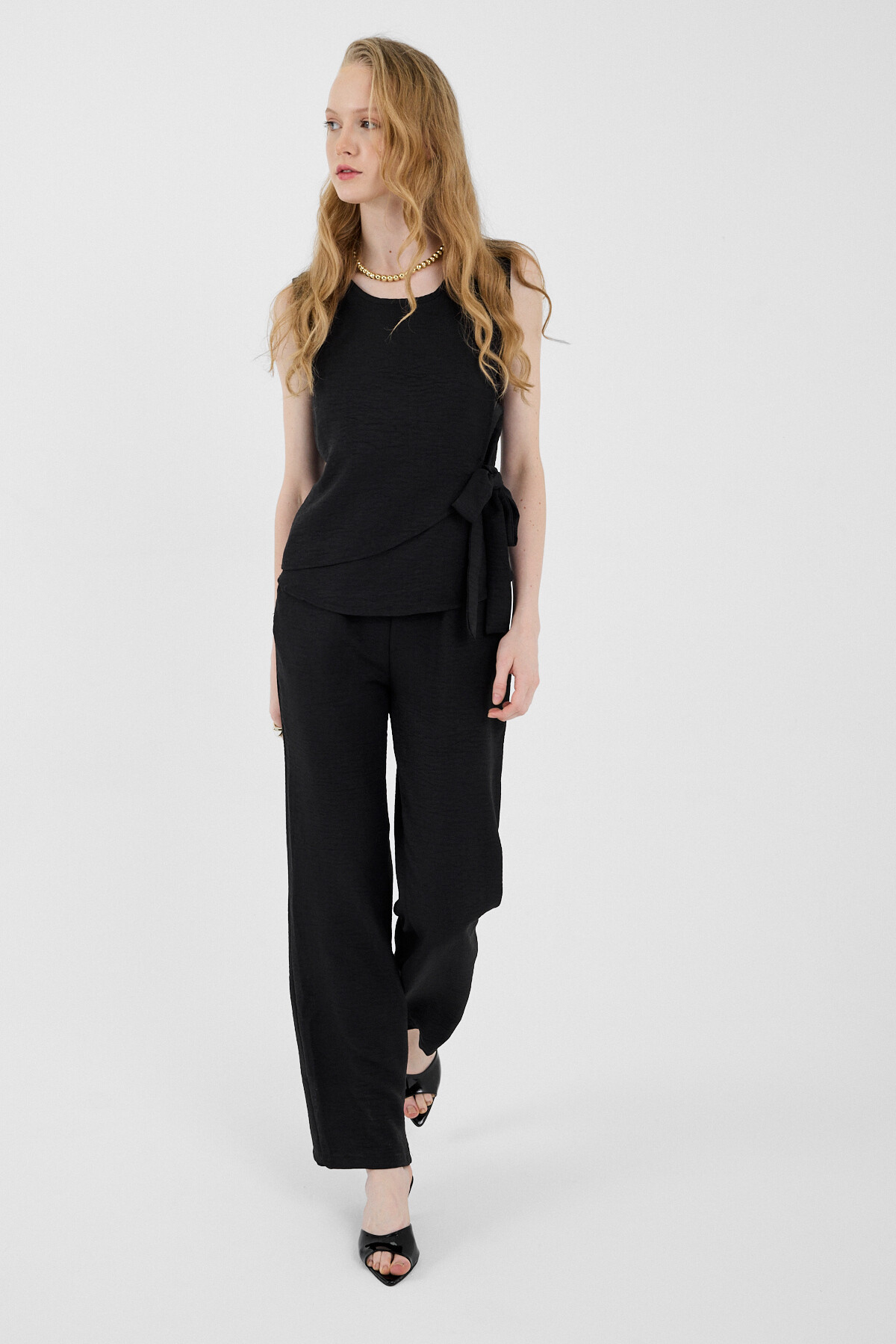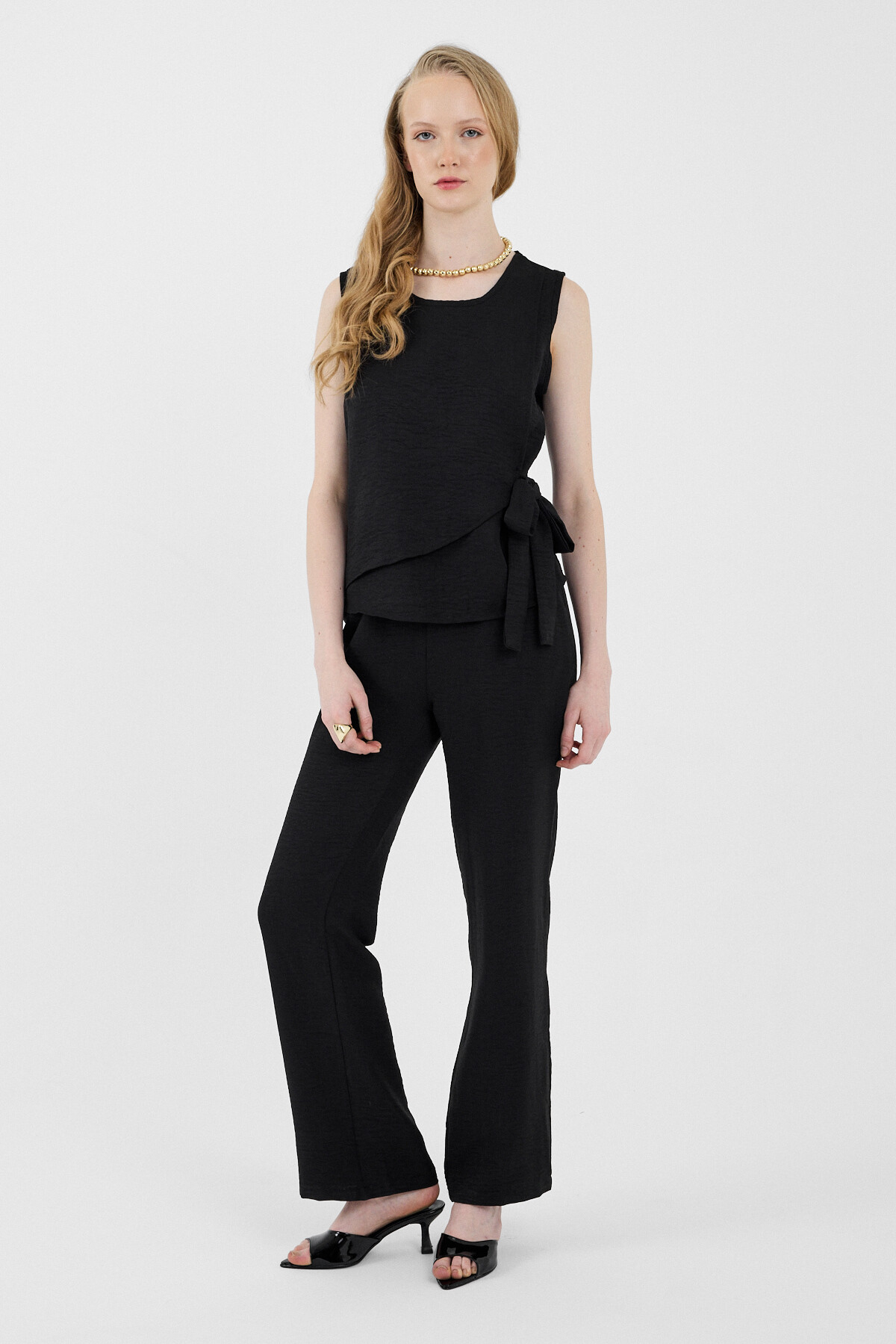 Siyah Pamuklu Yan Bağlama Detaylı İkili Takım 8079A