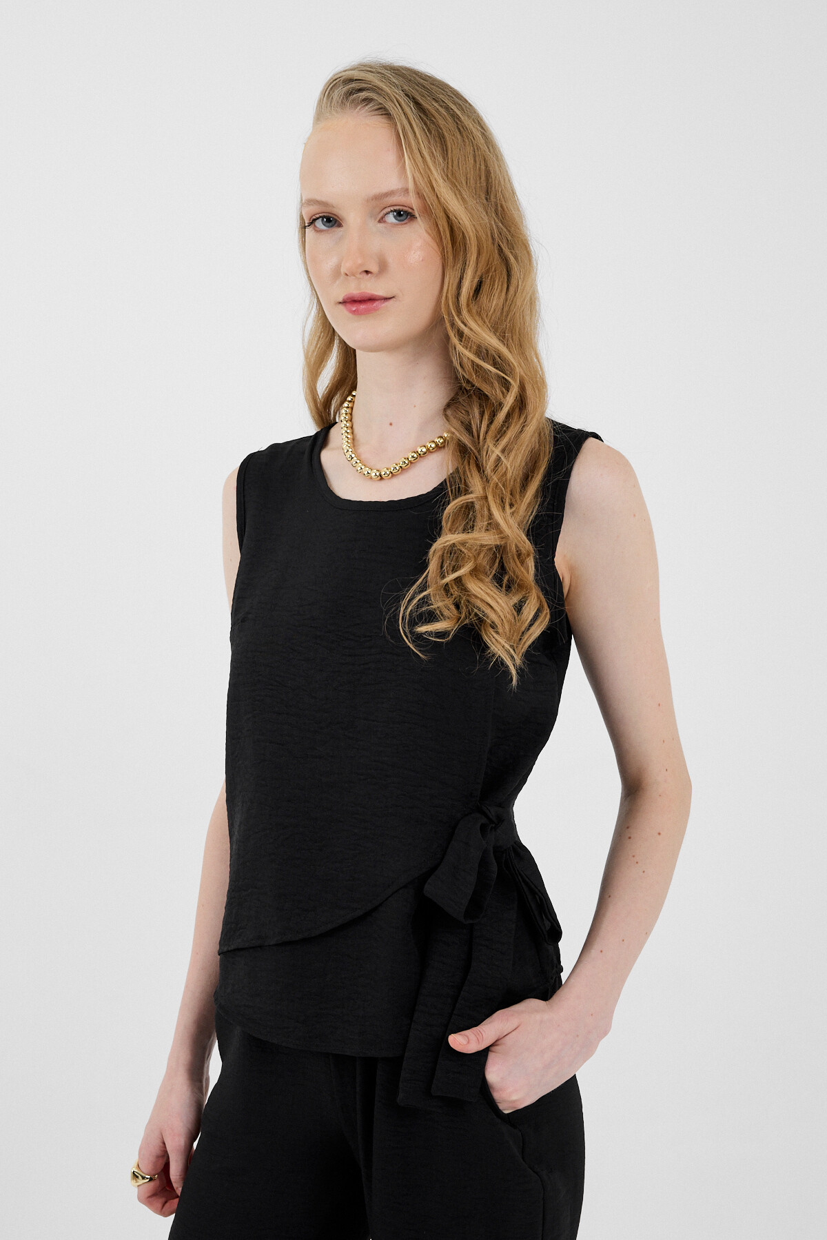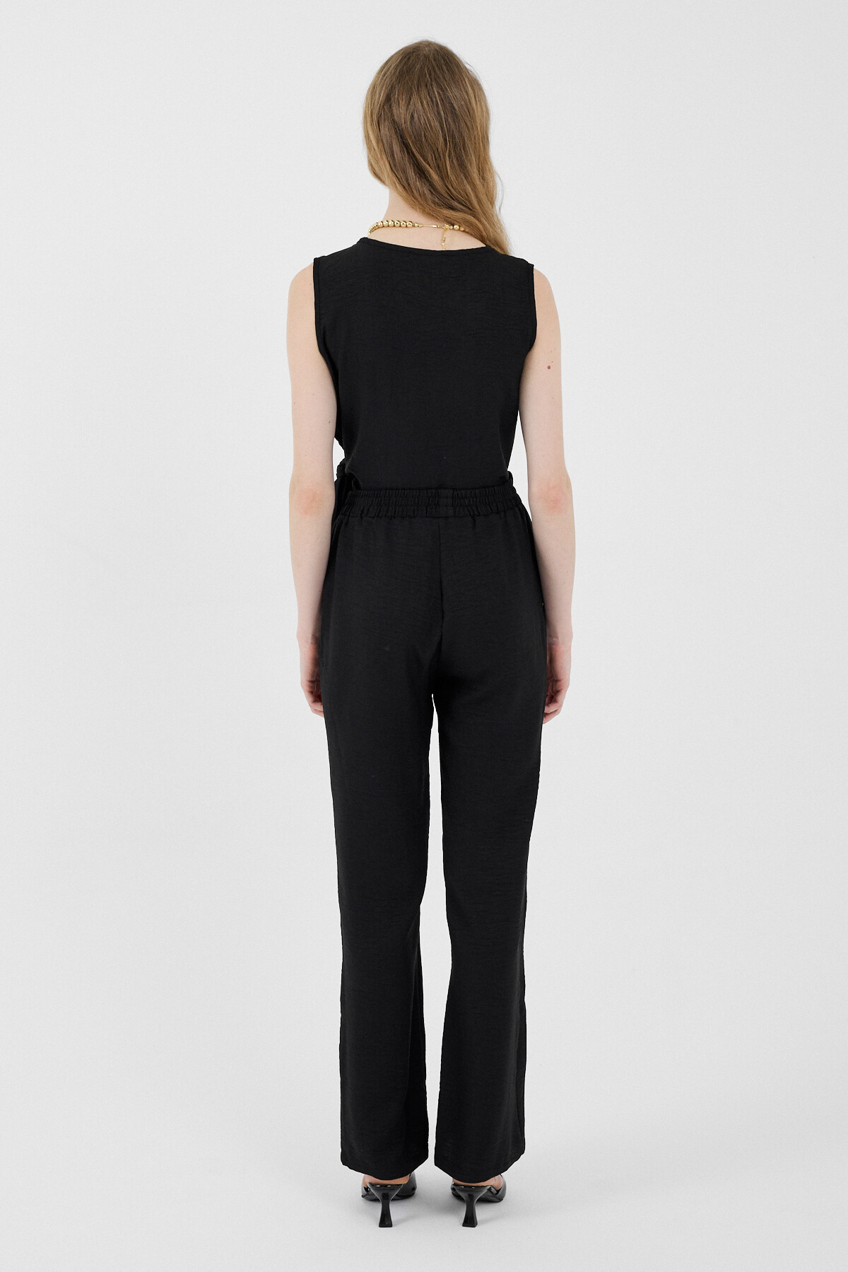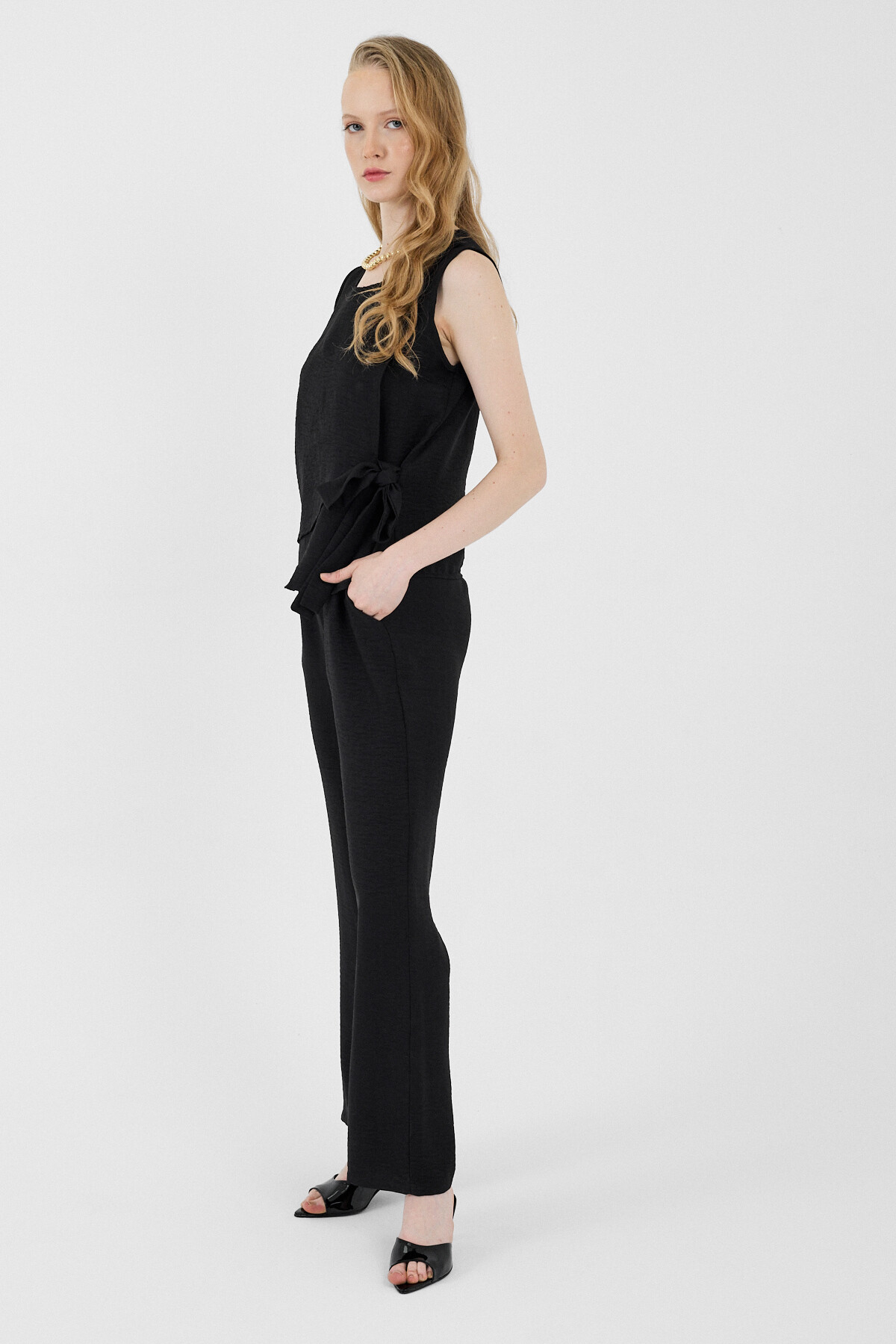 Siyah Pamuklu Yan Bağlama Detaylı İkili Takım 8079A
