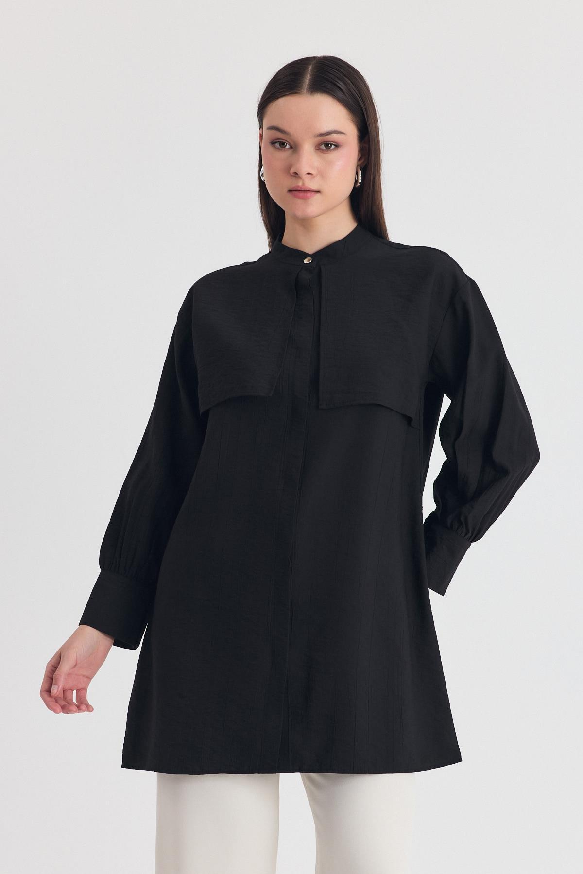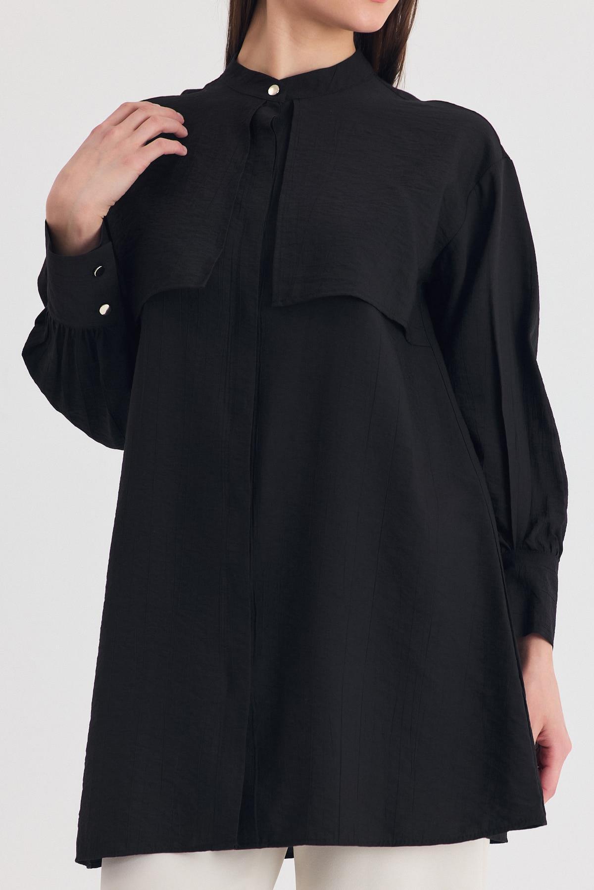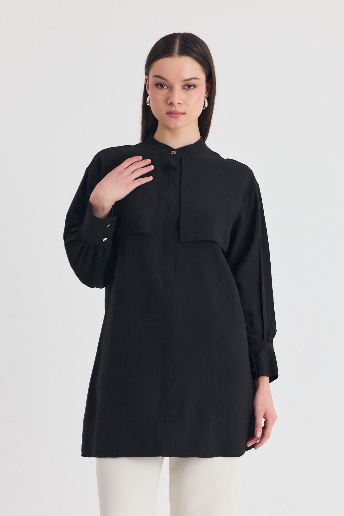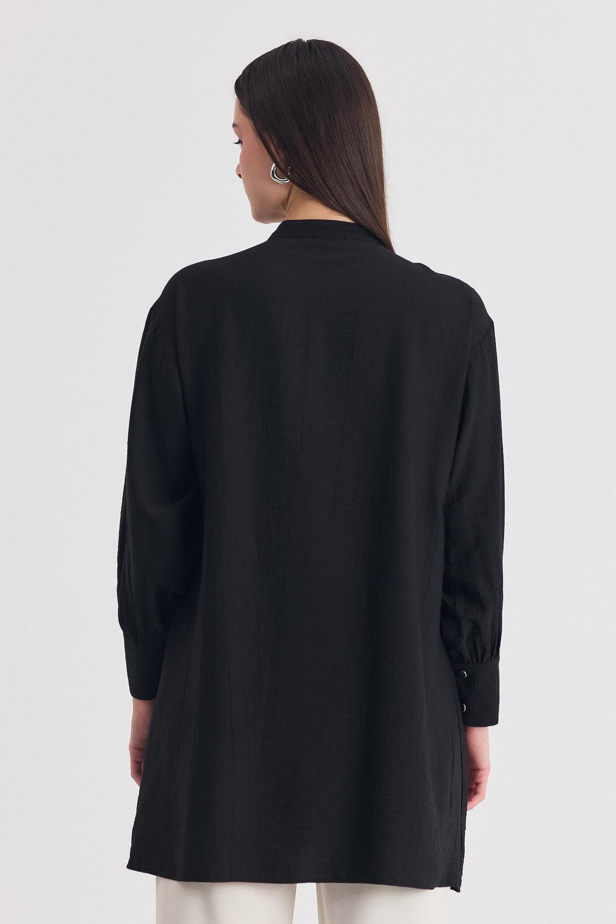 Siyah Parça Detaylı İp Bağcıklı Gömlek 4553A