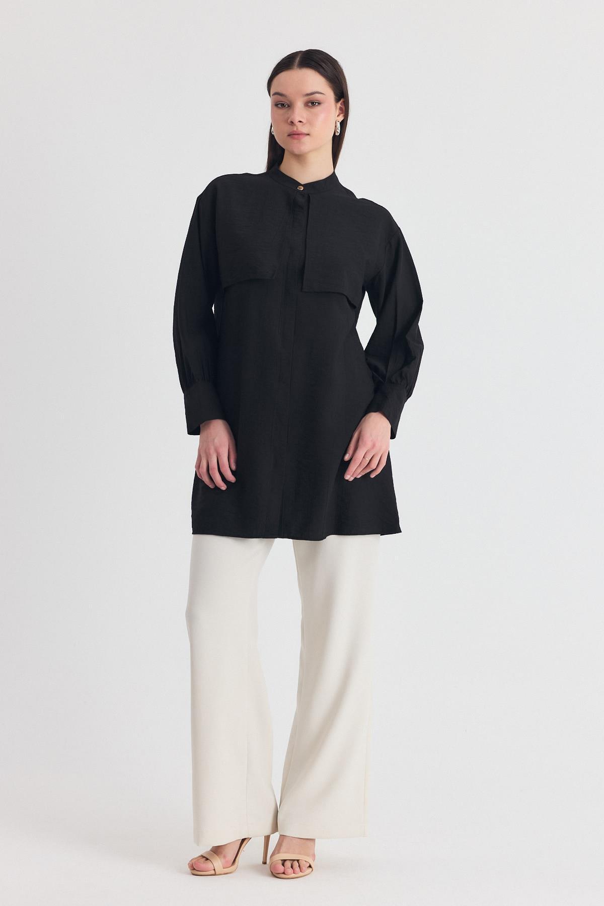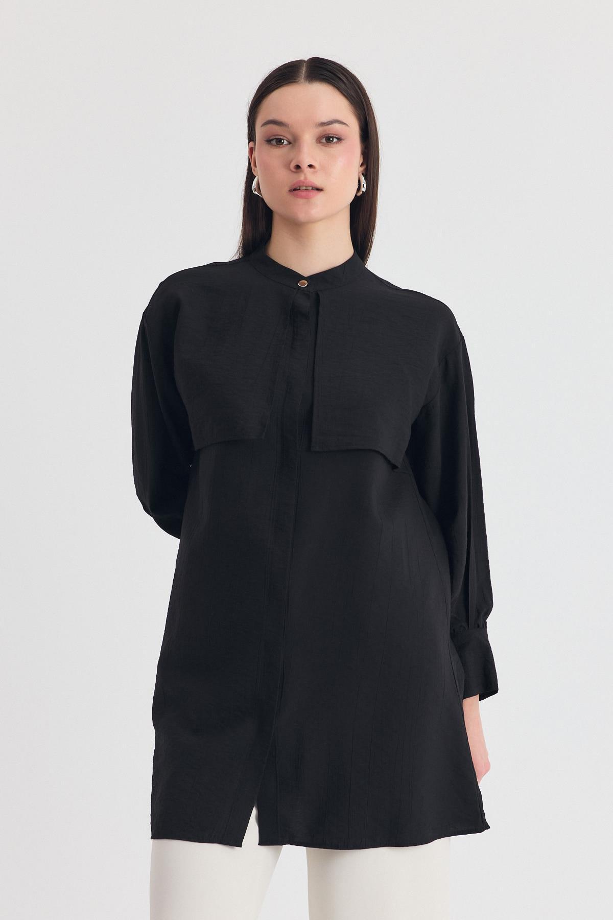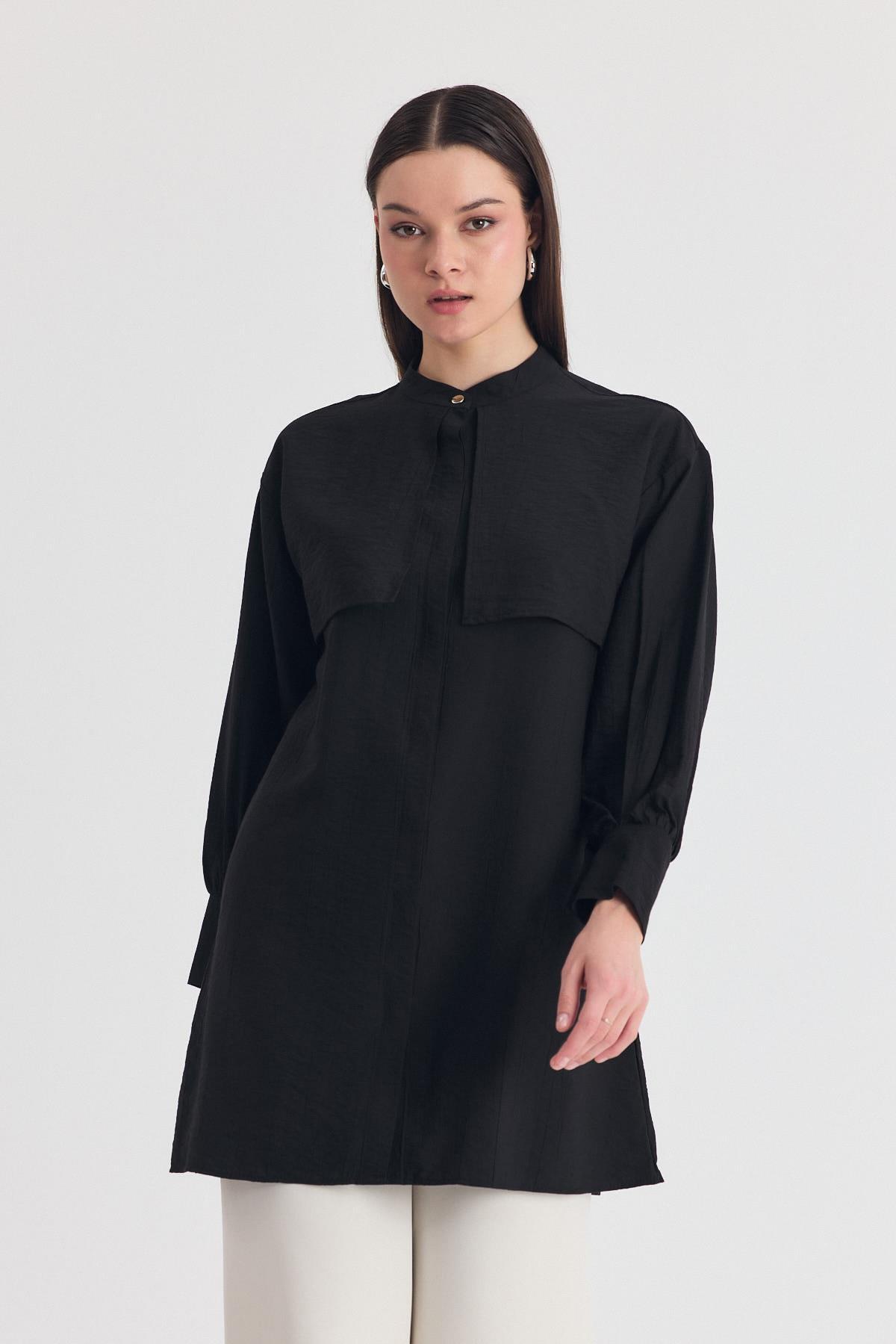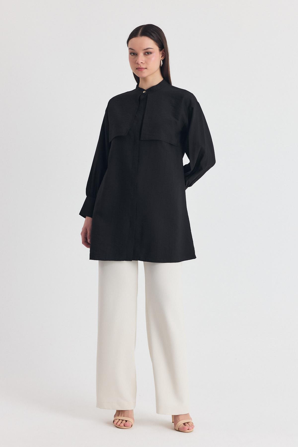 Siyah Parça Detaylı İp Bağcıklı Gömlek 4553A