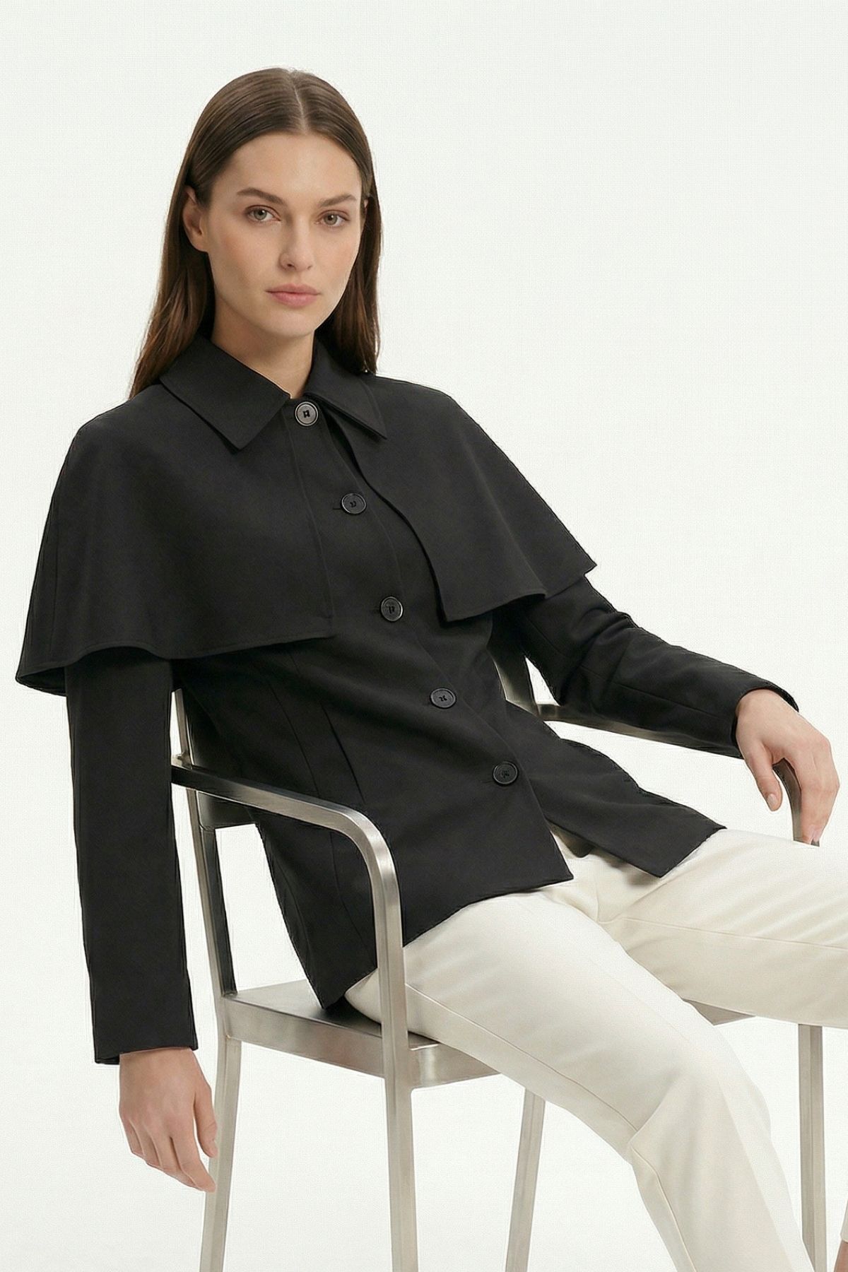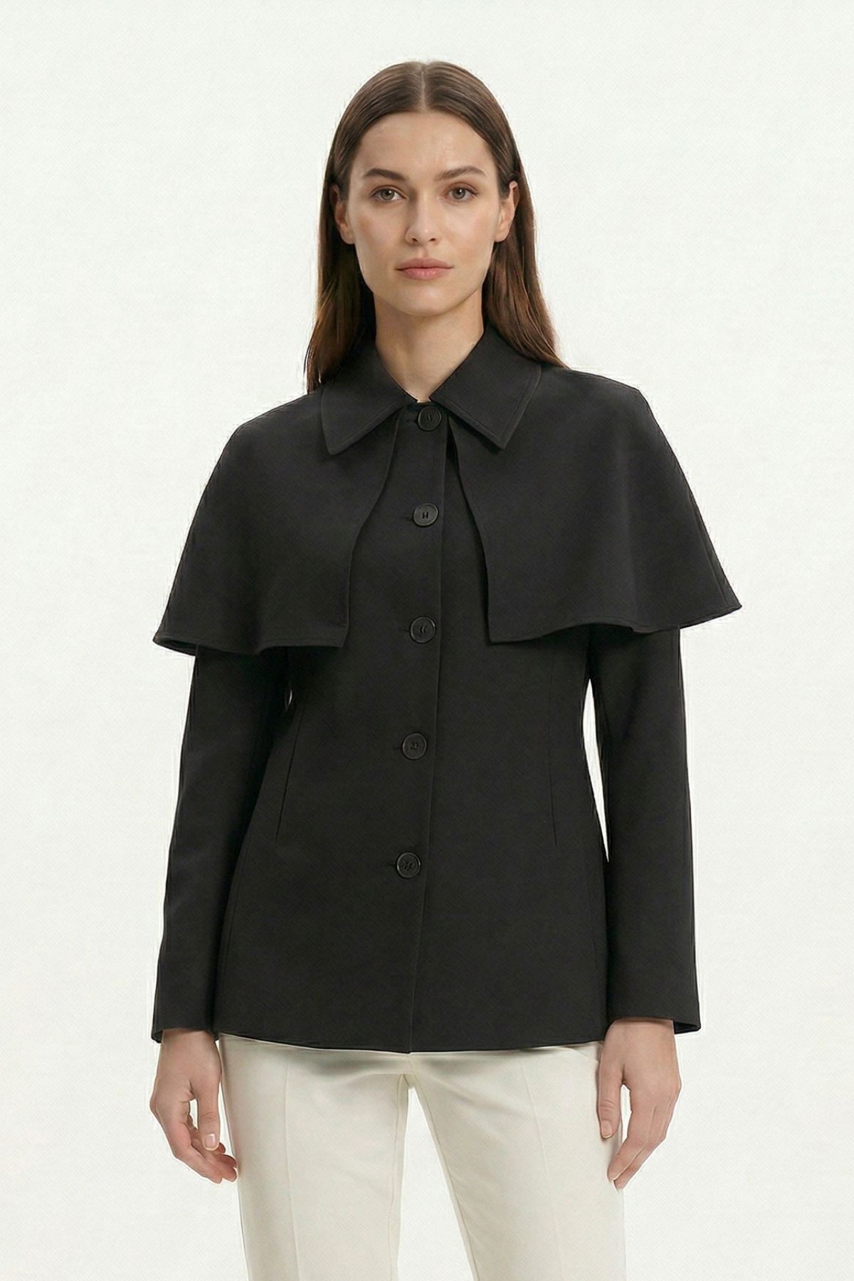 7687 Pelerin Detay Düğmeli Ceket