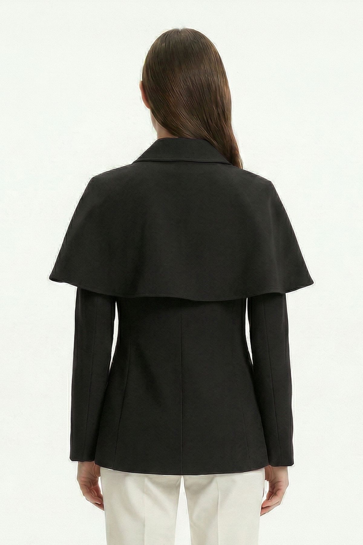 Siyah Pelerin Detay Düğmeli Ceket 7687