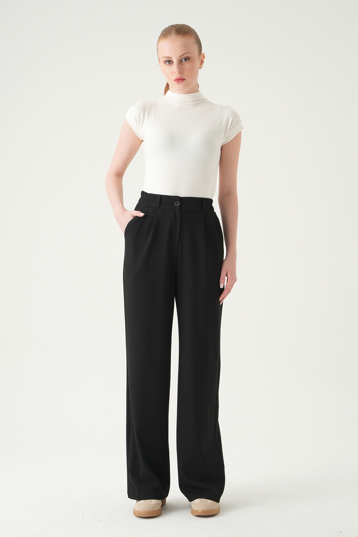 Siyah Kemer Detay Palazzo Pantolon 8421A - RAYS Siyah Kemer Detay Palazzo Pantolon 8421A - RAYS (1)
