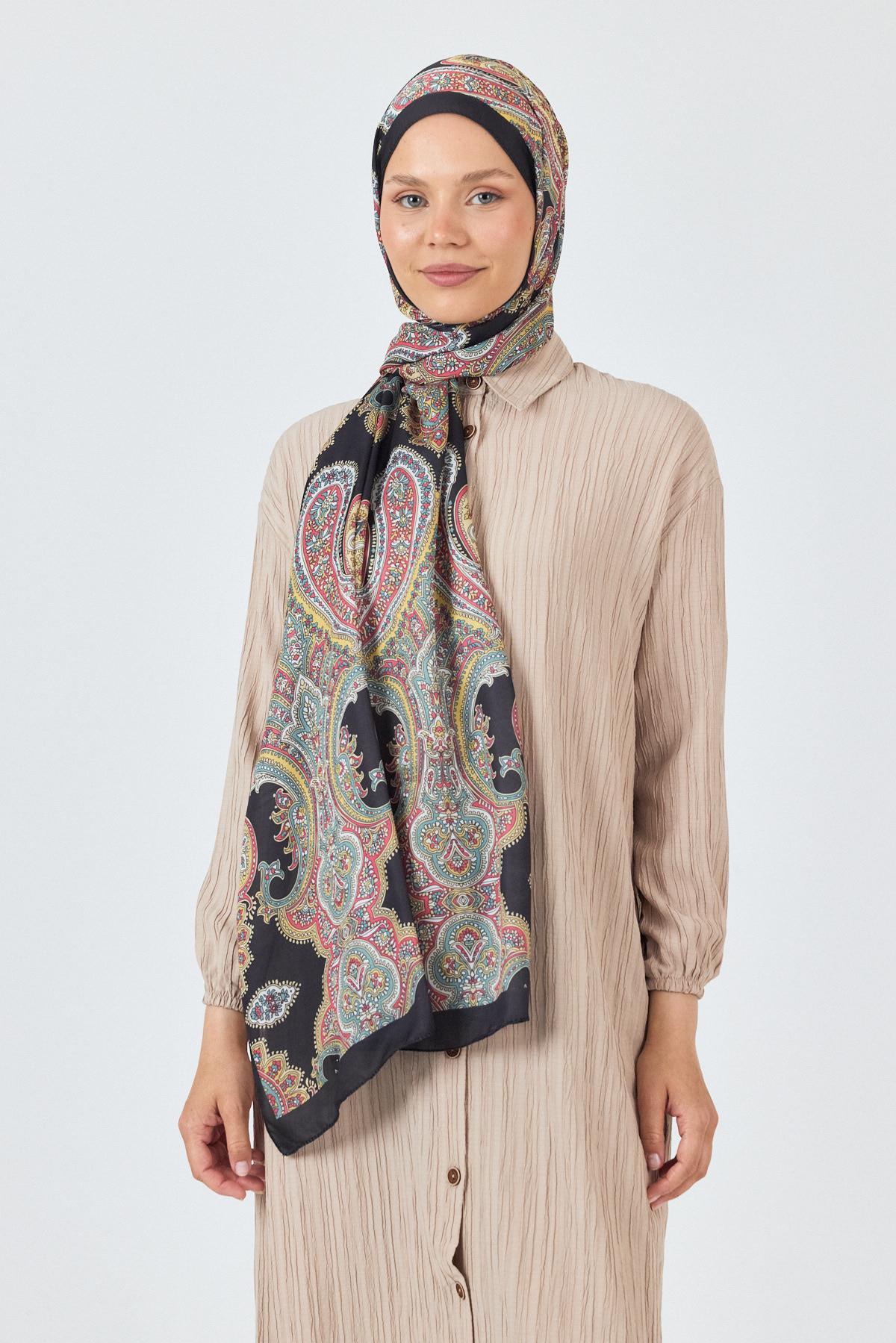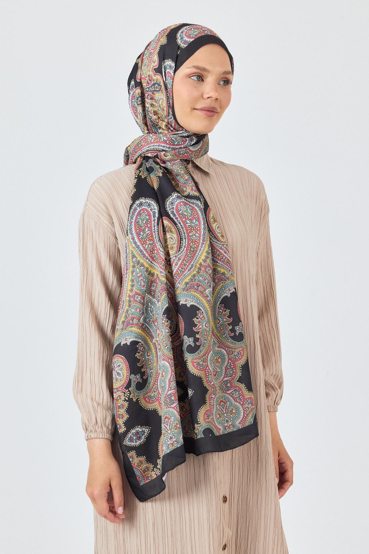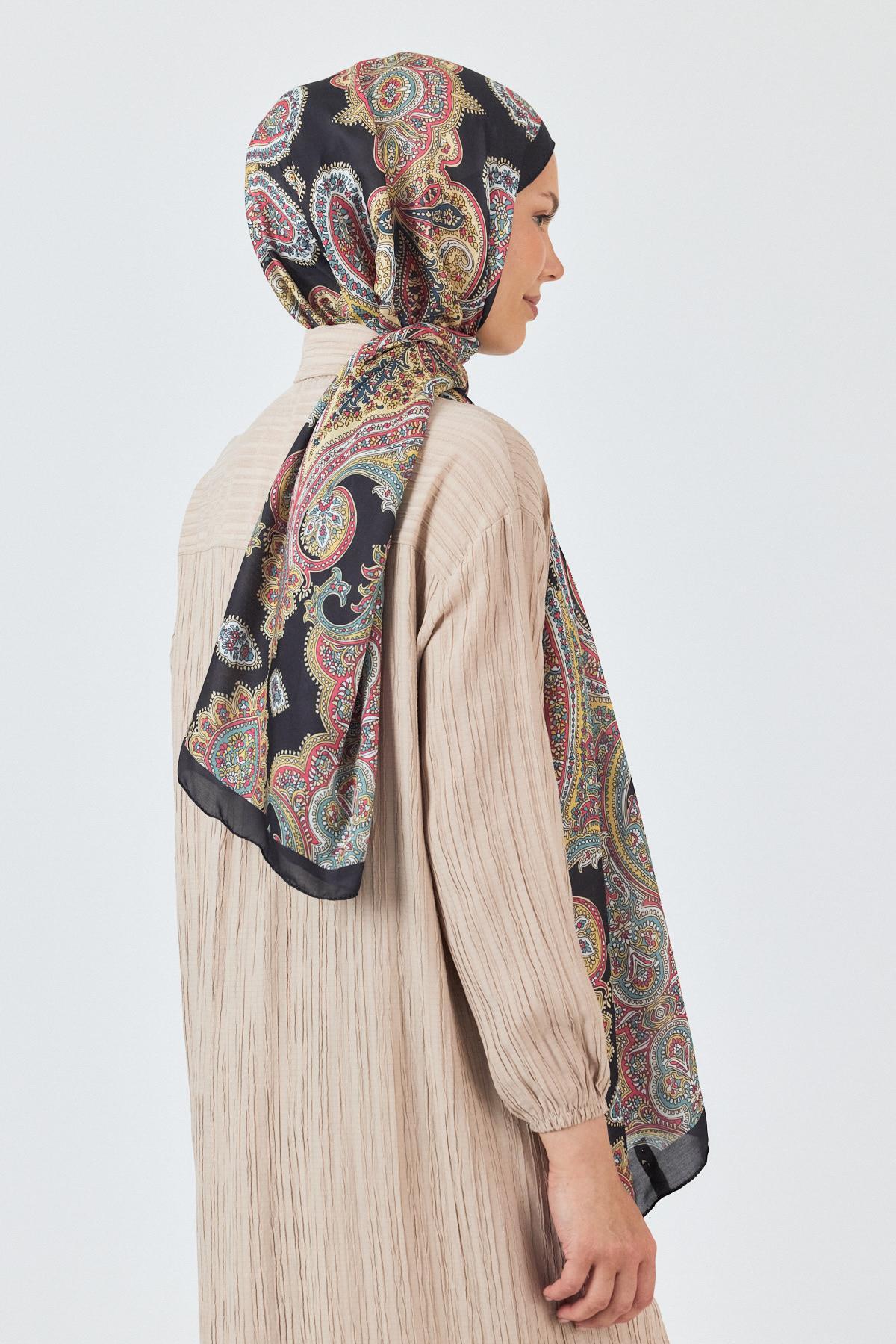 Siyah Retro Desenli Şal 4002