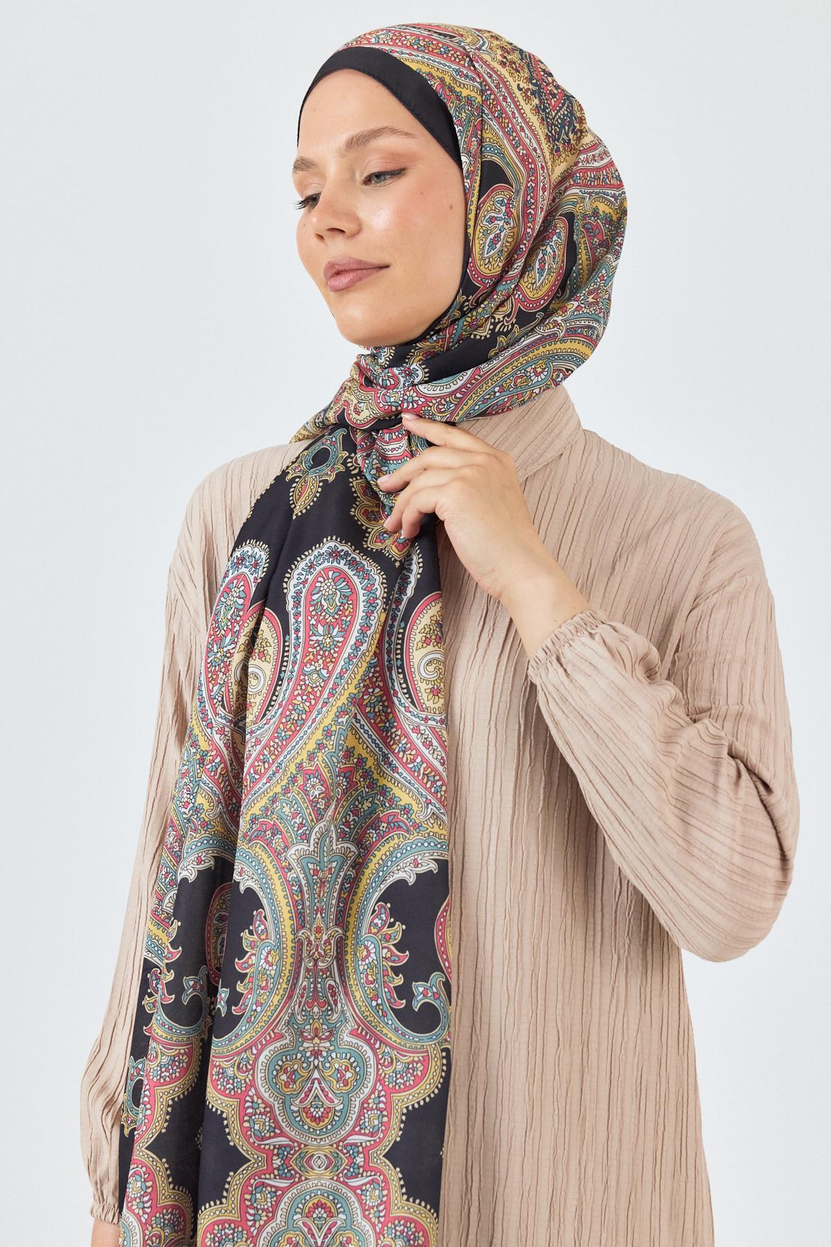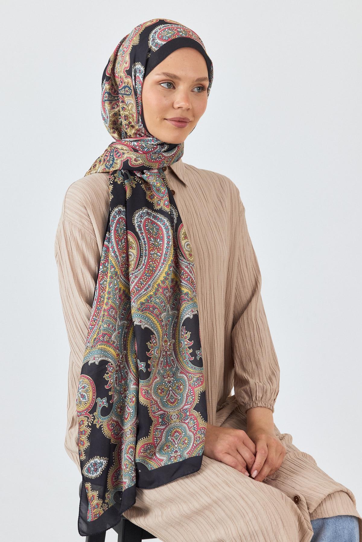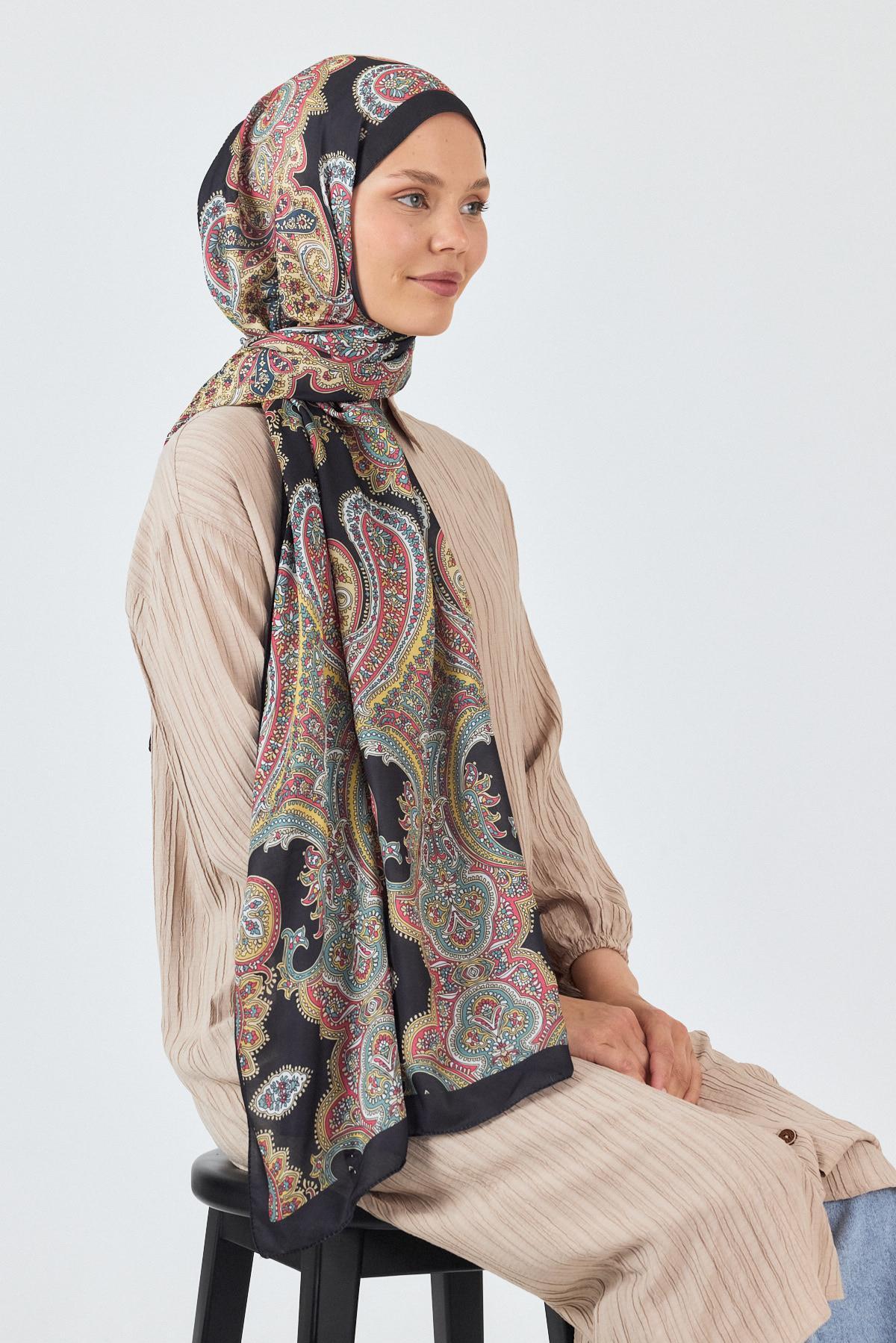 Siyah Retro Desenli Şal 4002
