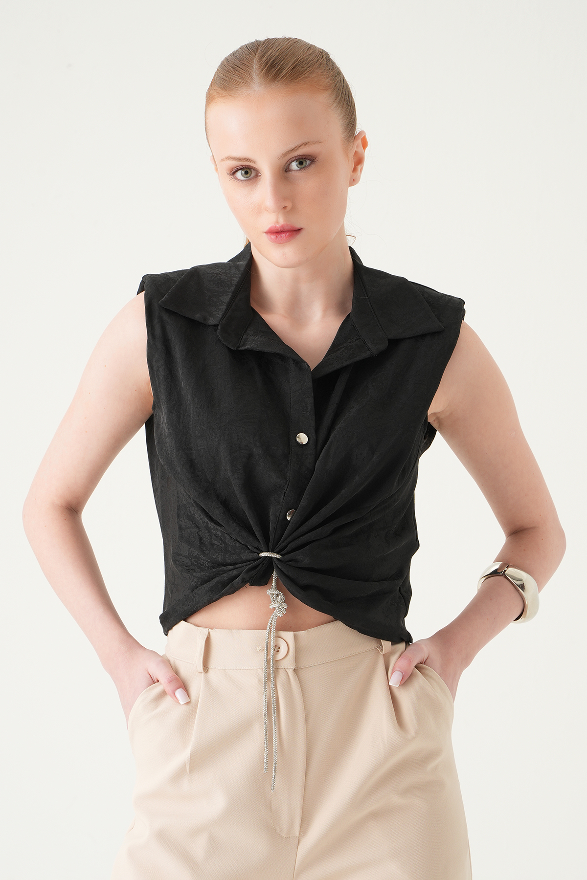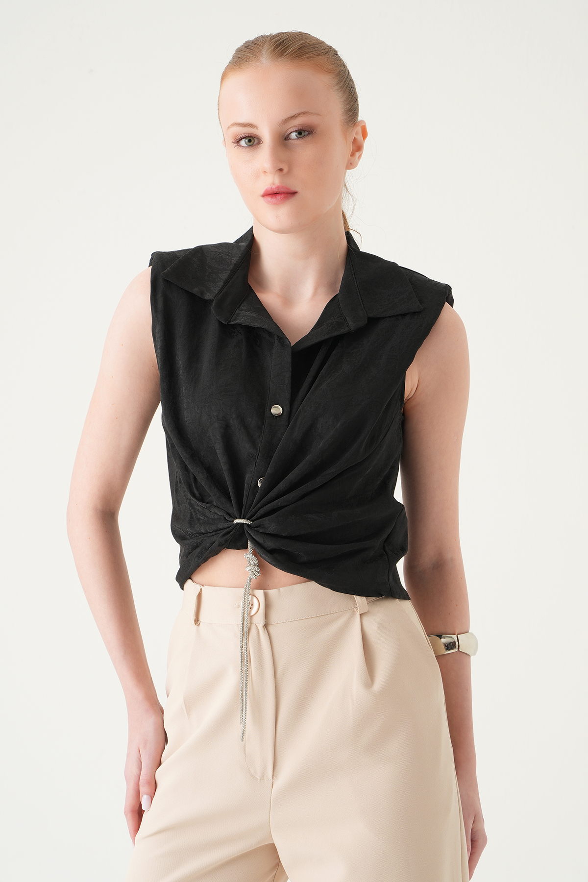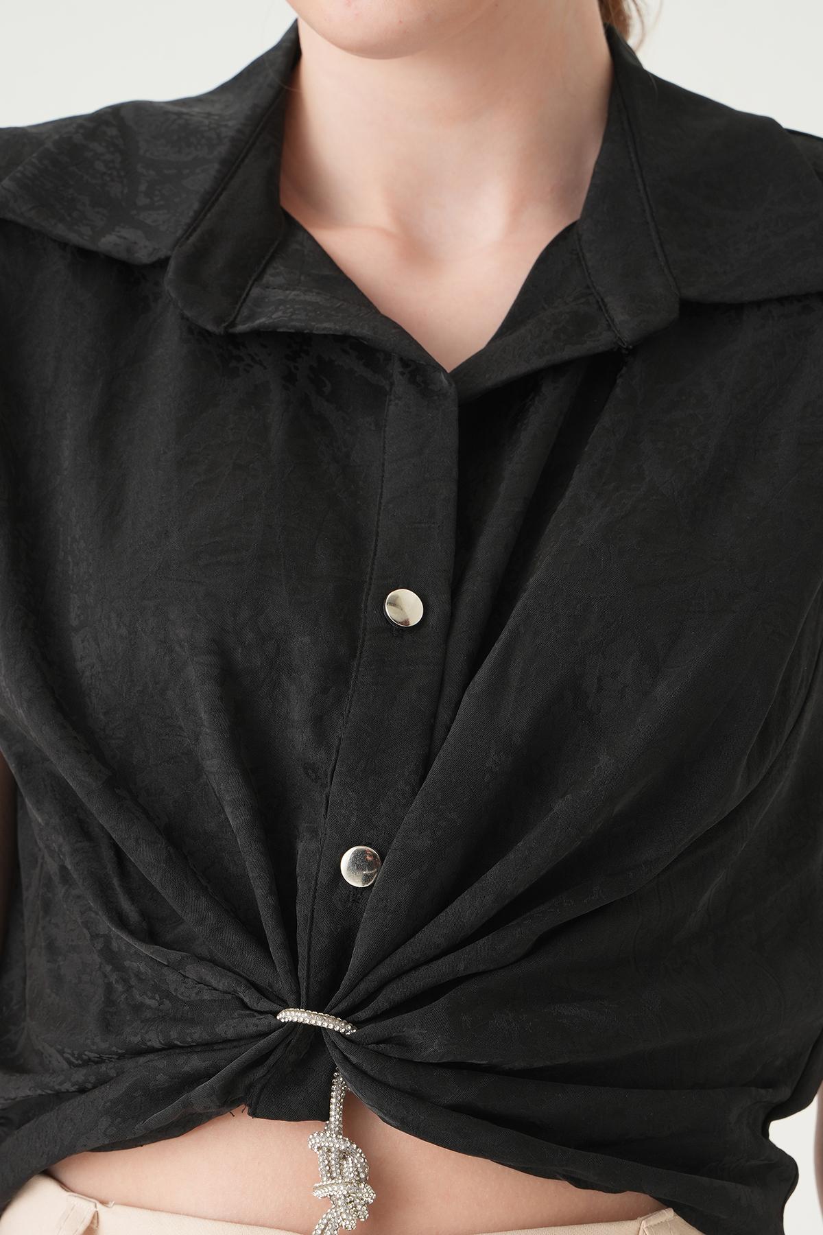 Siyah Sıfır Kol Bağlamalı Gömlek 251166