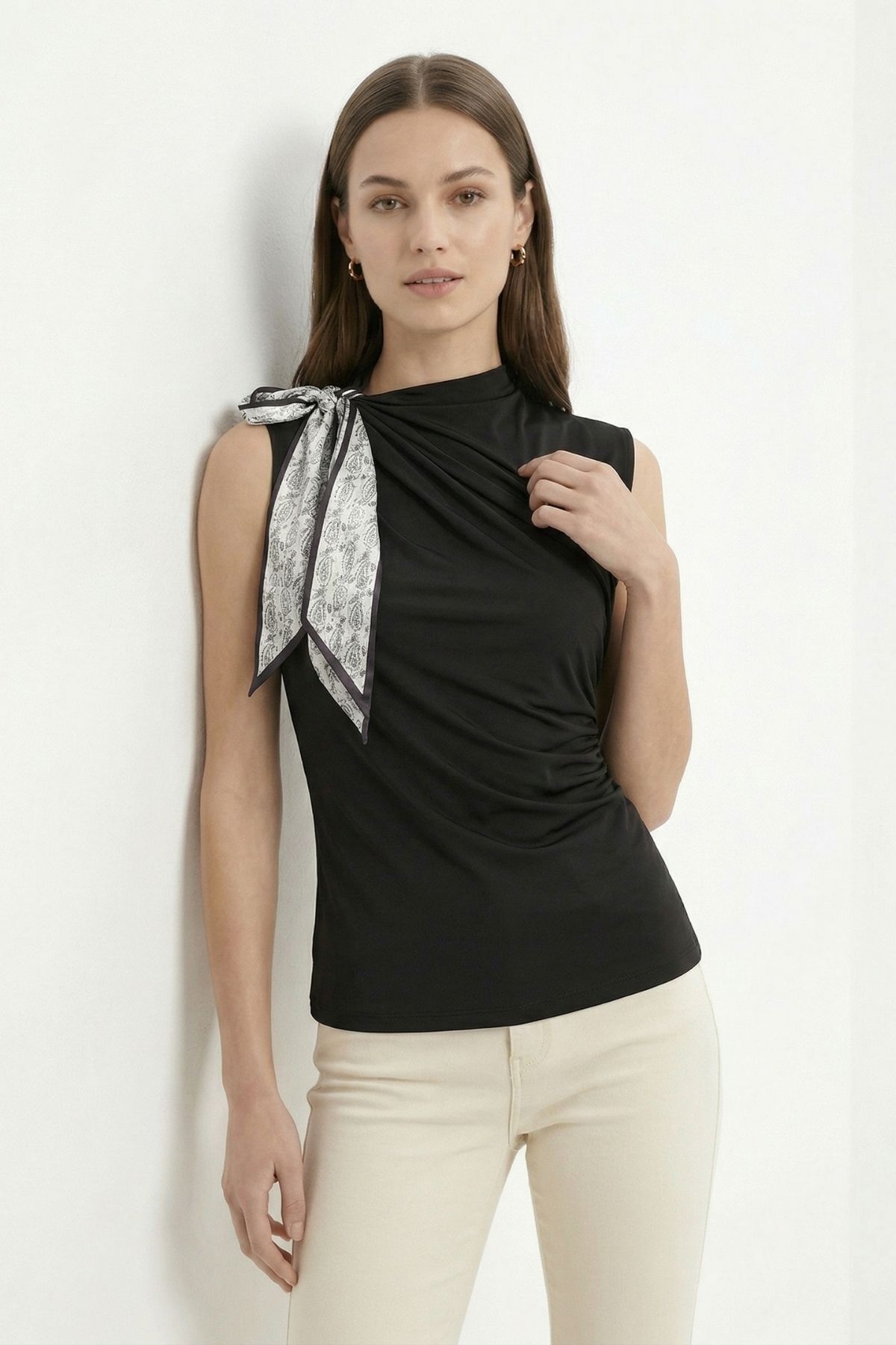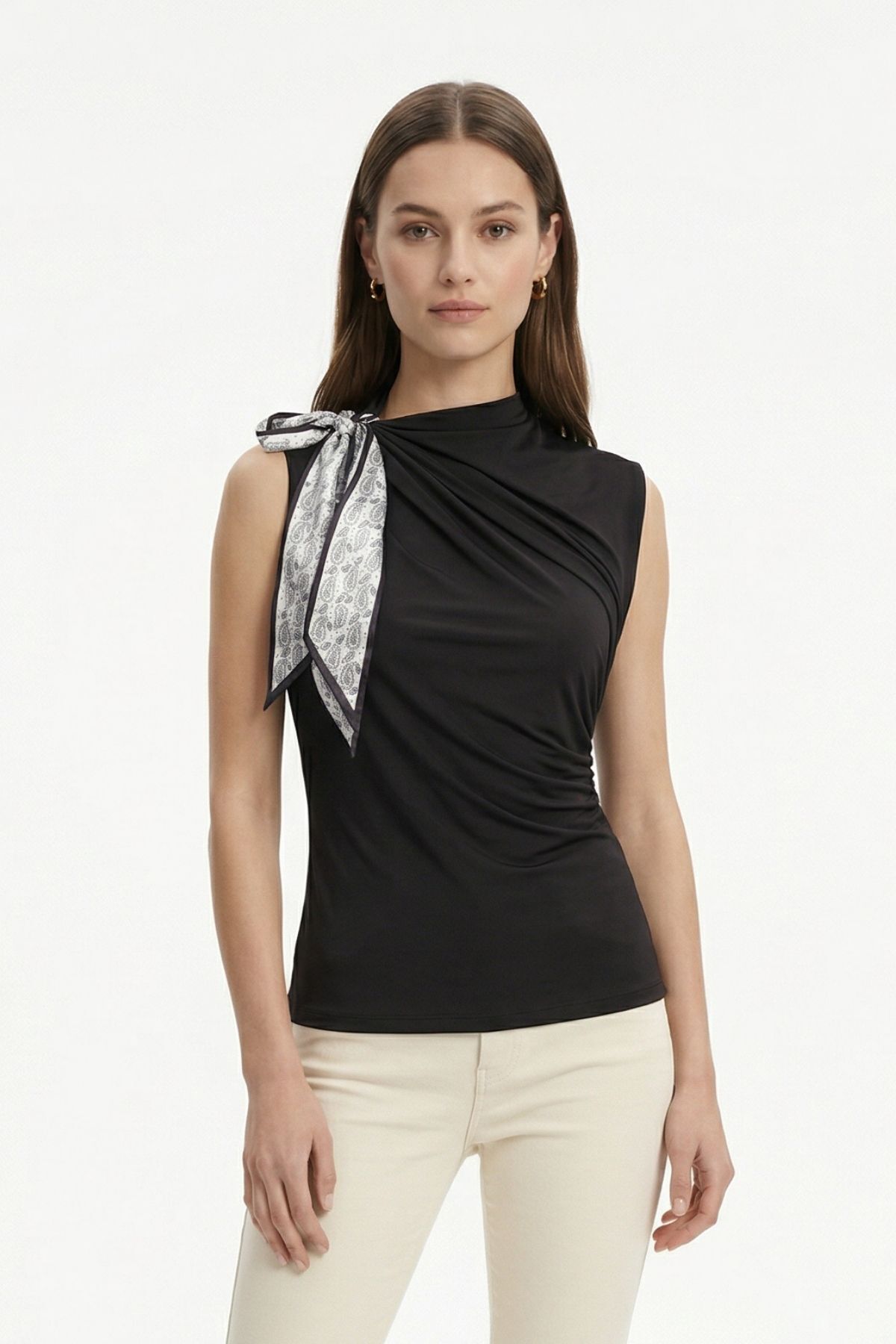 Siyah Sıfır Kol Drapeli Fularlı Bluz 261137
