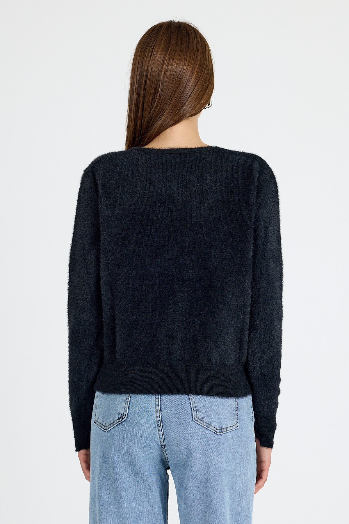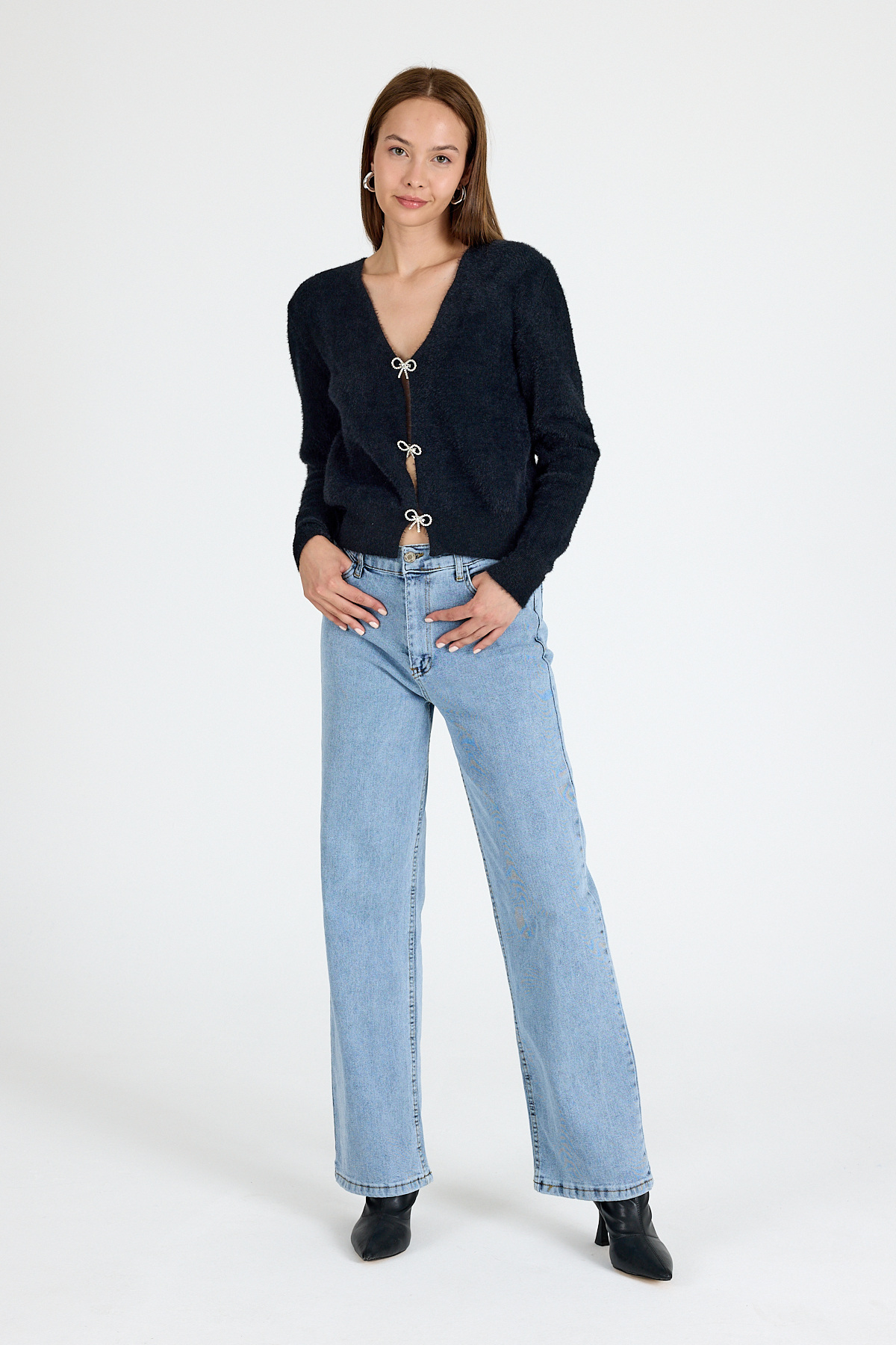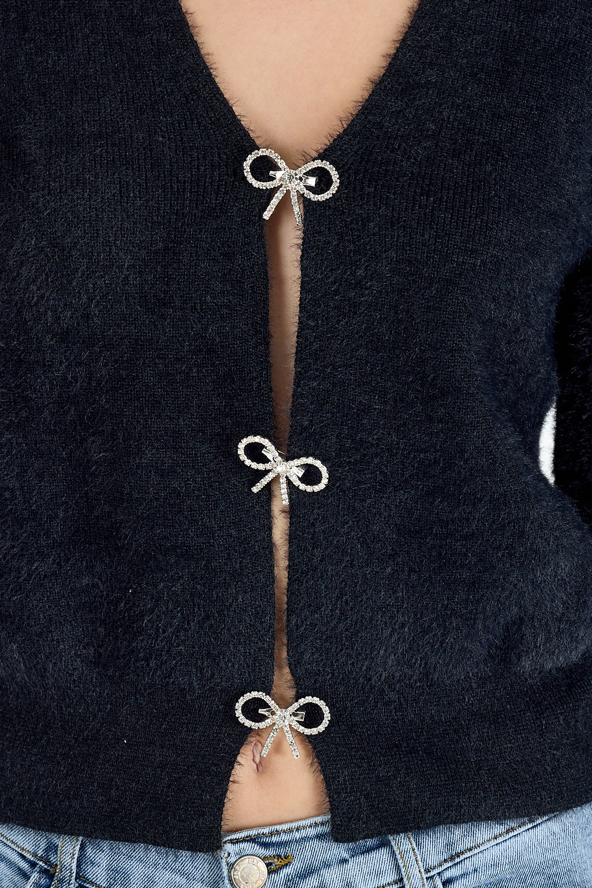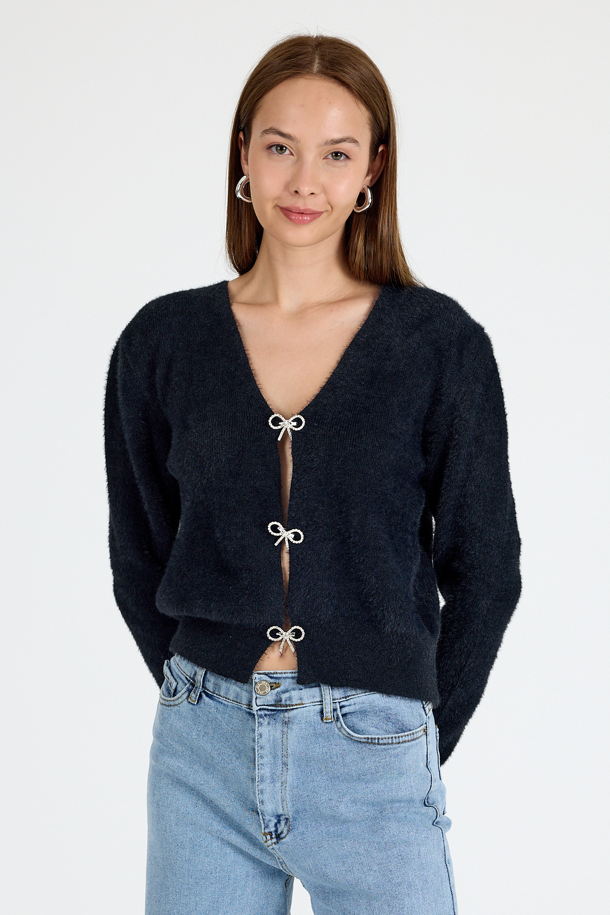 Siyah Taşlı Fiyonk Düğmeli Kadın Triko Hırka 6803