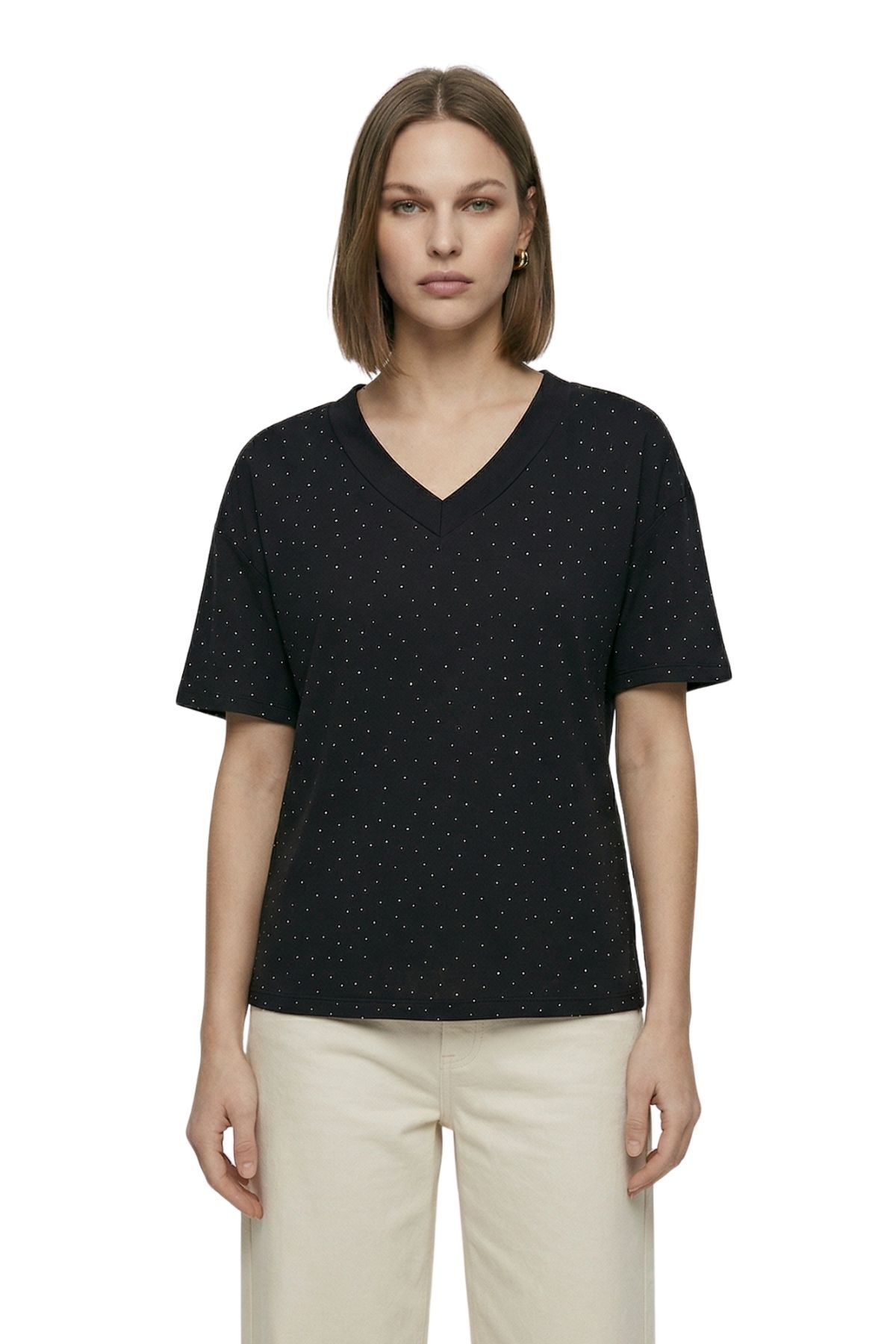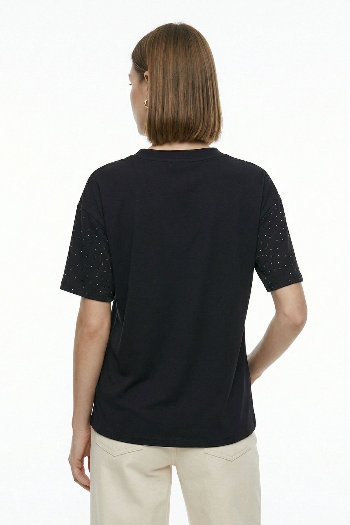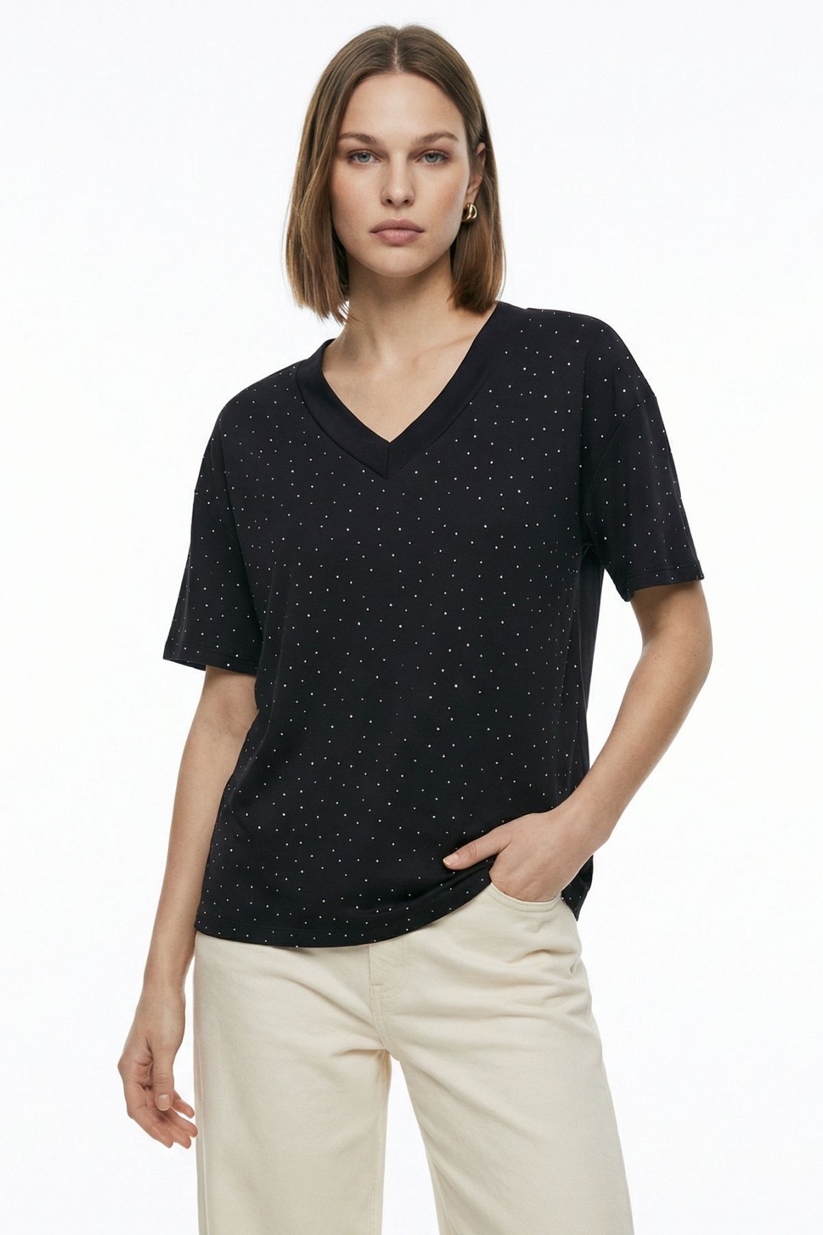 Siyah Taşlı V Yaka Kısa Kol Tişört 1761