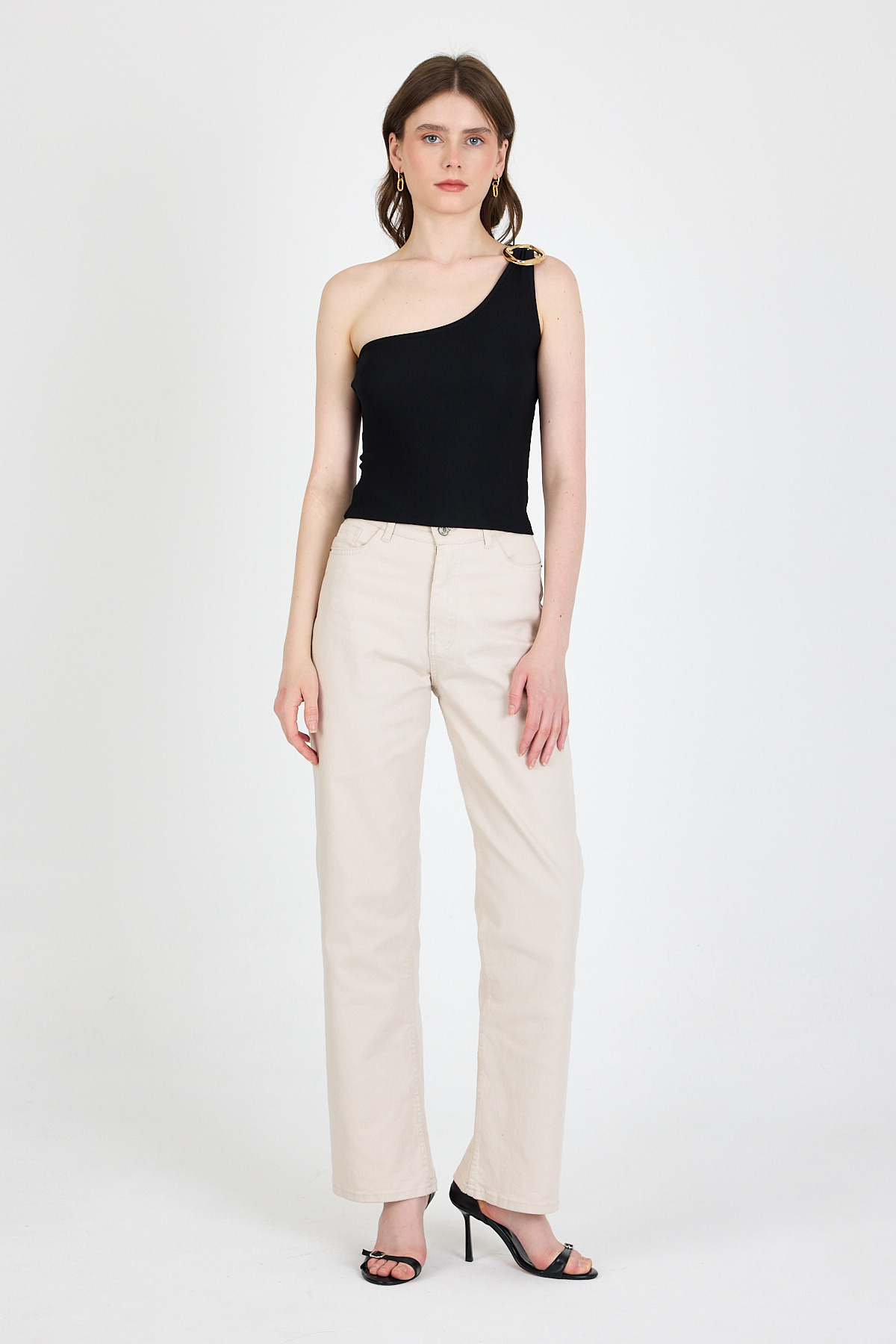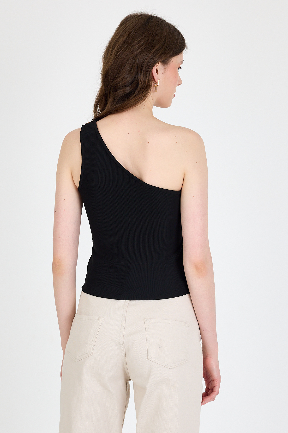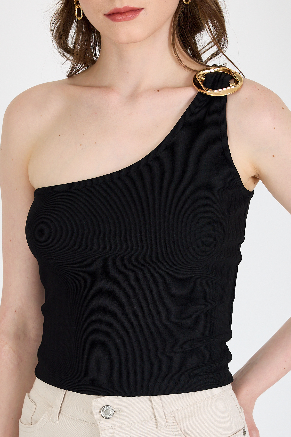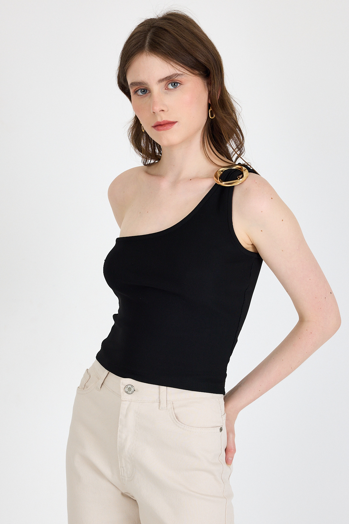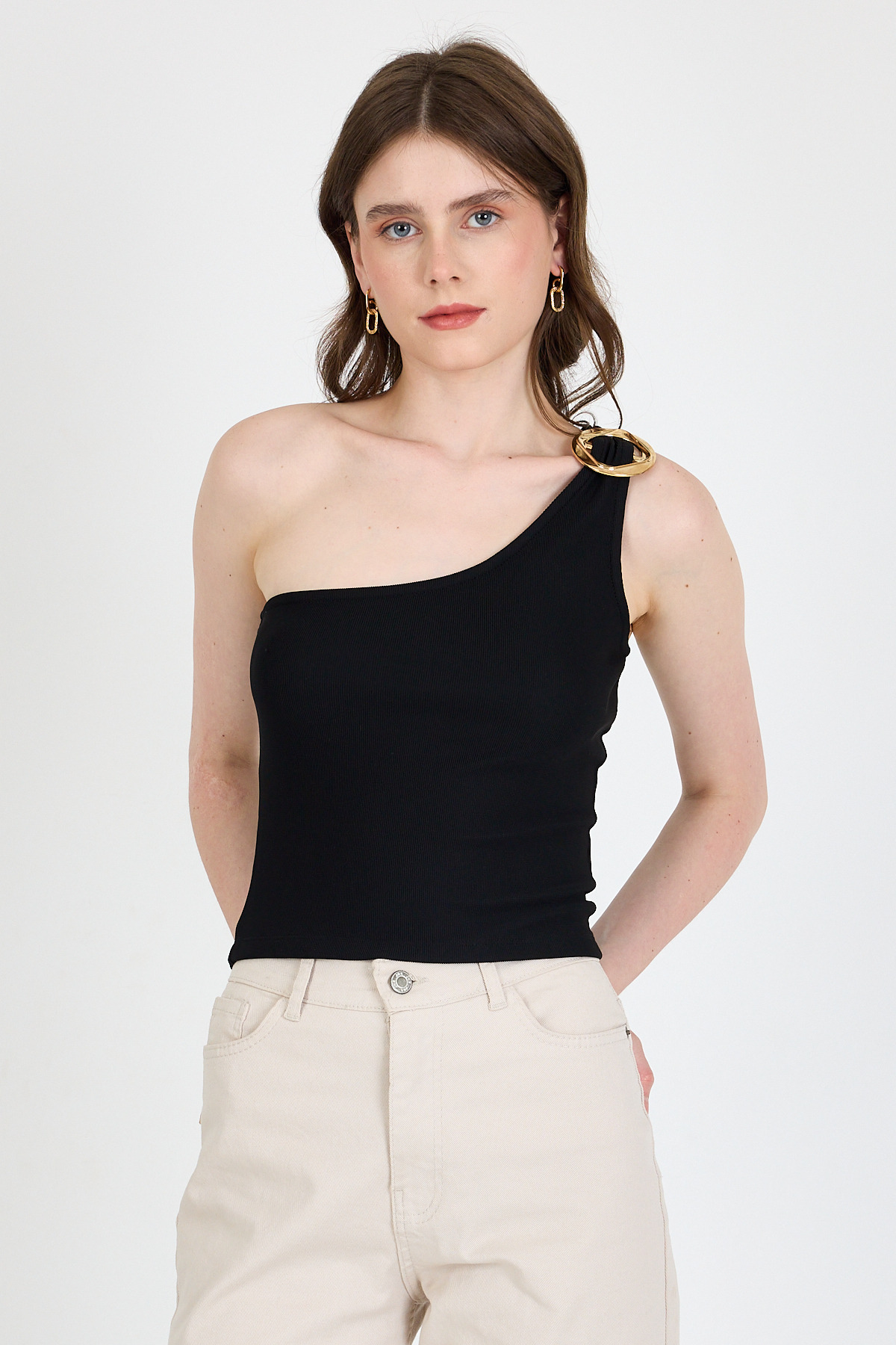 Siyah Toka Detaylı Tek Omuz Bluz 1649