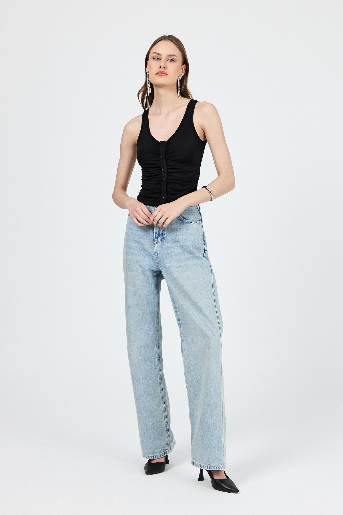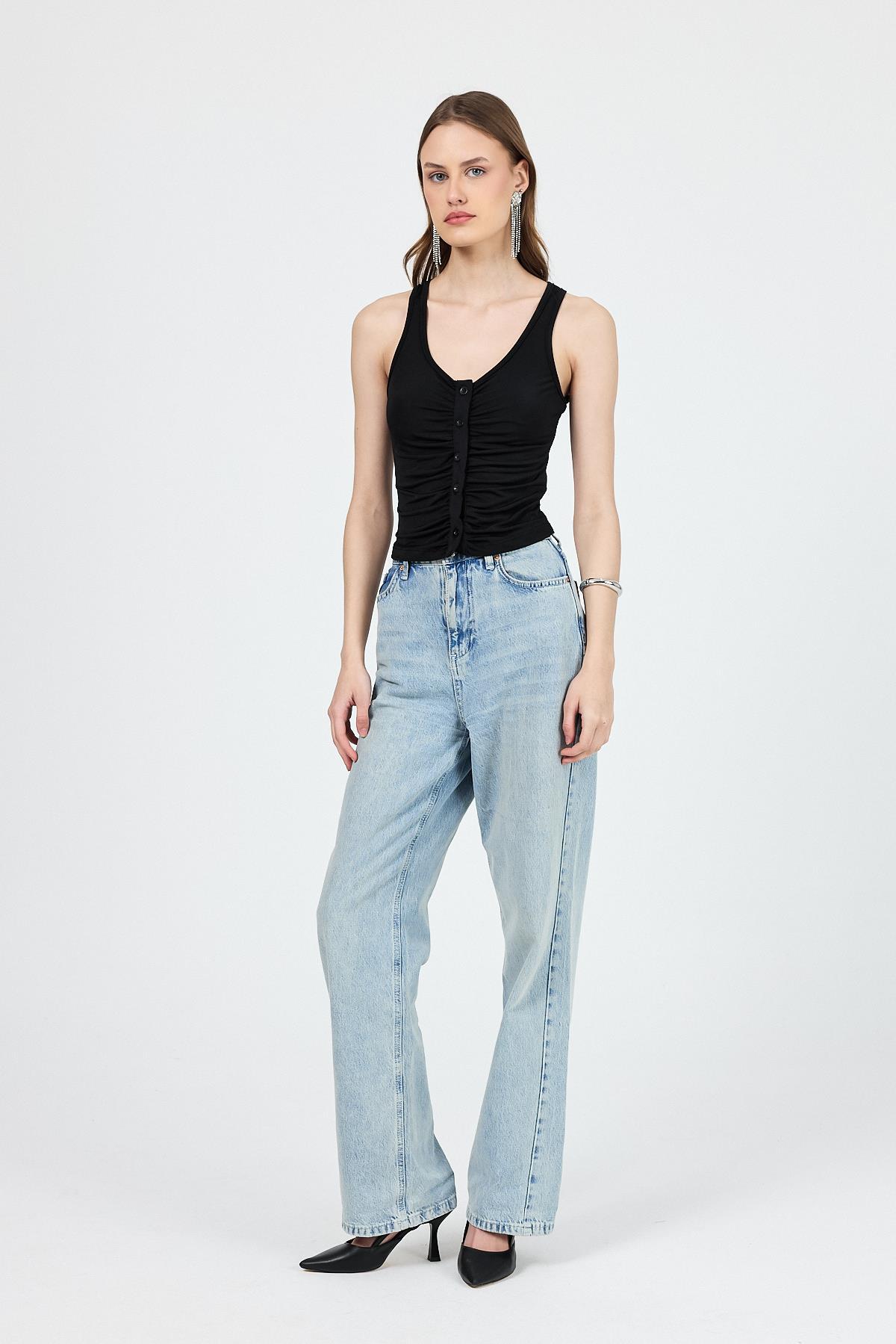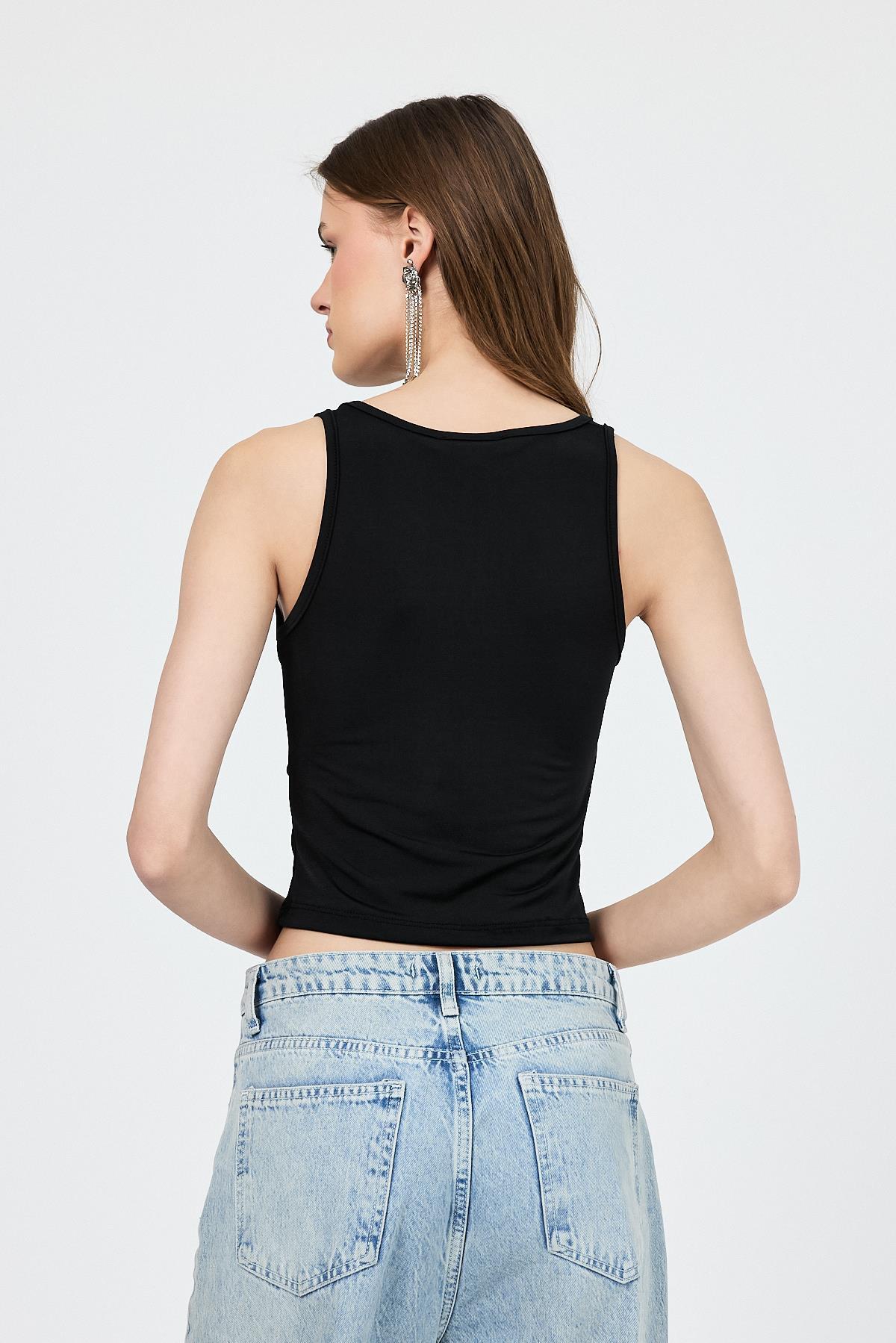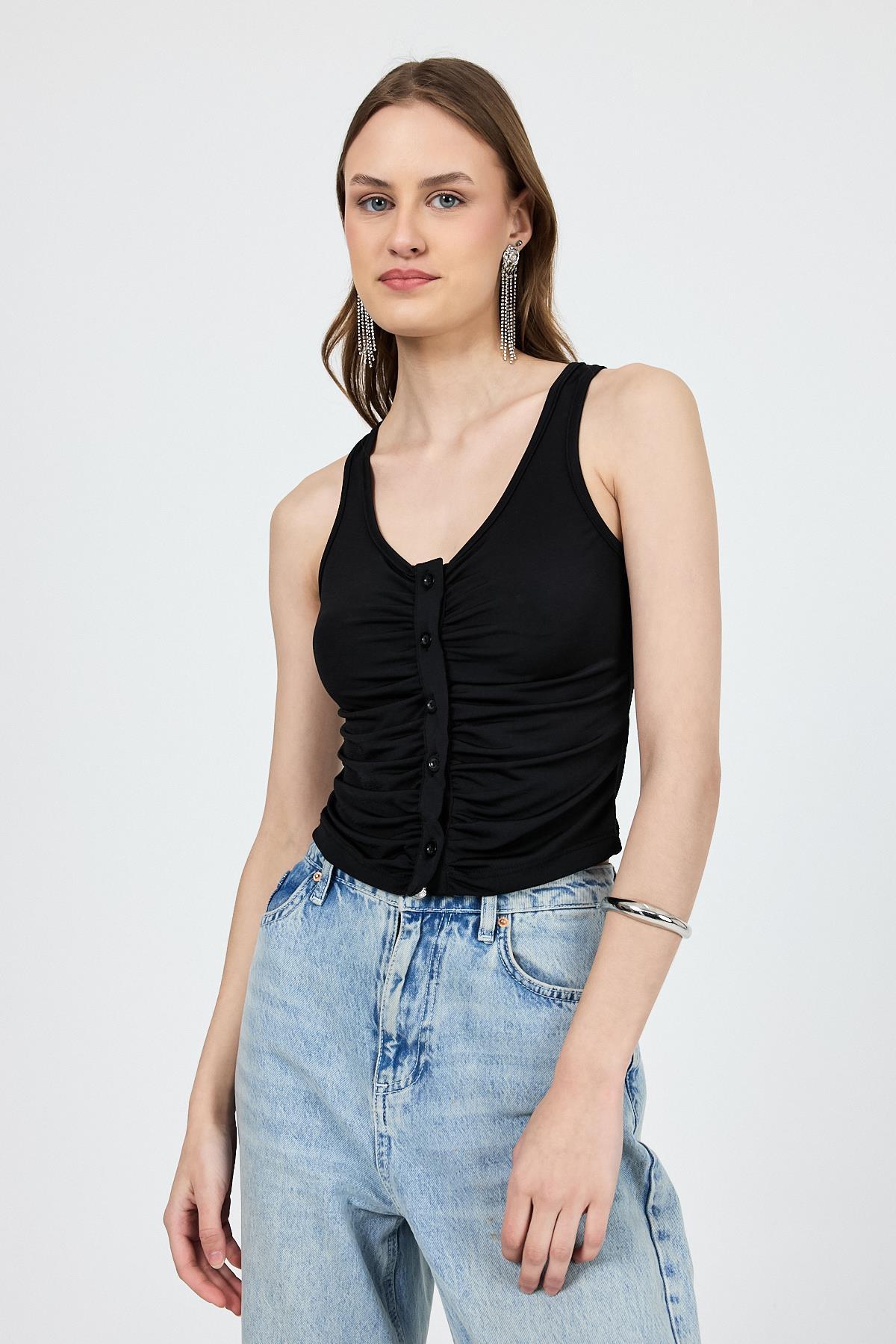 Siyah U Yaka Büzgülü Düğmeli Atlet 13298