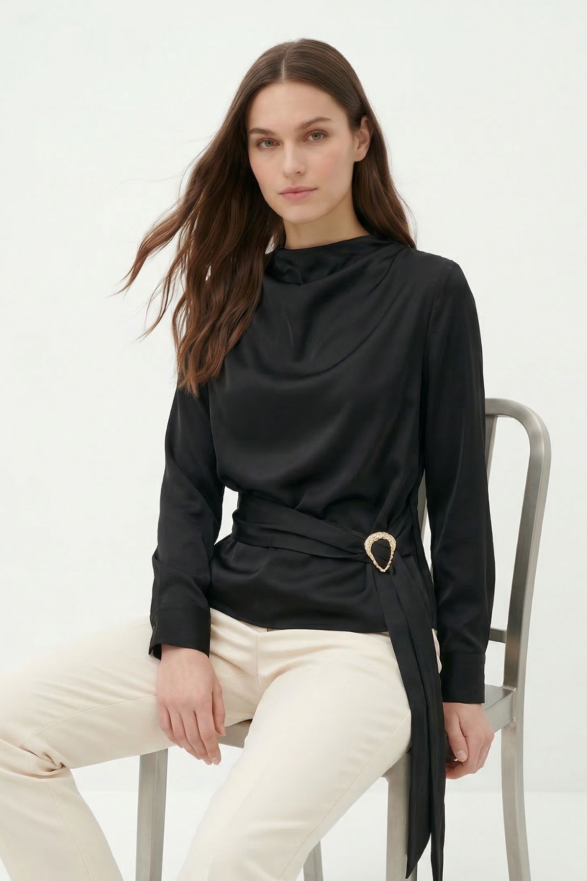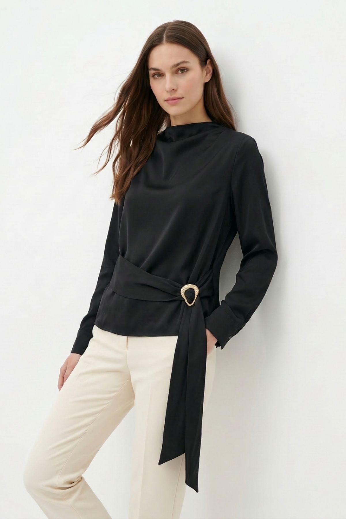 261109 Uzun Kol Bel Detay Bluz
