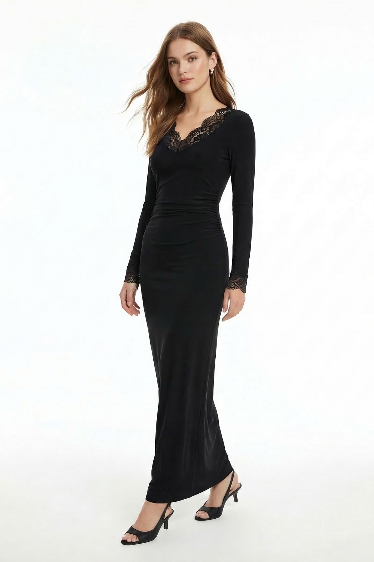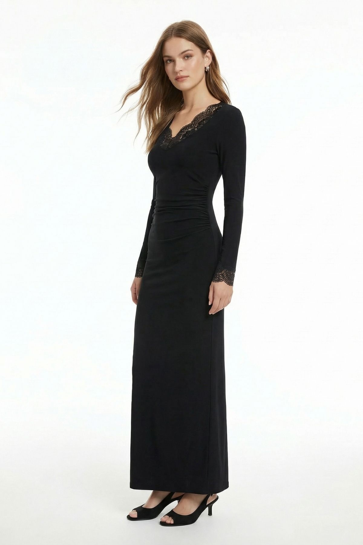 Siyah Etek Dantelli Uzun Kol Elbise 261634 - RAYS Siyah Etek Dantelli Uzun Kol Elbise 261634 - RAYS (1)