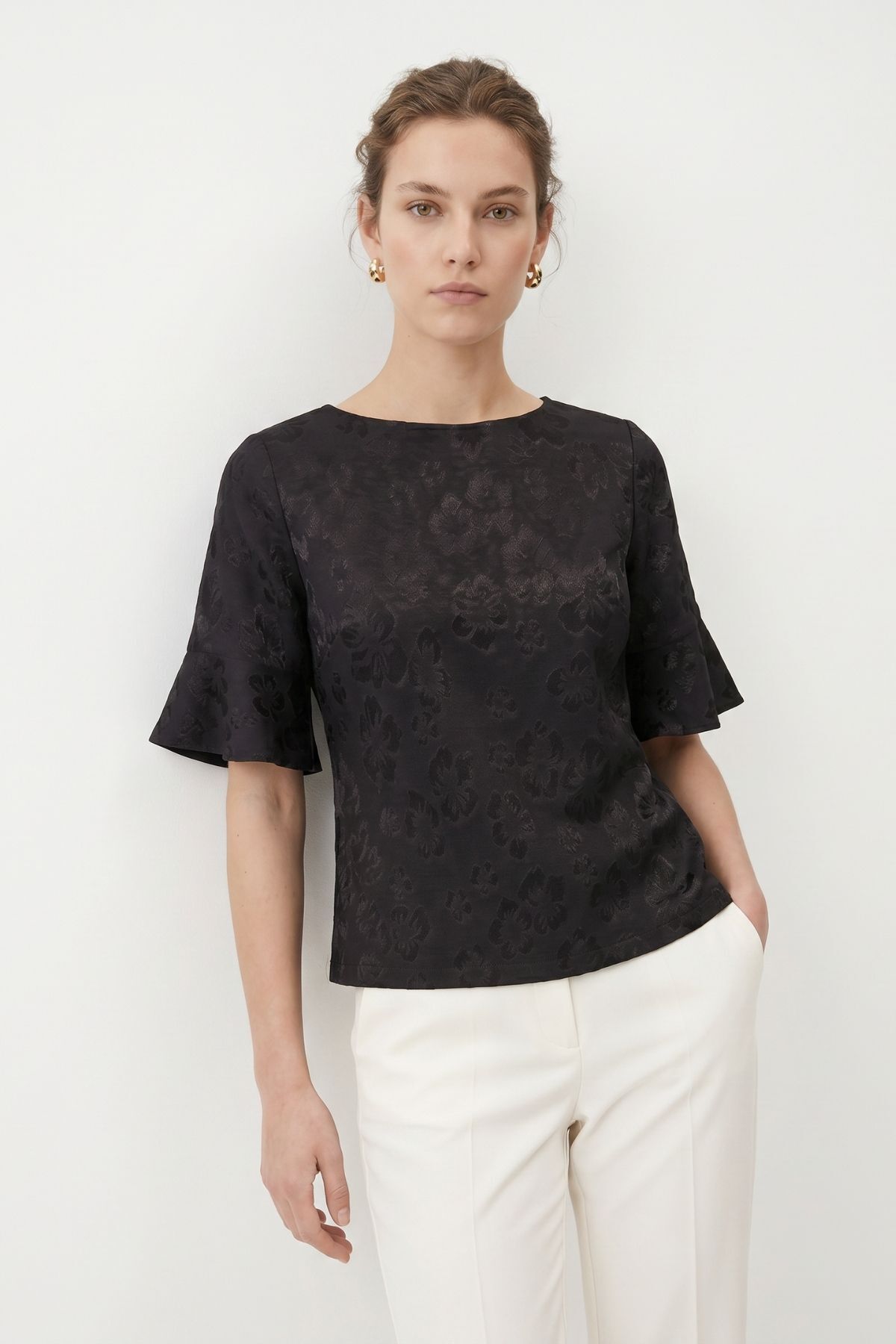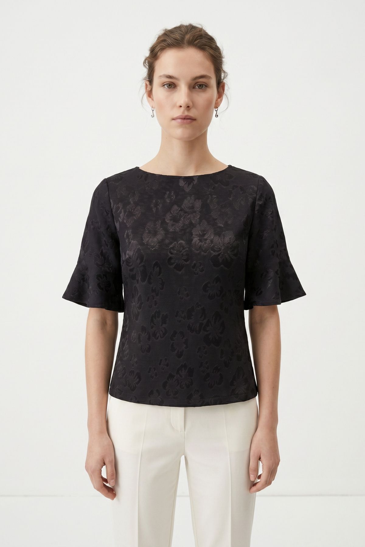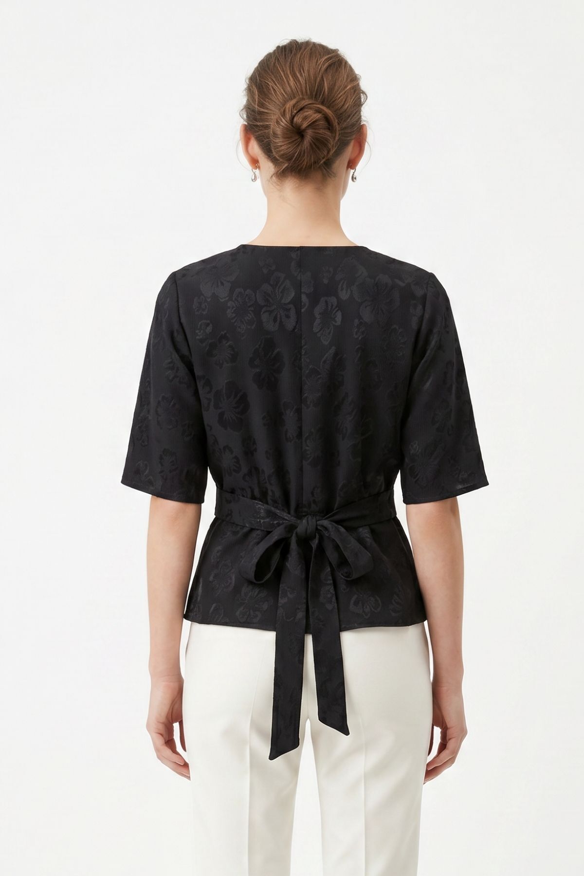 Siyah Volan Kollu Sırt Bağlamalı Jakarlı Bluz 261151
