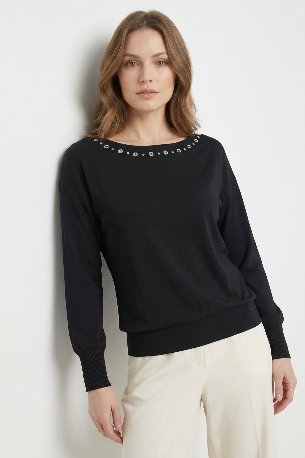 Siyah Yaka Kuş Göz Detay Bluz 7848