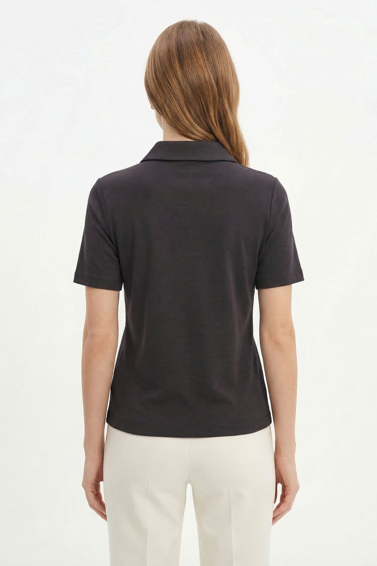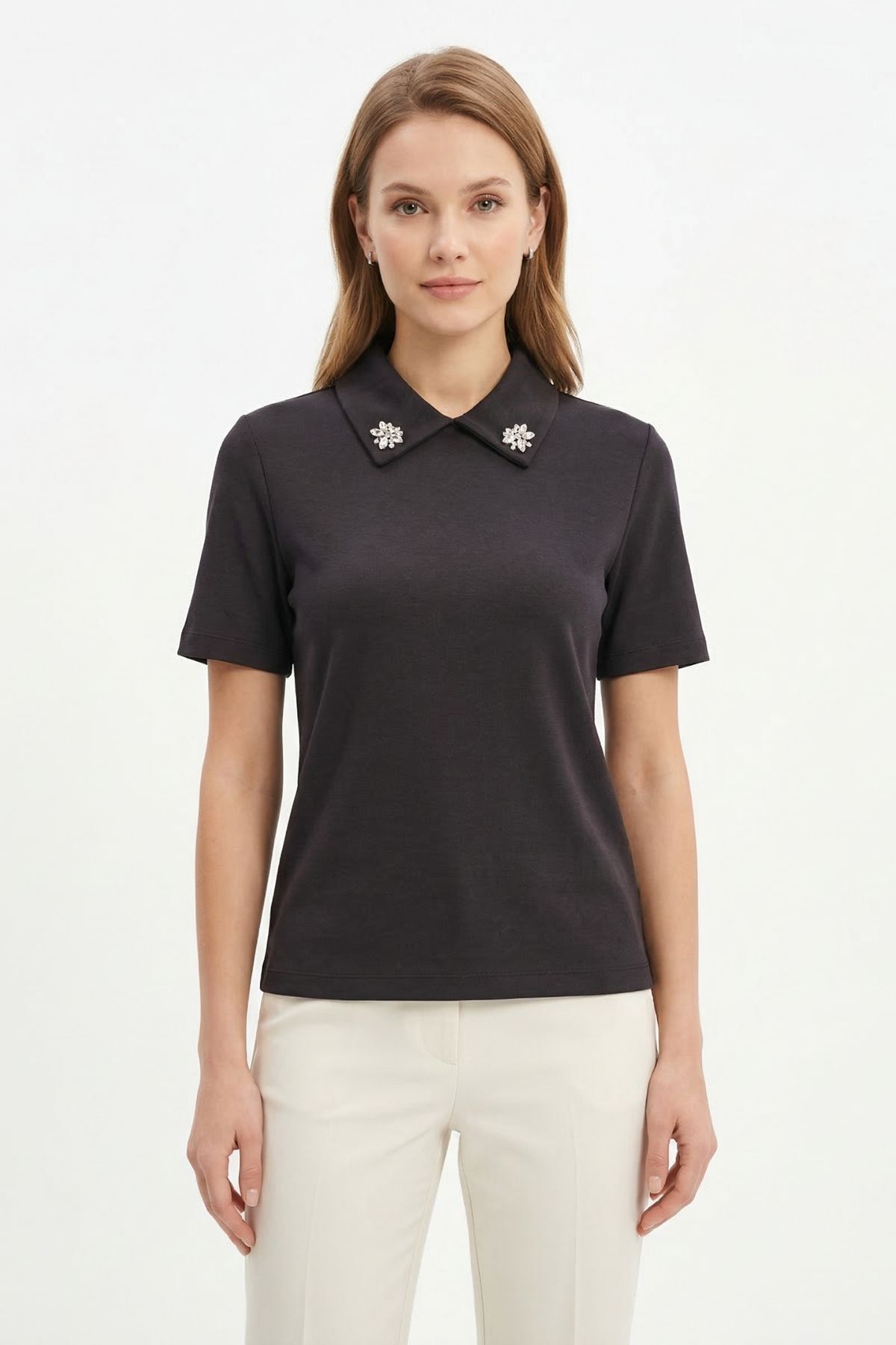 Siyah Yaka Taşlı Kısa Kollu Tişört 6294