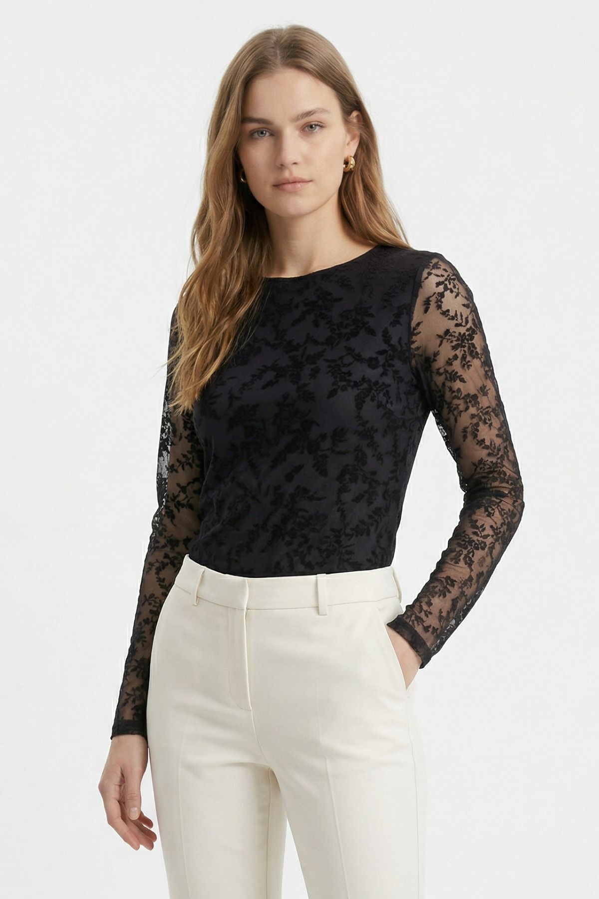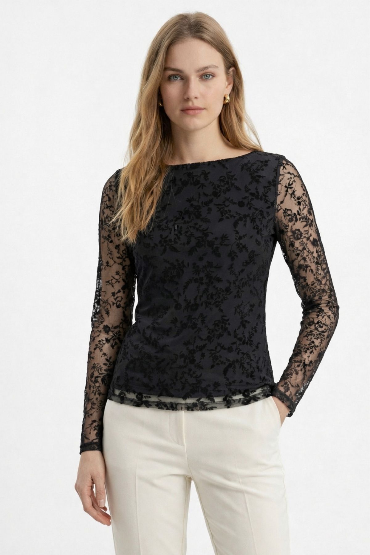 Siyah Yandan Büzgülü Desenli Bluz 8476A