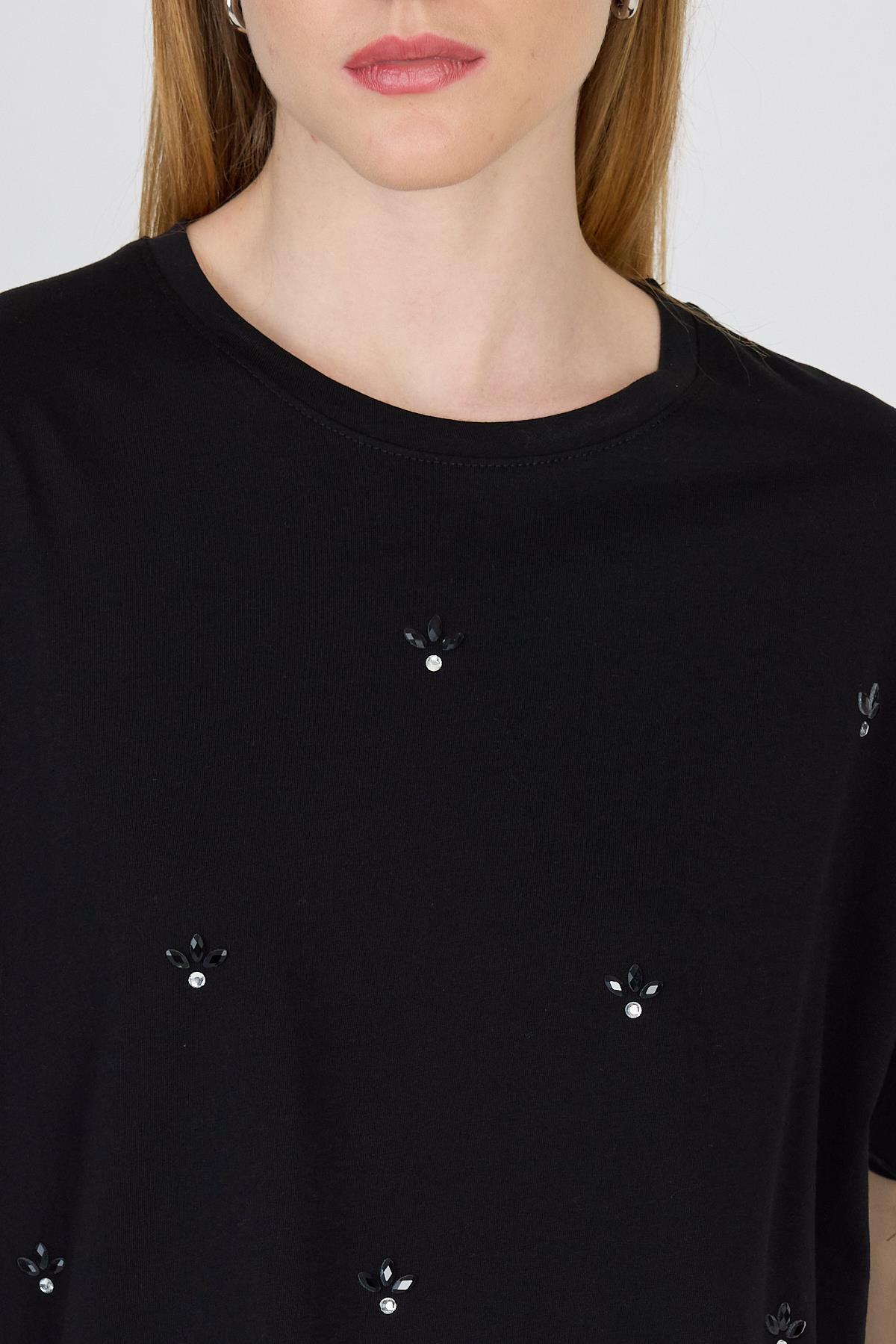 Siyah Yazı Baskılı %100 Pamuk Oversize Tişört 2150-18M